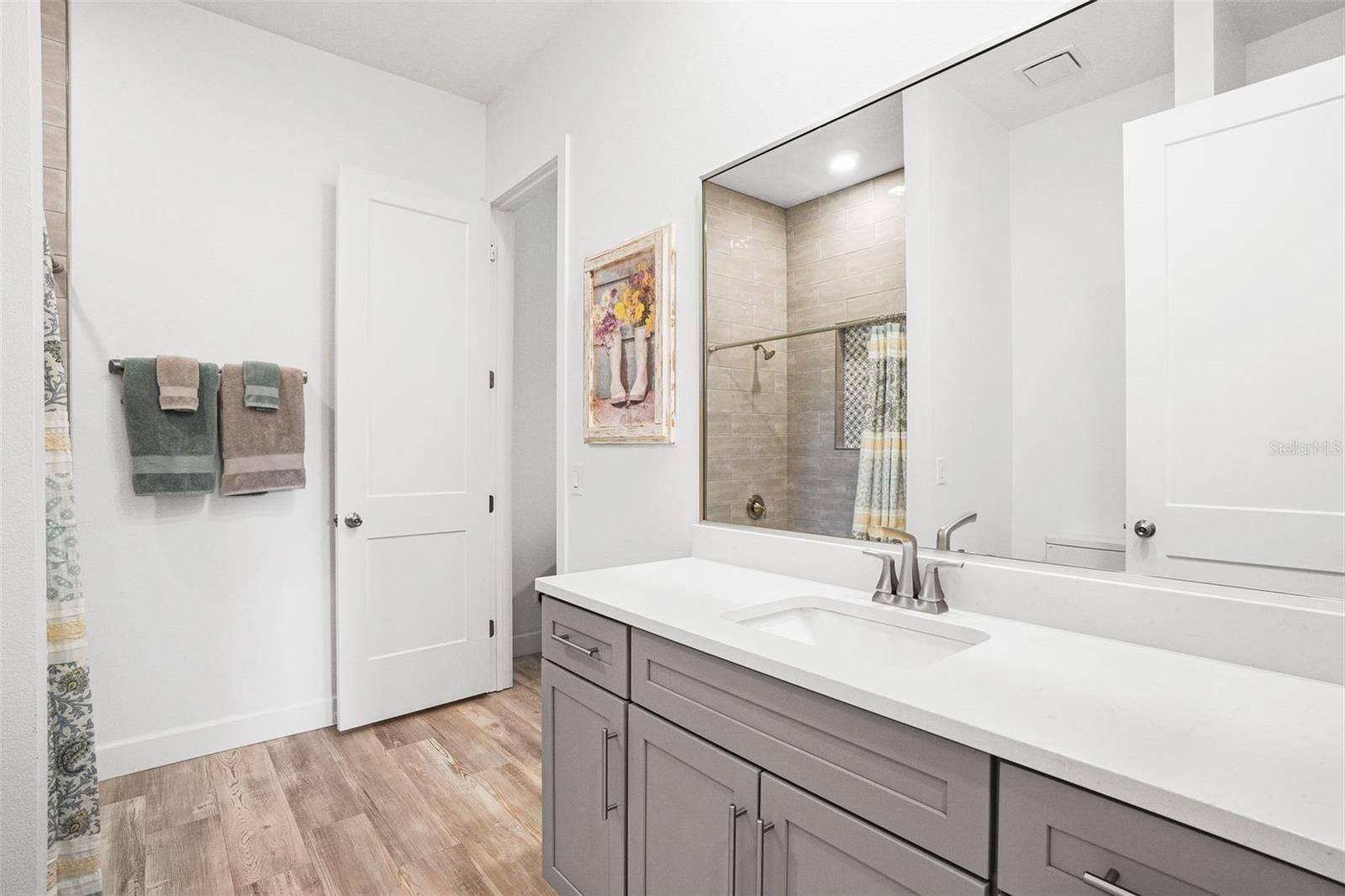 Welcome to this stunning 5-bedroom, 4-bathroom custom-built home, just 2 years young and perfectly situated on a spacious 0.8-acre lot. Boasting over 3, 100 square feet of living space, this home makes a striking first impression with its expansive circular driveway, side-entry garage, and beautifully manicured landscaping accented by picturesque mature trees that provide both charm and privacy. Step inside to discover a light-filled, open-concept layout enhanced by elegant luxury vinyl plank flooring throughout the entire home. The chef’s kitchen is a true showstopper, featuring abundant cabinet space, a large island, a butler’s pantry with ample cabinet space and modern amenities designed for both function and style. The kitchen is beautifully illuminated with pendant and recessed lighting that extends throughout the living area. The inviting, large great room is perfect for family gatherings and seamlessly extends through French doors to the impressive outdoor lanai. The luxurious owner’s suite is thoughtfully positioned opposite the guest bedrooms for added privacy, with doors going out to the covered lanai. Additionally, it features a spa-like primary bath complete with dual sinks, a walk-in shower, a freestanding soaking tub as well as his and her walk-in closets. Each bedroom is generously sized, with three of them featuring en-suite bathrooms that are all very spacious with beautiful modern touches —perfect for guests or a growing family. The homeowners have spared no expense in upgrades, starting with the backyard—a true private oasis featuring a stunning pool and spa, a full outdoor kitchen with granite countertops, a fire pit, pavers, utility shed, and complete fencing for added privacy. Spanning the full length of the home, the lanai’s distinctive wood tongue and groove ceiling adds warmth and sophistication—an ideal space for relaxing or entertaining. Windows- Low E argon filled energy efficiency insulated windows (keeps energy cost down). In addition, the garage floor has been professionally finished, and over $25, 000 has been invested in premium landscaping enhancements. Irrigation system-7 zones. In total, the homeowners have invested over $200k in upgrades and enhancements over the last 12 months. The Fawn Lake community is conveniently located near beautiful East coast beaches, national parks, dining, entertainment, and more! It offers great amenities including a clubhouse, tennis courts, pickleball courts, a park area and even a community barn for residents to store their own horses. This home is a must-see to truly appreciate its beauty inside and out!