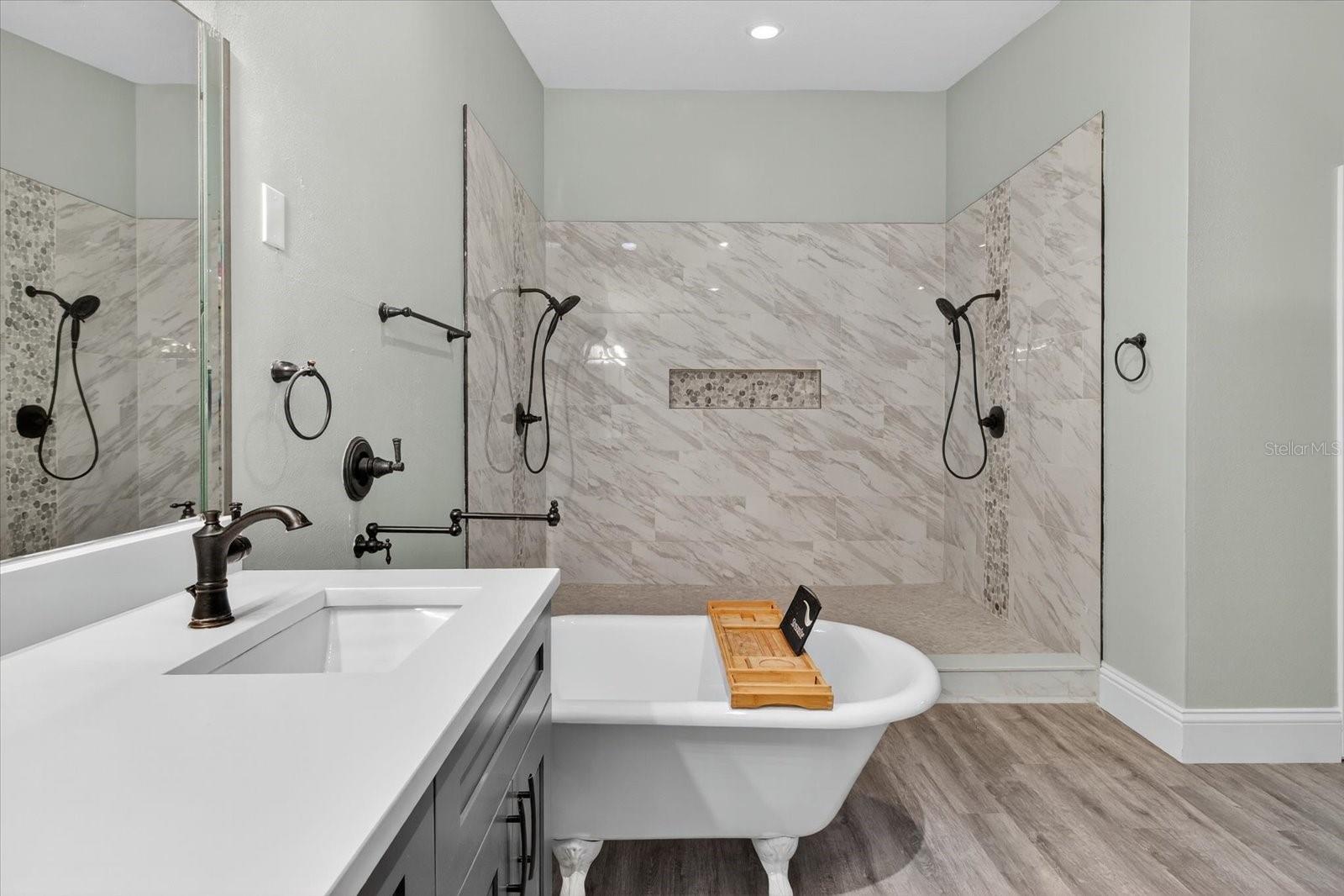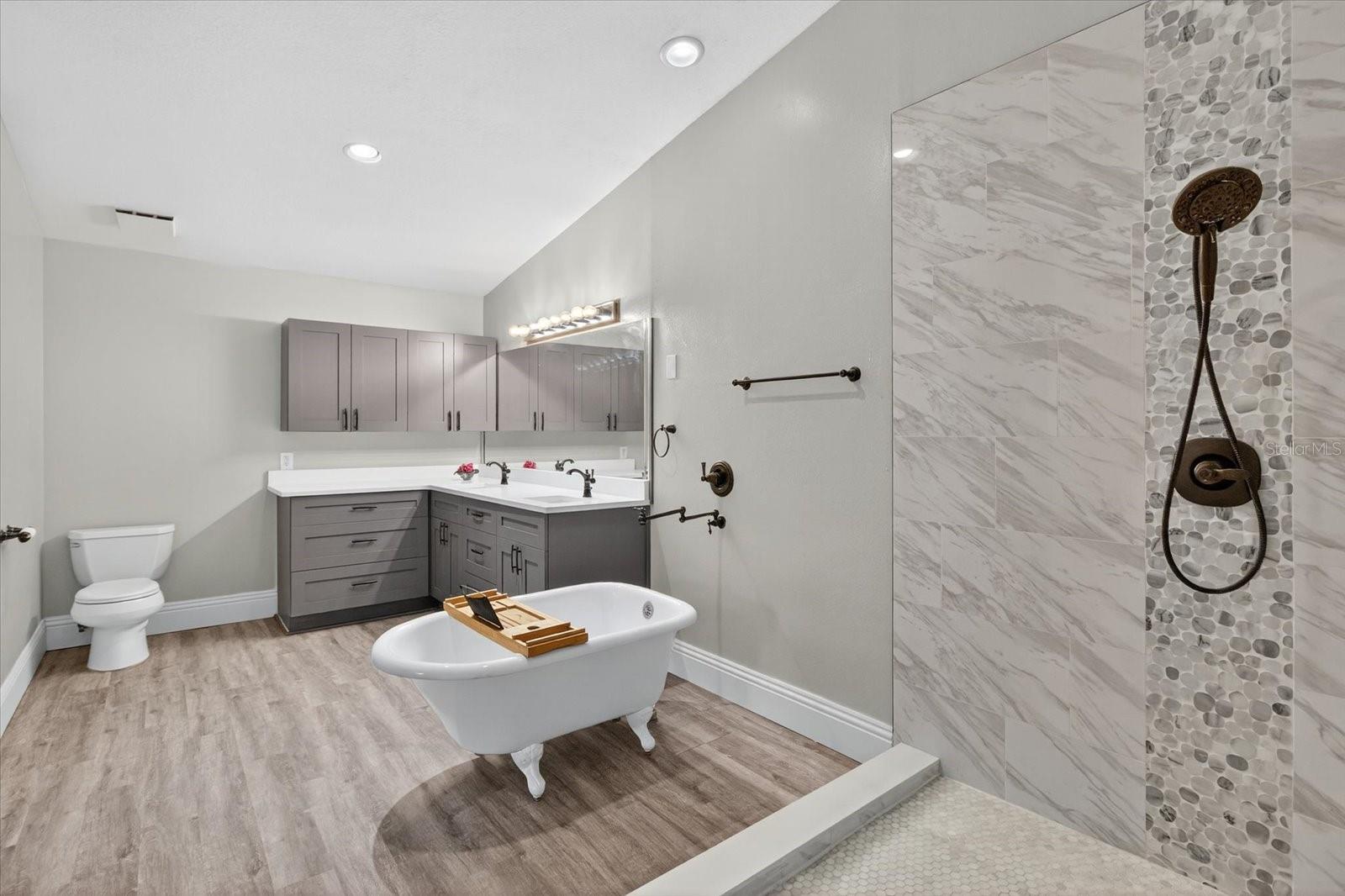 Under contract-accepting backup offers. Welcome to this stunning 4-bedroom, 3-bathroom lakefront home featuring a 2-car garage and NO HOA or CDD fees! Perfectly situated in a highly desirable, central location, this home offers both tranquility and convenience, just minutes away from everything you need. Enjoy peace of mind with a whole-house gas generator and the comfort of knowing the property is located in Flood Zone X (no flood insurance required). Step inside to find a bright, open floor plan with high vaulted ceilings, a wood-burning fireplace, and large impact windows, that fill the space with natural light and breathtaking lake views. The new kitchen boasts granite countertops, soft-close cabinets and drawers, and brand-new stainless steel appliances perfect for any home chef. This home has been beautifully updated throughout: New Roof (2021), New Flooring, Cabinets, and Appliances, Fresh Interior Paint (2021), Impact-rated windows & sliding doors (2021), 75kW whole-home backup generator, New Landscaping and Light Fixtures, Fully Renovated Bathrooms. The primary suite features two walk-in closets and a luxurious ensuite bathroom with a freestanding soaking tub and huge walk-in shower. A bathroom connects two additional bedrooms, providing functionality and privacy. Relax or entertain on your screened-in patio, complete with a built-in pizza oven—the perfect spot to enjoy outdoor cooking while taking in the beautiful water and wildlife views. This property truly has it all modern upgrades, serene lakefront living, and unbeatable location all with no extra fees or flood worries. Don’t miss out—schedule your private showing today!