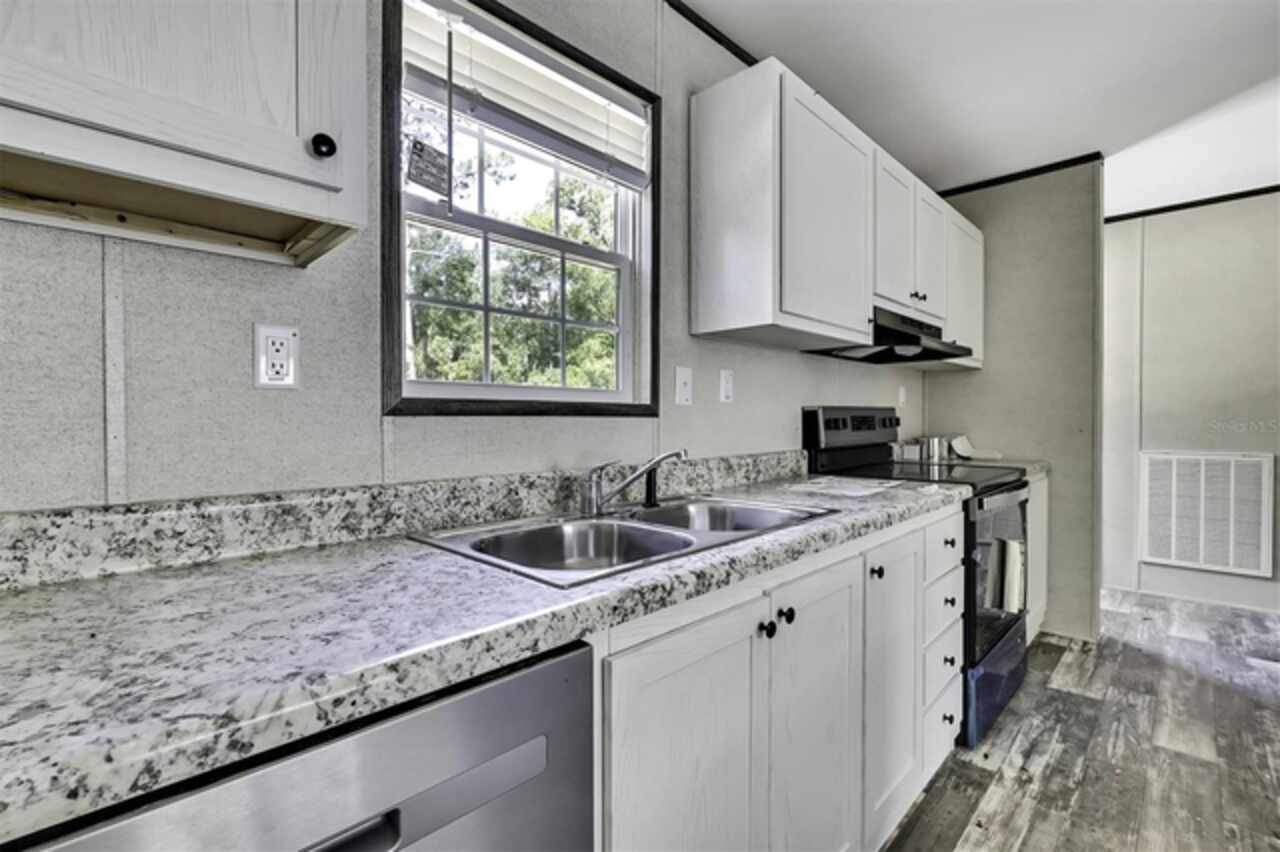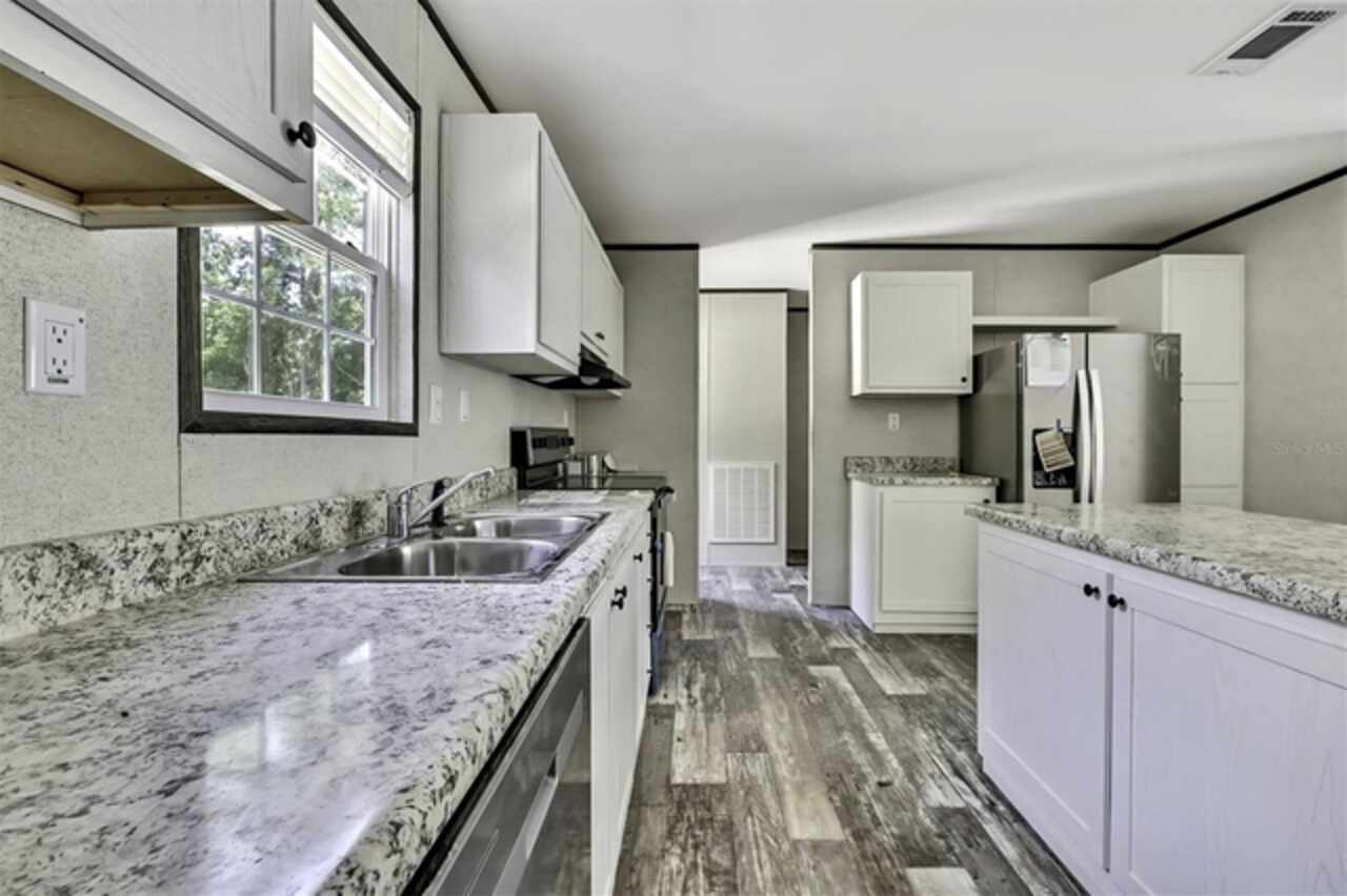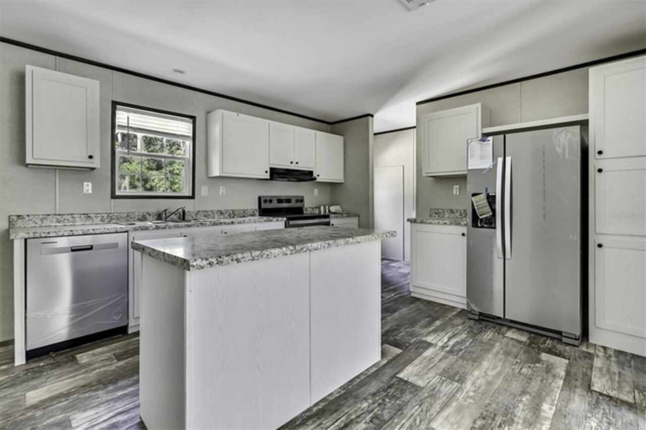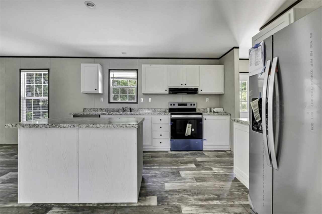 Under contract-accepting backup offers. This brand new & never lived in 3/2 Champion Prime manufactured home is nestled on almost an acre of land with paved road access, offering the perfect blend of comfort and privacy. Each bedroom features a generous walk-in closet, ensuring plenty of storage space. The master bedroom includes a double-sink vanity in the en-suite bathroom for added convenience, plus a large walk-in shower. The open floorplan is filled with natural light, making it ideal for both family gatherings and quiet relaxation. In addition, there is a spacious & separate den that can even be used as a home office or bedroom. The modern kitchen features stainless steel appliances, white cabinetry, and an island. The large lot has plenty of room for all your toys & gardening. This home is move-in ready, all set for you & your family to enjoy! EVERYTHING is brand new & never used; well, septic, home, appliances, AC, etc. All of this is being offered for an amazing price, so schedule your showing today!