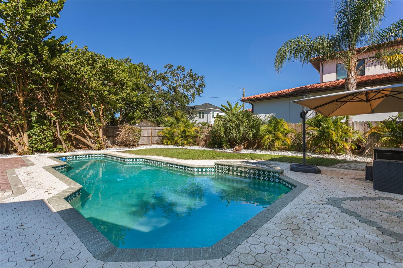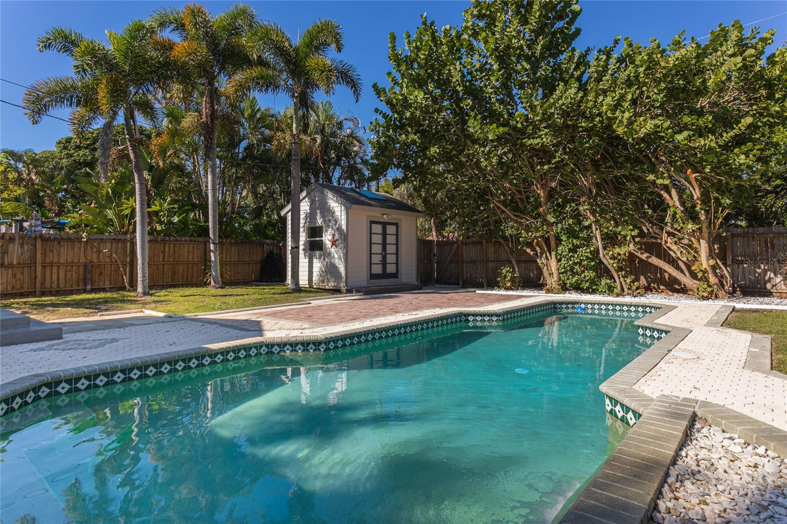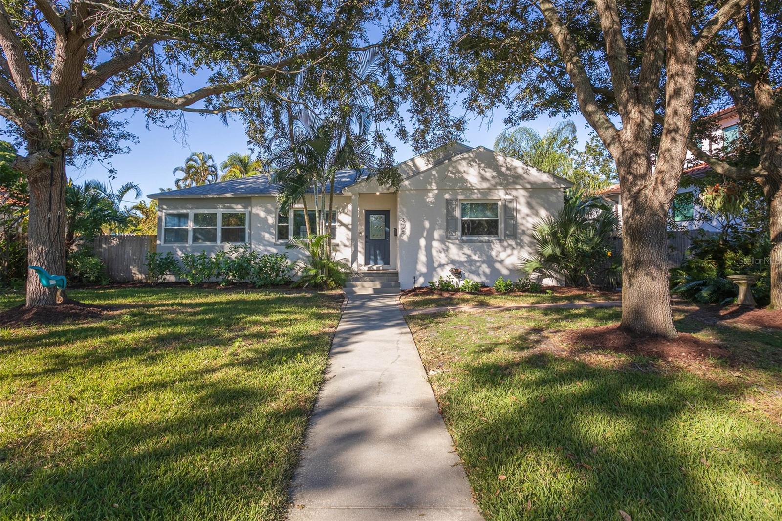Under contract-accepting backup offers. Located in Snell Isle Shores, just steps away from the famous Vinoy Golf Course and one block away from the serene Coffee Pot Bayou, this three bedroom home is sure to win you over with its mix of character with modern upgrades. Plus, NO WATER INTRUSION from Hurricanes Helene & Milton per the owner! The kitchen was beautifully remodeled in 2022, and the original wood floors were refinished in 2023, creating the perfect blend of old and new. Two bedrooms off to the right share a hall bathroom, and through the dining room you will find a hallway leading to the potential third bedroom or den, a hall closet that doubles as laundry, and a gorgeous updated bathroom with stand up shower (renovated 2024). One of the most exciting features of this property? A detached air conditioned flex space not counted in the heated square footage of the home (formerly used as an office) is waiting for the next vision... will it be a study area, hobby room, lounge, yoga studio, amazing gym, or even a "pub shed" while you entertain guests at the pool? Let your imagination run wild. Thanks to the large lot, your backyard patio and green space is not compromised by the size of the large swimming pool - you get the best of both worlds! And as a bonus, the swimming pool comes with a child safety fence ready to go if needed. Lastly there is a parking pad off the alley behind the fence for those who wish to keep cars off the street. Also just a few blocks away is Crisp Park which boasts the locals' favorite boat ramp and playground, and 2 miles to downtown St. Pete! Plus some of the best grocery shopping available: Whole Foods, Trader Joes, Fresh Market, and Publix... all within a 5 minute radius! Important updates include: roof (2019), HVAC (2021), most windows replaced with hurricane impact rated.