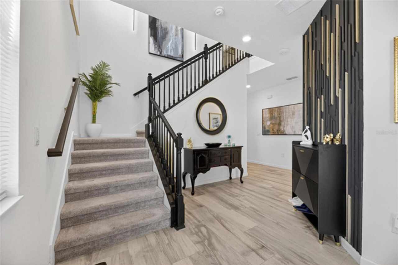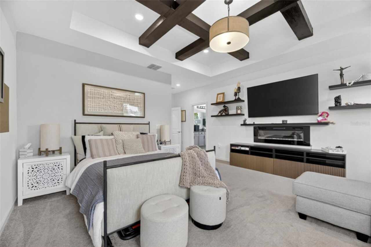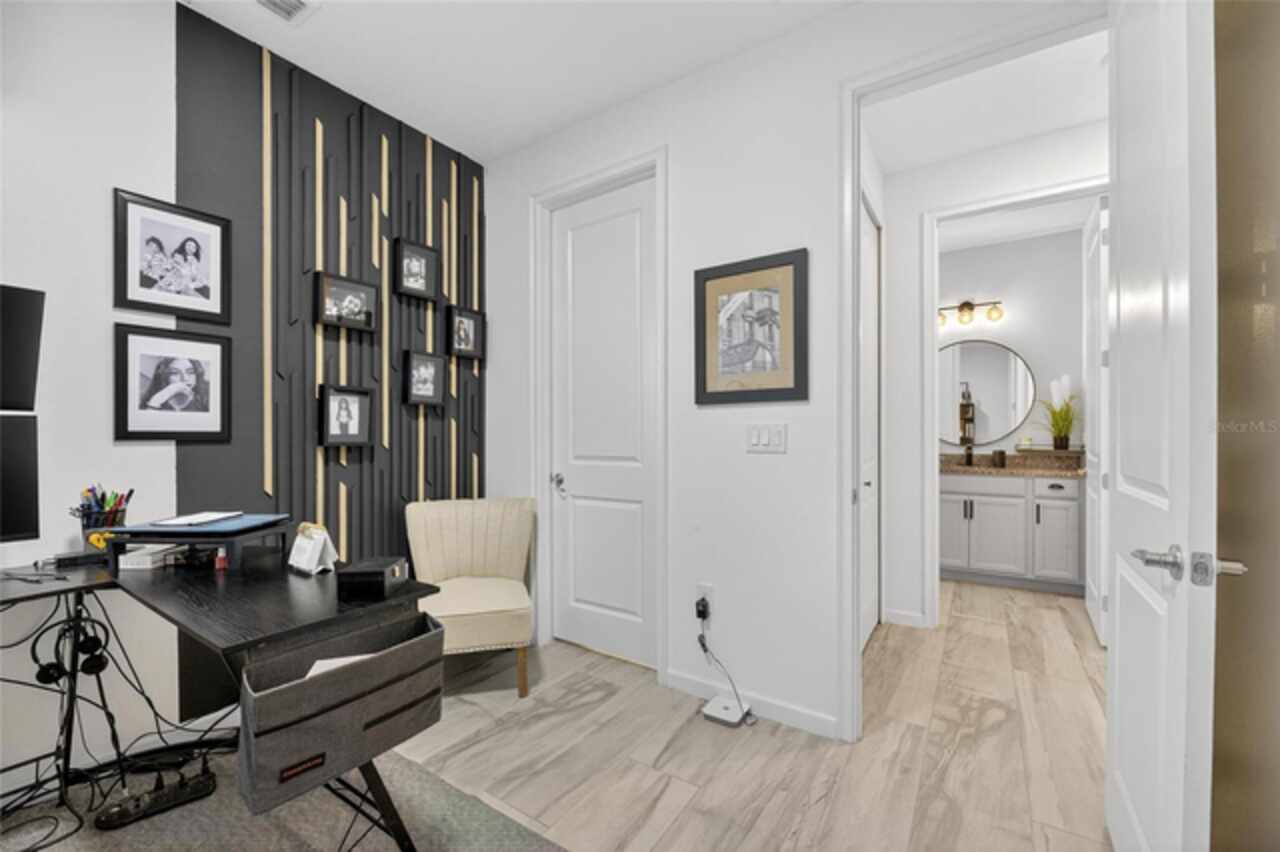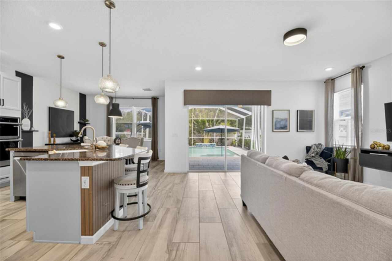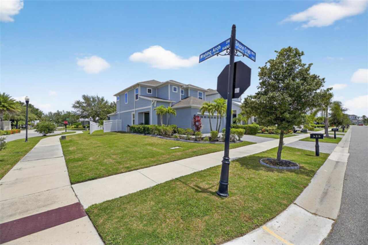 325 Shore Crab Way | 4 Bedrooms | 3 Bathrooms | 2, 532 Sq Ft | Pool Home | Corner Lot 325 Shore Crab Way is a 4-bedroom, 3-bath, 2, 532 sq ft pool home on a corner lot in the gated waterfront community of Mirabay. Built by Park Square Homes, the Barcelona floorplan blends comfort and style with an open layout that flows easily to the outdoor living space. The backyard retreat features a sparkling heated saltwater pool with a sun shelf and water feature, creating the perfect setting to cool off, entertain, or simply relax in privacy. Inside, the kitchen showcases quartz countertops, a custom backsplash, 42-inch cabinetry, upgraded lighting, stainless steel appliances including a Samsung refrigerator, and a sleek curved center island with seating for four and custom wall trim. Wood-look tile planks run throughout the main floor, where the kitchen, dining, and living areas connect seamlessly, all with unobstructed views of the new pool. Custom wall features and upgraded fixtures enhance the living and dining spaces. A flexible main-floor room works as an office or 4th bedroom, paired with a full bath. Upstairs, the spacious primary suite includes a coffered ceiling, statement wall, upgraded lighting, a massive walk-in closet, and an en-suite bath with dual vanities and a large walk-in shower with floor-to-ceiling tile. The second floor also includes a versatile loft, laundry room, and two additional bedrooms. As a Mirabay resident, you’ll enjoy resort-style amenities: two pools, clubhouse, a 24-hour fitness center, café, lounge, walking trails, playgrounds, basketball, tennis, and pickleball courts, plus access to watersports equipment. The neighborhood is golf-cart friendly, and the waterfront setting means breezes and sunsets are part of everyday life. If you’re looking for a home that pairs laid-back Florida living with thoughtful upgrades, 325 Shore Crab Way is ready to welcome you. Schedule your private showing today and discover why Mirabay living is so sought after.