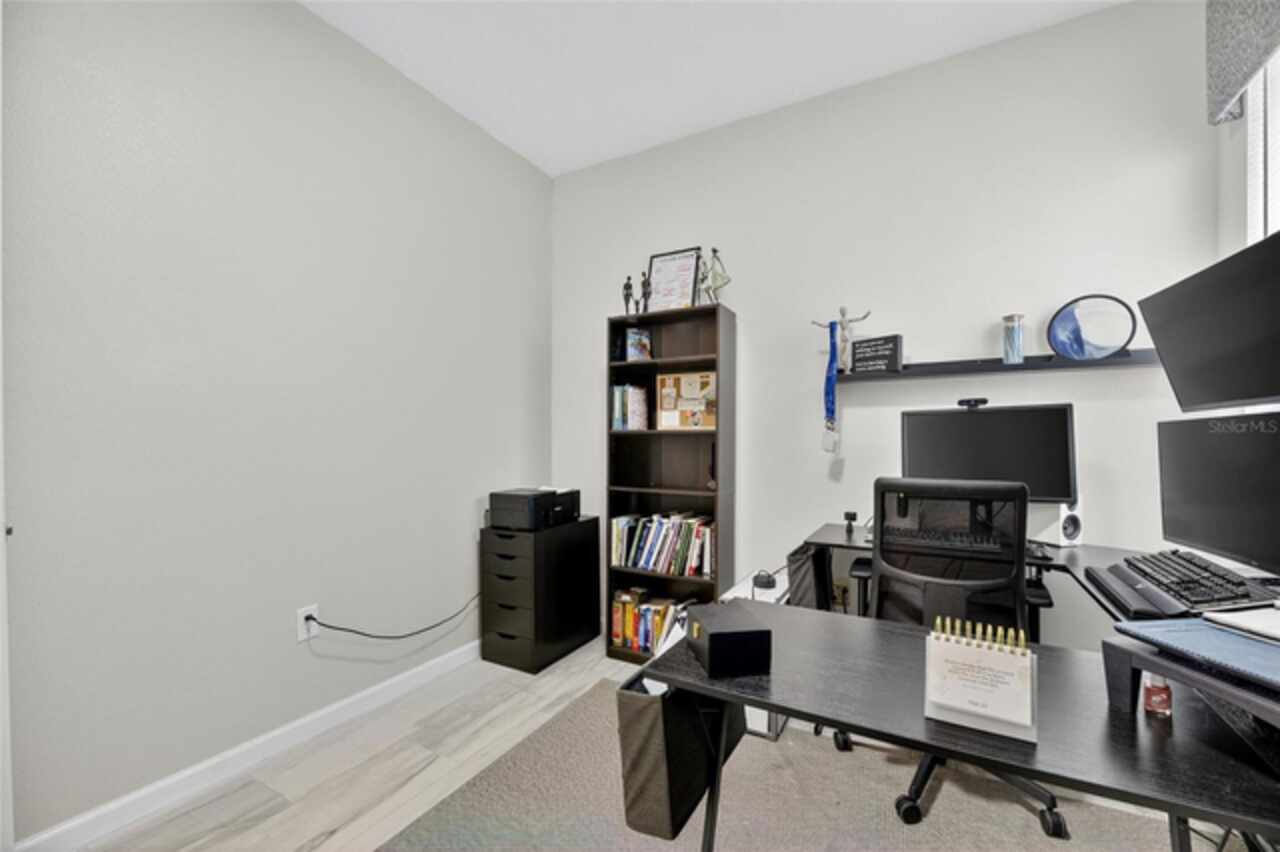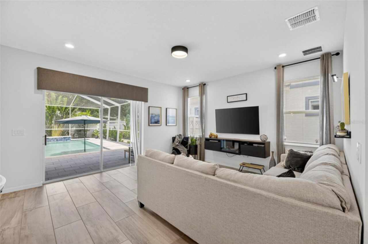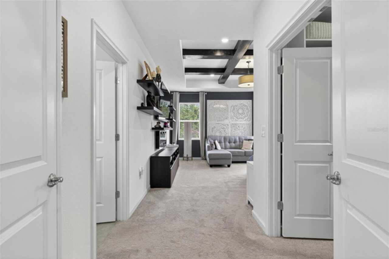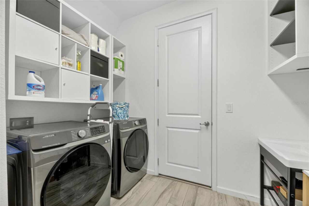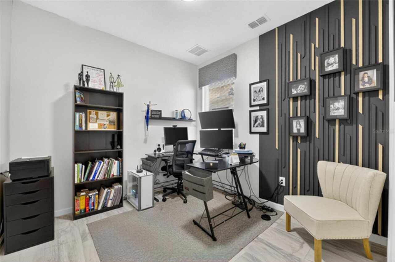 325 Shore Crab Way | 4 Bedrooms | 3 Bathrooms | 2, 532 Sq Ft | Pool Home | Corner Lot 325 Shore Crab Way is a 4-bedroom, 3-bath, 2, 532 sq ft pool home on a corner lot in the gated waterfront community of Mirabay. Built by Park Square Homes, the Barcelona floorplan blends comfort and style with an open layout that flows easily to the outdoor living space. The backyard retreat features a sparkling heated saltwater pool with a sun shelf and water feature, creating the perfect setting to cool off, entertain, or simply relax in privacy. Inside, the kitchen showcases quartz countertops, a custom backsplash, 42-inch cabinetry, upgraded lighting, stainless steel appliances including a Samsung refrigerator, and a sleek curved center island with seating for four and custom wall trim. Wood-look tile planks run throughout the main floor, where the kitchen, dining, and living areas connect seamlessly, all with unobstructed views of the new pool. Custom wall features and upgraded fixtures enhance the living and dining spaces. A flexible main-floor room works as an office or 4th bedroom, paired with a full bath. Upstairs, the spacious primary suite includes a coffered ceiling, statement wall, upgraded lighting, a massive walk-in closet, and an en-suite bath with dual vanities and a large walk-in shower with floor-to-ceiling tile. The second floor also includes a versatile loft, laundry room, and two additional bedrooms. As a Mirabay resident, you’ll enjoy resort-style amenities: two pools, clubhouse, a 24-hour fitness center, café, lounge, walking trails, playgrounds, basketball, tennis, and pickleball courts, plus access to watersports equipment. The neighborhood is golf-cart friendly, and the waterfront setting means breezes and sunsets are part of everyday life. If you’re looking for a home that pairs laid-back Florida living with thoughtful upgrades, 325 Shore Crab Way is ready to welcome you. Schedule your private showing today and discover why Mirabay living is so sought after.