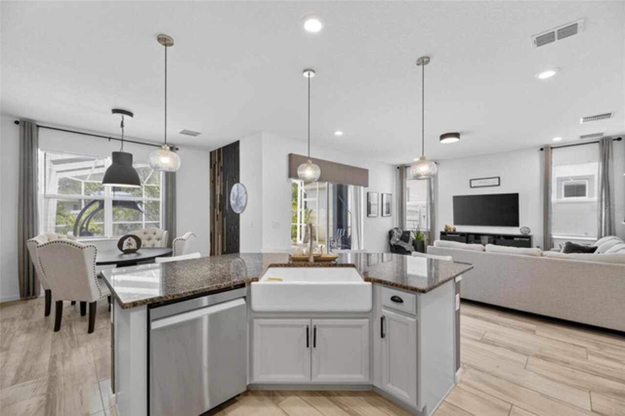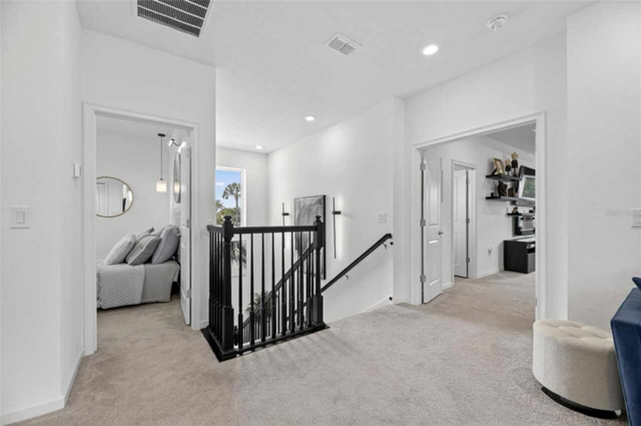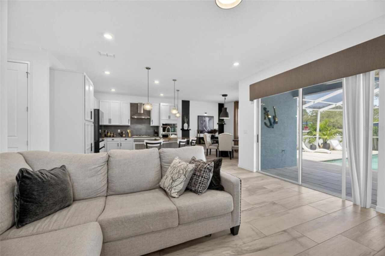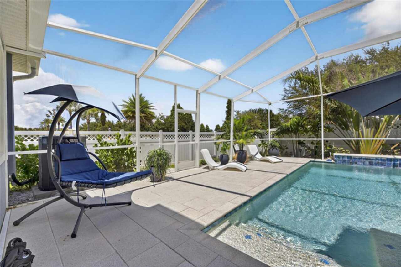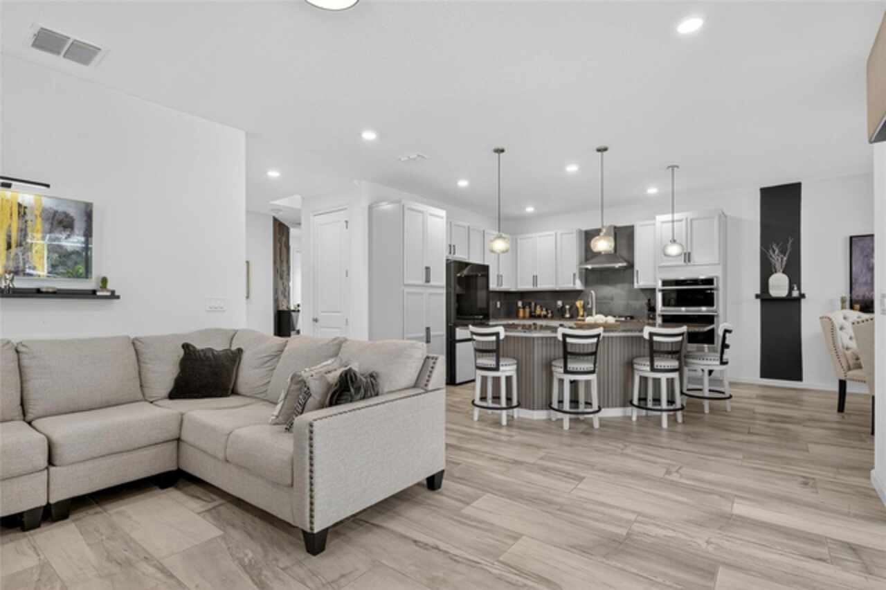 325 Shore Crab Way | 4 Bedrooms | 3 Bathrooms | 2, 532 Sq Ft | Pool Home | Corner Lot 325 Shore Crab Way is a 4-bedroom, 3-bath, 2, 532 sq ft pool home on a corner lot in the gated waterfront community of Mirabay. Built by Park Square Homes, the Barcelona floorplan blends comfort and style with an open layout that flows easily to the outdoor living space. The backyard retreat features a sparkling heated saltwater pool with a sun shelf and water feature, creating the perfect setting to cool off, entertain, or simply relax in privacy. Inside, the kitchen showcases quartz countertops, a custom backsplash, 42-inch cabinetry, upgraded lighting, stainless steel appliances including a Samsung refrigerator, and a sleek curved center island with seating for four and custom wall trim. Wood-look tile planks run throughout the main floor, where the kitchen, dining, and living areas connect seamlessly, all with unobstructed views of the new pool. Custom wall features and upgraded fixtures enhance the living and dining spaces. A flexible main-floor room works as an office or 4th bedroom, paired with a full bath. Upstairs, the spacious primary suite includes a coffered ceiling, statement wall, upgraded lighting, a massive walk-in closet, and an en-suite bath with dual vanities and a large walk-in shower with floor-to-ceiling tile. The second floor also includes a versatile loft, laundry room, and two additional bedrooms. As a Mirabay resident, you’ll enjoy resort-style amenities: two pools, clubhouse, a 24-hour fitness center, café, lounge, walking trails, playgrounds, basketball, tennis, and pickleball courts, plus access to watersports equipment. The neighborhood is golf-cart friendly, and the waterfront setting means breezes and sunsets are part of everyday life. If you’re looking for a home that pairs laid-back Florida living with thoughtful upgrades, 325 Shore Crab Way is ready to welcome you. Schedule your private showing today and discover why Mirabay living is so sought after.