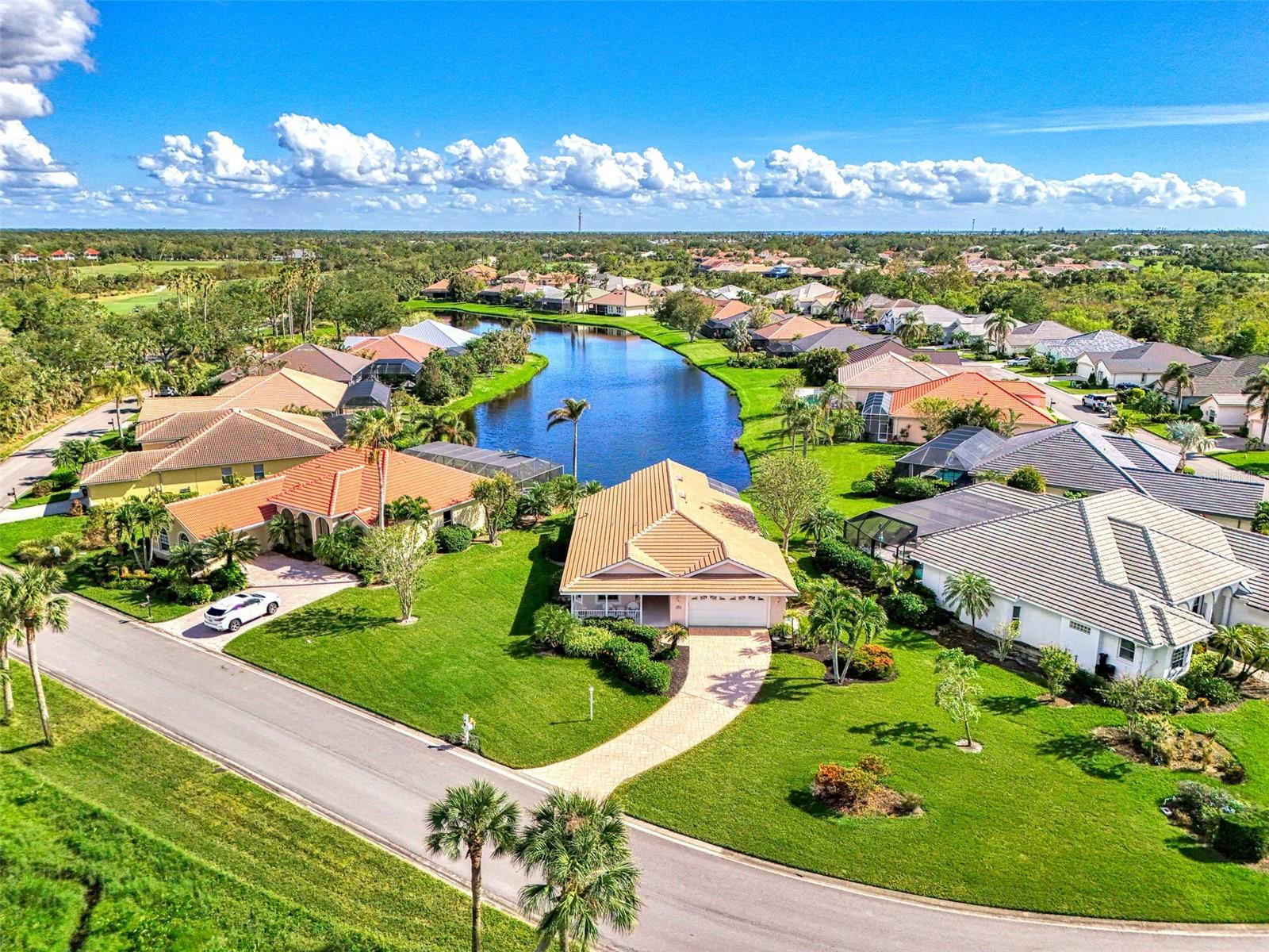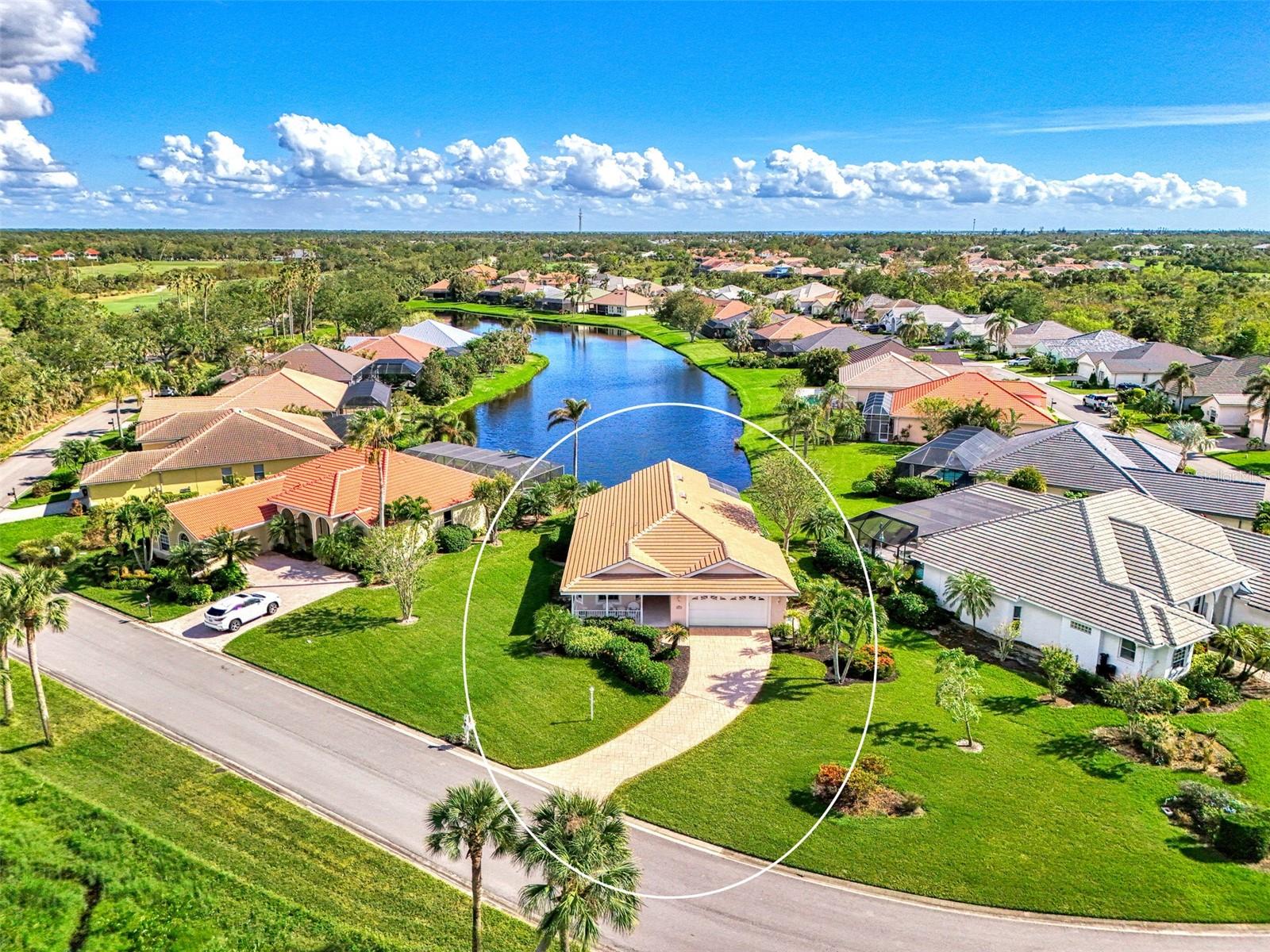 HUGE PRICE IMPROVEMENT for this PREMIUM LOT and LOCATION!!! WHY RENT this Season when you can OWN and INVEST in your Florida Lifestyle! Discover lasting value and everyday enjoyment in this charming, thoughtfully designed 3-bedroom home in Bay Ridge, nestled within the desirable Riverwood community and located on one of the largest PREMIUM WATERFRONT LOTS! From the welcoming front porch to the expanded lanai, every space invites you to savor the beautiful Florida outdoors. Start your day with breakfast on the lanai overlooking serene pond views and wind down on the front porch capturing colorful sunsets in a tranquil setting. Inside, the bright open floor plan with high ceilings and abundant natural light creates a cheerful, relaxing atmosphere. The great room flows into a spacious kitchen with a dining nook perfectly positioned to enjoy pond views through a lovely bay window. With three bedrooms (one currently used as a den), two large bathrooms, updated vinyl flooring, and a 2022 tile roof, this home offers both comfort and quality. Additional updates include a newer stove and microwave (2021), refrigerator (2020), and dishwasher (2019), along with an extended 4ft 2-car garage and a decorative concrete driveway. Riverwood offers an exceptional resort-style lifestyle with access to the award-winning Riverwood Golf Course, activity center with lap and resort-style pools, fitness center, pickleball and tennis courts, dog parks, and more. For beach lovers, an exclusive private Riverwood Beach Club on Manasota Key is available (membership based on availability). Conveniently located near Gulf beaches, the Atlanta Braves spring training facility, Charlotte Harbor, and charming coastal towns like Punta Gorda, Englewood, and Boca Grande, this home delivers the perfect blend of Florida’s natural beauty and long-term value. Don’t just rent a vacation—OWN YOUR FLORIDA DREAM at a GREAT VALUE! Call today for a private showing and experience the lifestyle waiting for you in Riverwood.