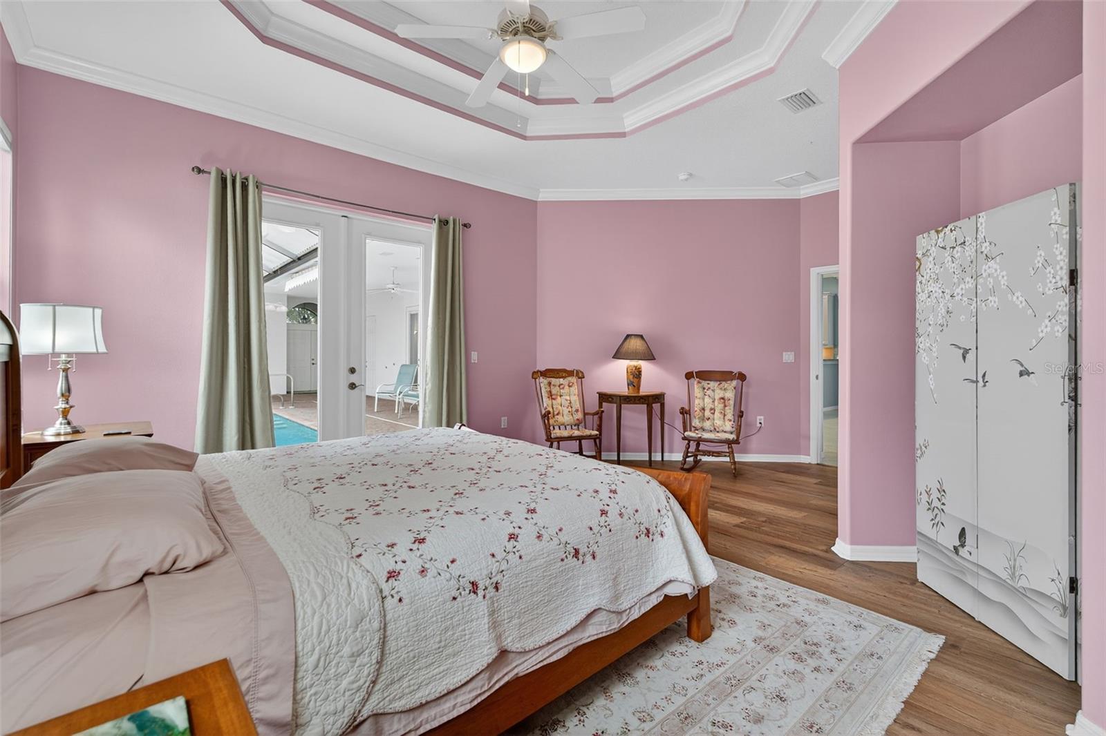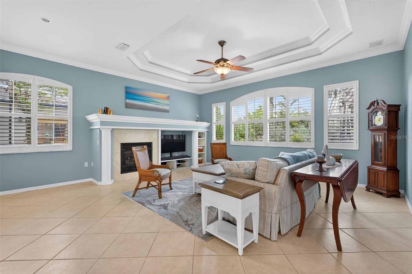 Ceiling Fans(s), Central Vaccum, Crown Molding, High Ceilings, In Wall Pest System, Primary Bedroom Main Floor, Stone Counters, Thermostat, Tray Ceiling(s), Walk-In Closet(s), Window Treatments