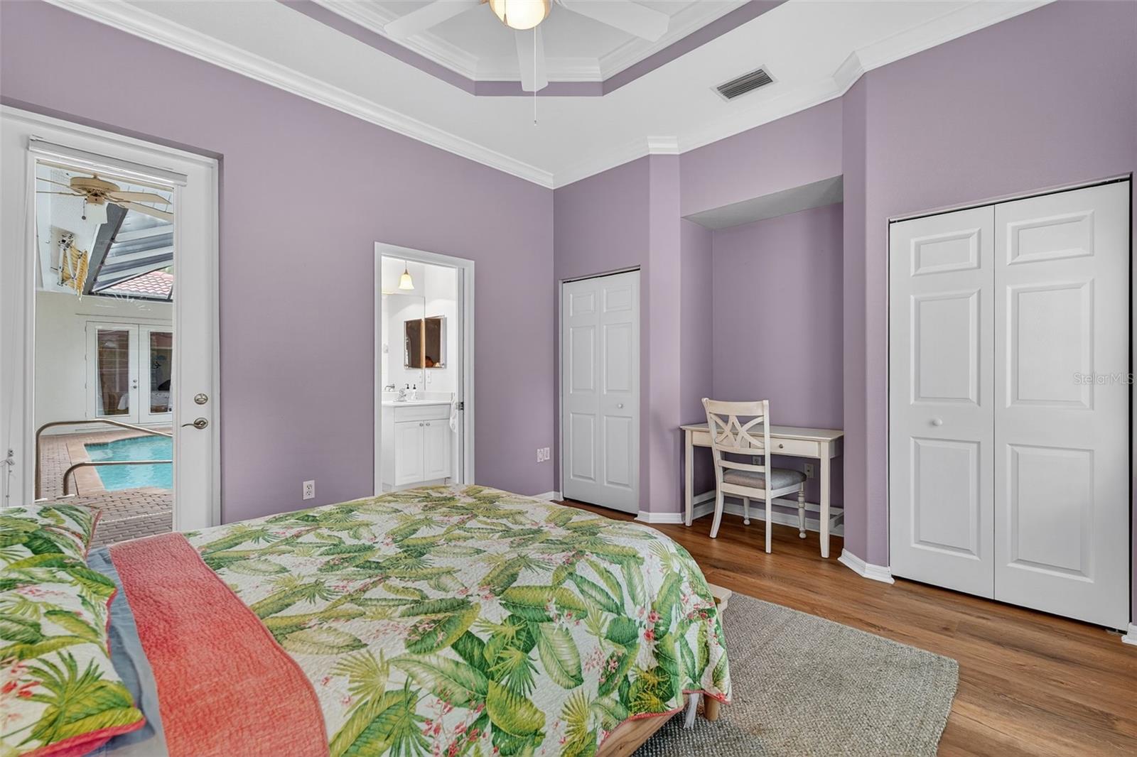 Be Home for the Holidays, settled into beautiful Bellagio on Venice Island for the best season of the year! Major price adjustment on this private courtyard pool home with casita. Don't miss this unparalleled opportunity to live on the island in one of Venice’s most desirable communities, perfect for year-round living or a seasonal escape. This gated community is in one of the highest elevations on Venice Island and in the low-risk X flood zone (no flood insurance required). Enjoy a seamless blend of luxury and comfort, with recent renovations and upgrades that have transformed it into a move-in-ready dream. HVAC system was replaced in 2024 and the roof in 2023; a whole house water treatment system with reverse osmosis in the kitchen was added in 2024. Luxury vinyl plank (2024) enhances all 3 bedrooms. The pool was resurfaced and a new electric pool heater installed (2024). There’s even a new garage door motor with camera (2024). The largest model in the community, the Trieste floor plan features 3 bedrooms, one of which is a unique, attached Casita with a separate entrance, perfect for guests or use as a private office or studio, complete with its own bathroom. The grand courtyard is an outdoor paradise offering total privacy and true Florida indoor-outdoor living with all rooms surrounding this focal space. An open great room with fireplace and large picture window overlook tropical landscaping from the main living space. Upscale details like crown molding, plantation shutters and tray ceilings lend a premium feel. A comfortable kitchen for cooking and entertaining includes stainless steel appliances, gas cook top with separate Microwave/convection oven and custom glass display cabinets. Bellagio is a private, gated community of 142 single-family, maintenance-free Mediterranean-style homes, surrounded by mature trees and tropical landscapes. Resort-style amenities include tennis / pickleball courts, a sparkling pool, Clubhouse with fitness center and gathering spaces. Community roads have recently been repaved and gates upgraded and fortified. Bellagio residents enjoy direct access to the Venetian Waterway Park, which runs along the Intracoastal Waterway. Under 2 miles away in Historic Downtown Venice are endless options for boutique shopping, dining, festivals, Centennial Park’s concerts and gatherings, and Venice Theater! And several of our stunning Gulf Coast beaches are situated under 2 miles as well. Schedule an appointment to view this home in person to appreciate its unique details.