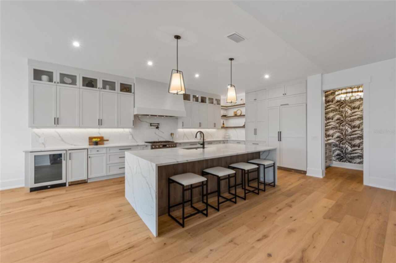Experience the charm of Anna Maria Island with this NEWLY COMPLETED CONSTRUCTION. This luxurious home boasts four bedrooms and four and a half baths, offering STUNNING VIEWS. Features include an elevator, a three-car garage, and 3, 751 square feet of air-conditioned space, and 7, 893 square feet overall. Enjoy premium appliances, elegant wood floors throughout, and an open floor plan that is designed for effortless entertaining. Outside, the property features multiple covered patios perfect for relaxation and entertainment. Whether you're enjoying the pool, spa, or sitting on the dock, the views are unparalleled, all from the comfort of your own backyard. Conveniently located near shopping, restaurants, and the most beautiful white sandy beaches, this slice of paradise could be your new home.