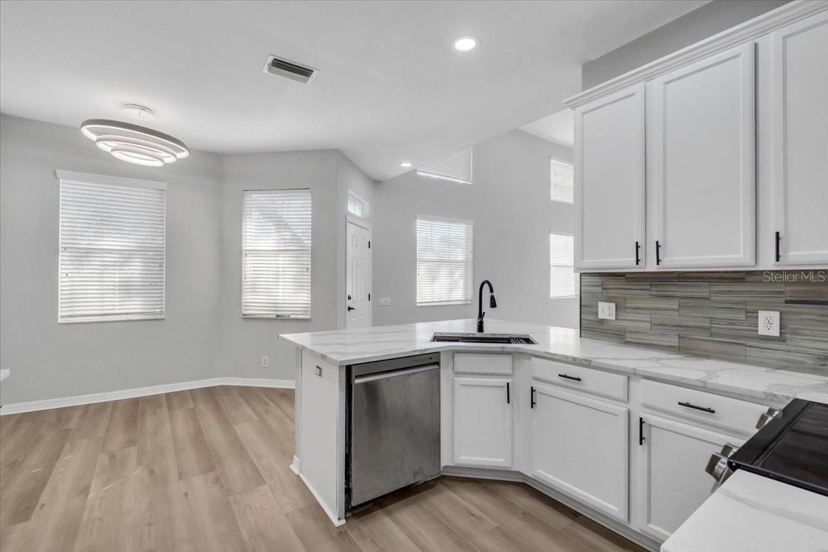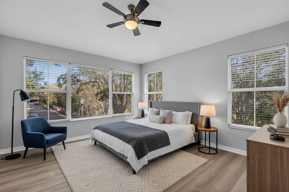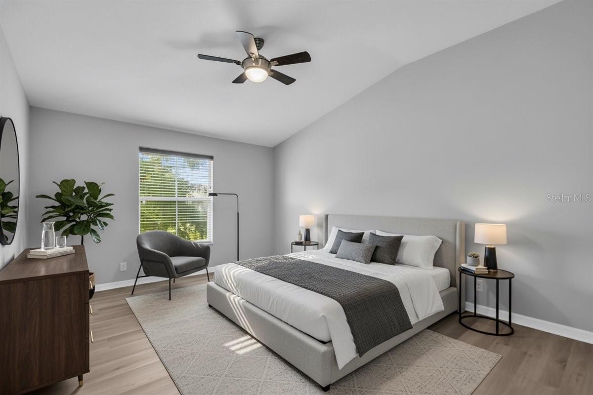 Welcome to this charmingly fully renovated townhome located in the gated Covered Bridge Community — offering modern living, comfort, and convenience in one of Dunedin’s most sought-after areas. This end-unit 3-bedroom, 2.5-bathroom gem, complete with a 2-car garage, exudes the charm of a model home. The renovation includes brand-new flooring throughout, fresh interiorpaint, modern light fixtures, and beautiful quartz countertops in the kitchen and bathrooms The main floor features a luxurious master suite, providing convenient and comfortable single-level living with sliding glass doors that open to a screened back patio—perfect for relaxing or entertaining outdoors. Upstairs, you’ll find two additional bedrooms, a full bathroom, and a spacious loft area with a dedicated workstation nook—perfect for a home office or study space. The kitchen is open to the dining room and great room, creating a spacious and inviting layout that’s perfect for entertaining. It features quartz countertops, ample cabinet space, brand-new stainless-steel appliances, and a cozy eat-in area for casual meals. There is a large laundry room with lots of extra storage. The abundance of windows and high ceilings in the great room bathes the interior in natural light, creating an inviting ambiance. Notably, this home is situated outside a flood zone, low HOA fees cover roof maintenance, exterior upkeep, grounds maintenance, access to the community pool, trash services, and the security of a gated entry. Located just minutes from vibrant Downtown Dunedin, the Pinellas Trail, Honeymoon Island, the Dunedin Causeway, shopping, and dining This home is undeniably a must-see, offering the perfect blend of elegance, functionality, and a prime Dunedin location.
