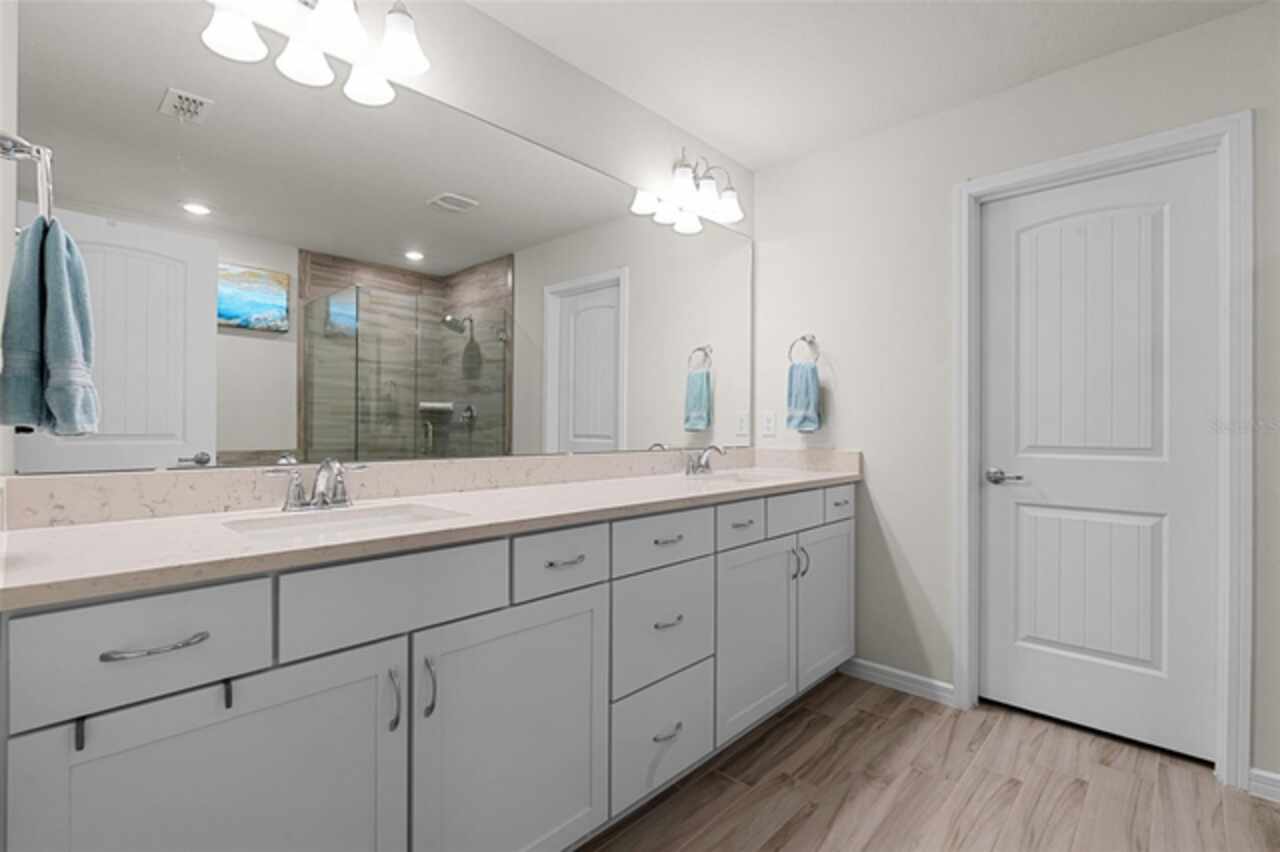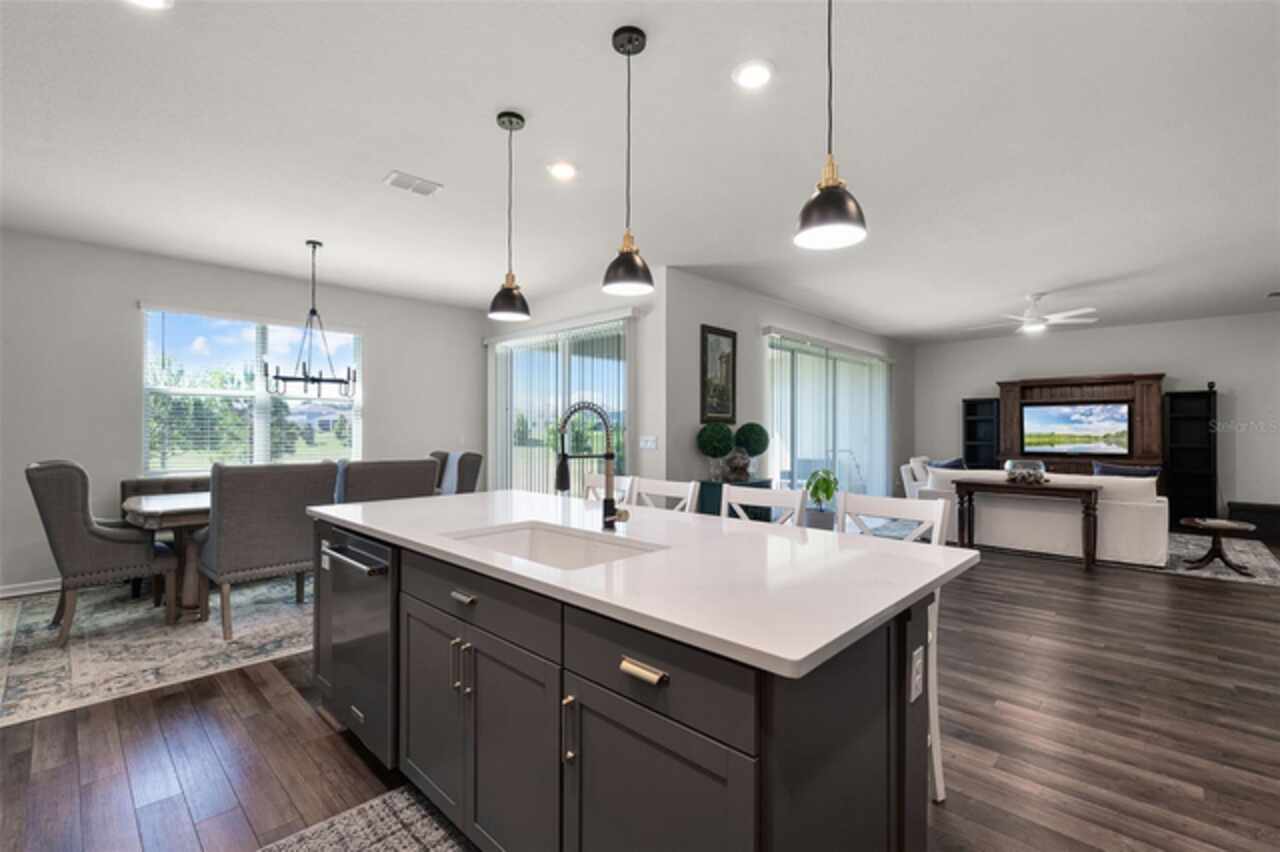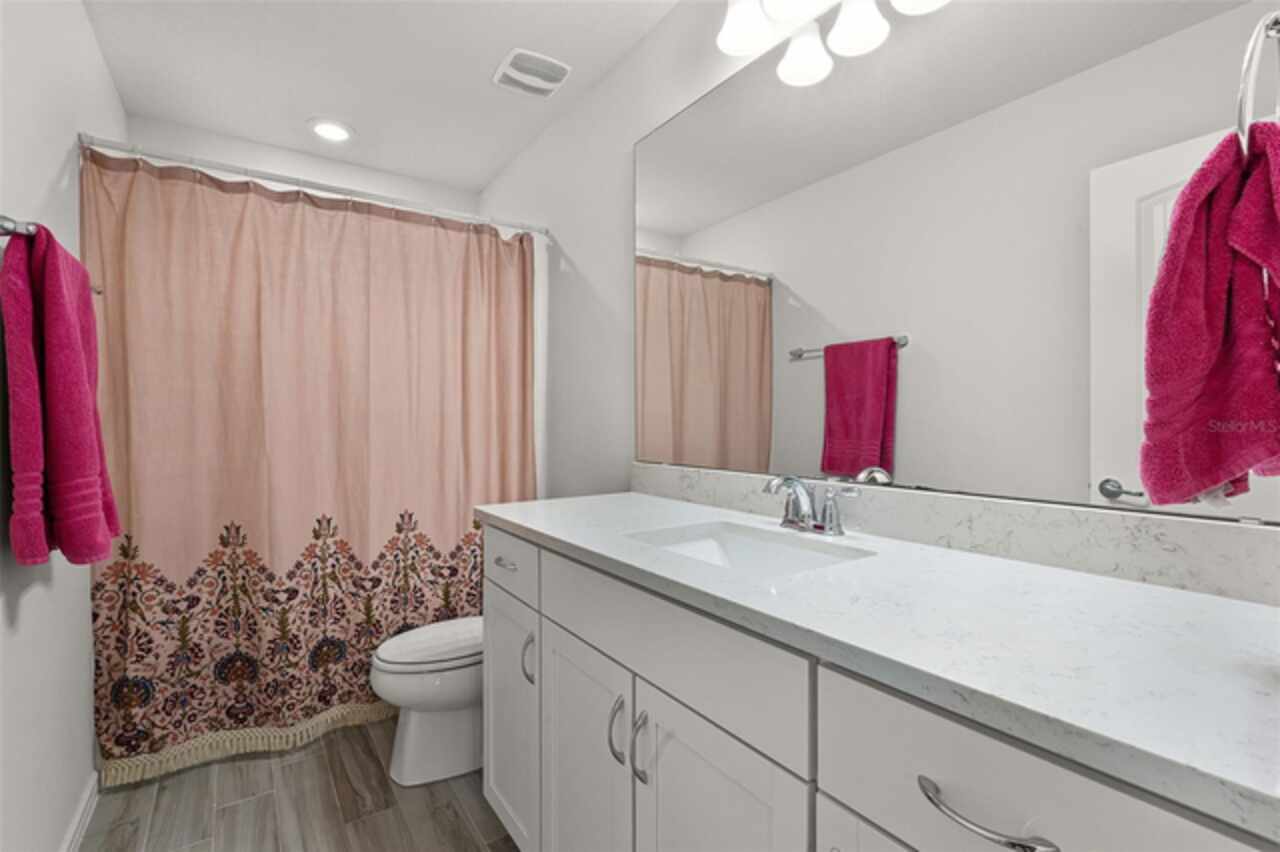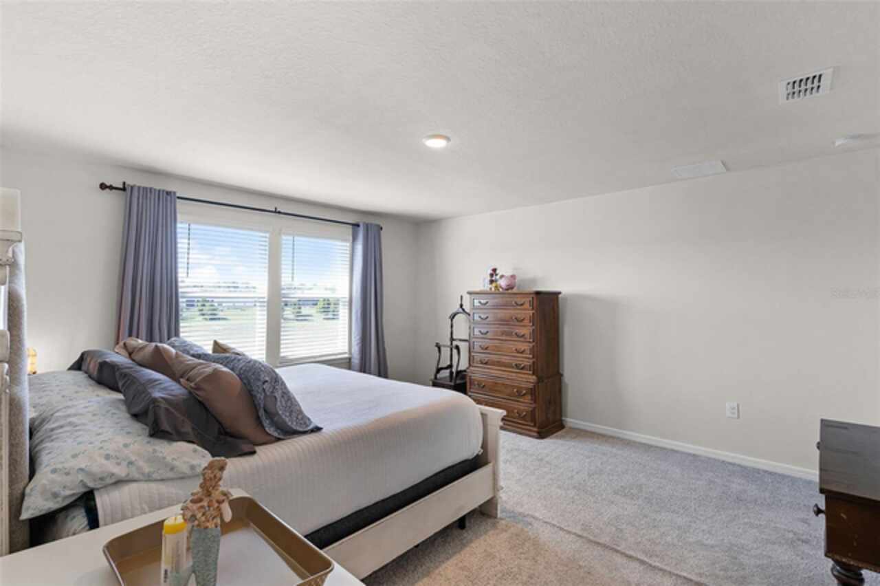 Step into this stunning two-story home in the popular gated community of Lakeview Preserve, where elegance meets functionality. Sitting on a larger homesite with a 4-foot garage extension, EV car charger, and beautiful stone-accented exterior, this home is as striking on the outside as it is inside. The Yorkshire floorplan by Pulte Homes offers 5 spacious bedrooms, 4.5 bathrooms, a large upstairs loft, and a versatile flex space—made private by French doors—perfect for a home office, gym, or library. Ideal for those seeking a multigenerational living concept, it features a first-floor ensuite for guests with a private bath, separated from the upstairs bedrooms and luxurious primary suite. Inside, wood-tone LVP flooring flows throughout the first-floor main living areas, complemented by custom trim work, designer wallpaper, and contrasting doors and trim. The gourmet kitchen is a showstopper with contrasting upper and lower cabinets, upgraded hardware, a large island with pendant lighting, a gorgeous backsplash, and premium finishes. The expansive great room opens with triple sliders plus additional double sliders to the covered lanai—perfect for indoor-outdoor living—with no rear neighbor for added privacy. Lakeview Preserve offers an incredible lifestyle with a resort-style pool, fitness center, clubhouse, playground, green space, and more—all just minutes from Winter Garden and Clermont’s best shopping, dining, and attractions. Not only is this home priced to sell, but the sellers are also offering a $20, 000 closing cost contribution—making it even more attainable! Bonus: a VA assumable loan is available! Opportunities like this are rare—see it in person and fall in love with every detail. Call today to schedule your private tour and make this dream home yours! WELCOME HOME!