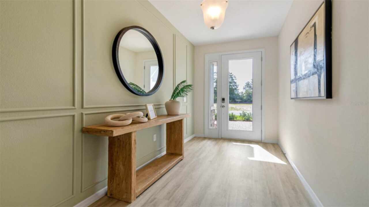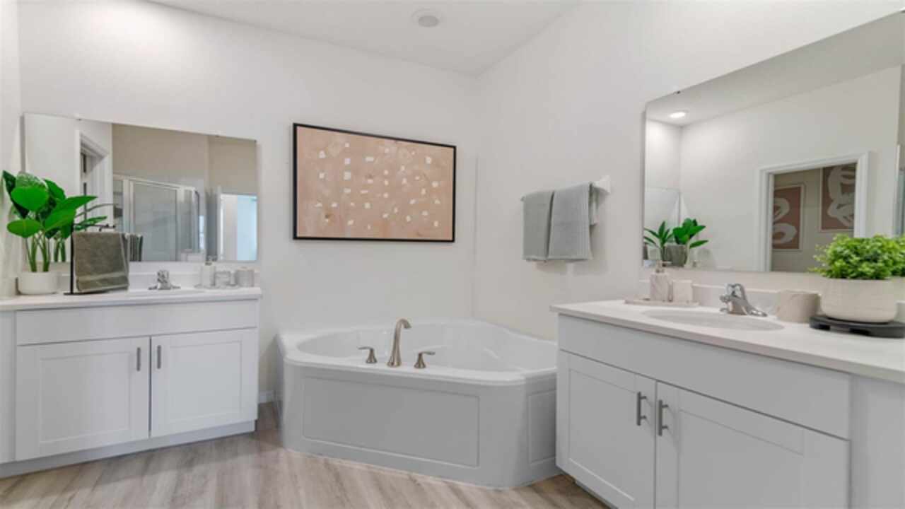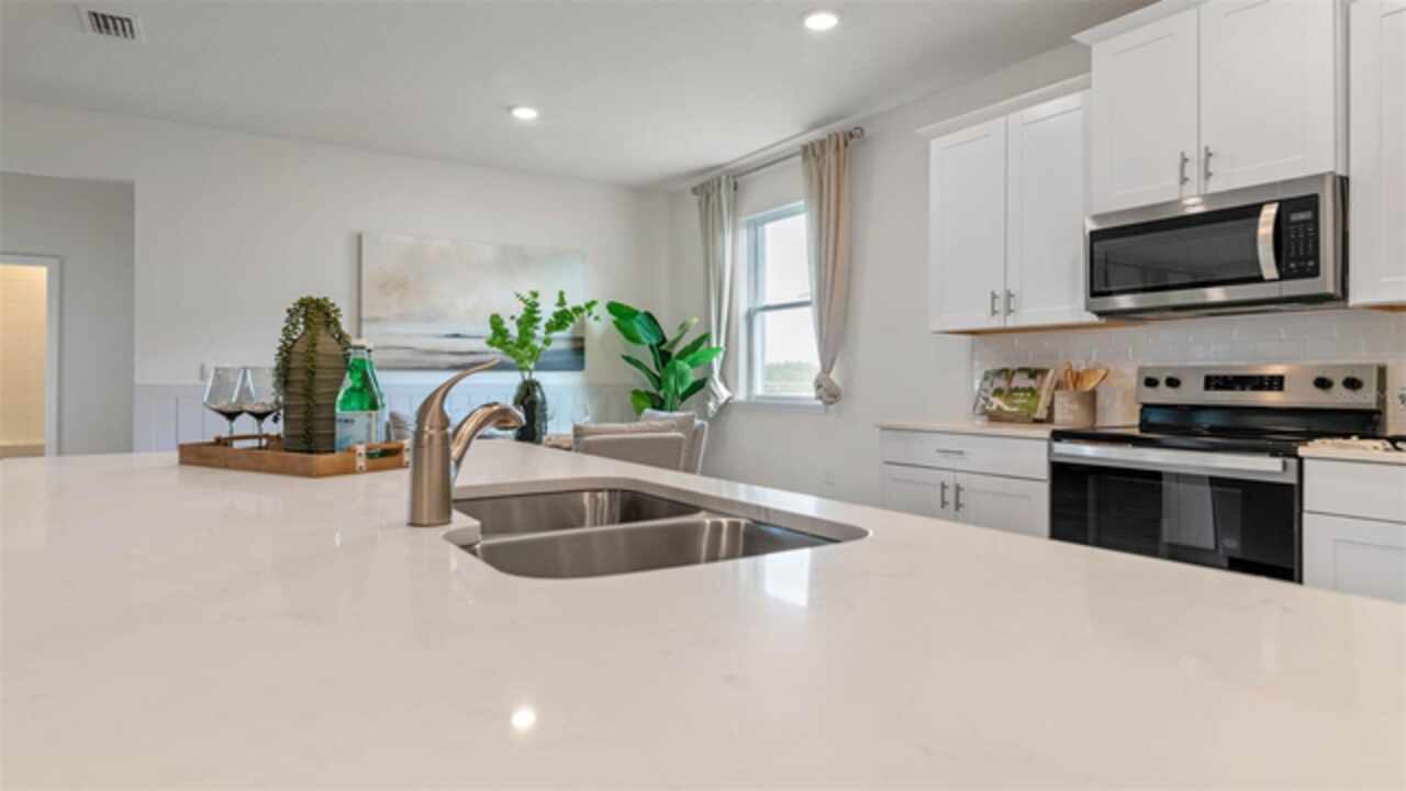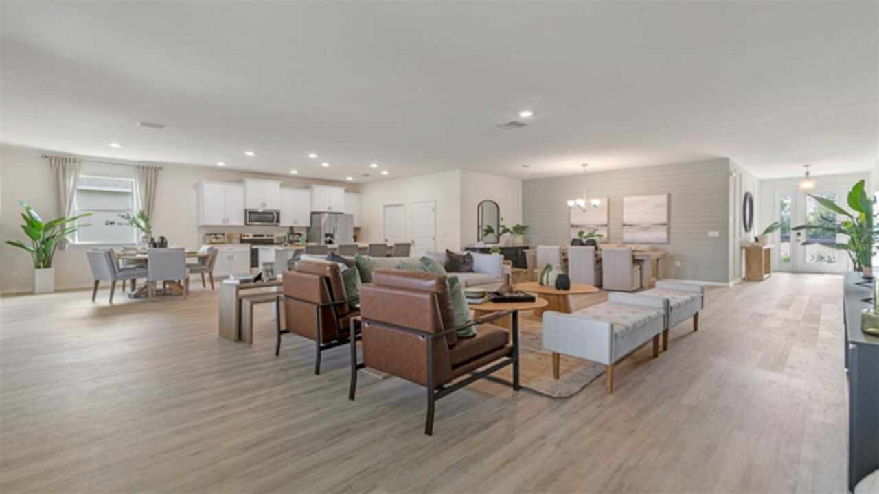 "Find all the space you need in our Destin floorplan in Archers Mill. This spacious all-concrete block construction single-family home features 4 bedrooms and 3 baths and 2, 361 square feet. As you enter the foyer, you are greeted with two bedrooms and a full bathroom. The well-appointed kitchen overlooks the dining room and features an island with bar seating, beautiful Quartz countertops and stainless-steel appliances. A versatile nook is located off the kitchen and can be adapted to fit your needs. Enjoy views of the oversized lanai from the spacious great room. Bedroom one, located in the back of the home for privacy has an en suite bathroom with a double vanity and spacious walk in closet. Bedroom four is tucked into the opposite corner of the house and includes a third bathroom. Like all homes in Archers Mill, the Destin includes a Home is Connected smart home technology package which allows you to control your home with your smart device while near or away. *Photos are of similar model but not that of exact house. Pictures, photographs, colors, features, and sizes are for illustration purposes only and will vary from the homes as built. Home and community information including pricing, included features, terms, availability and amenities are subject to change and prior sale at any time without notice or obligation. Please note that no representations or warranties are made regarding school districts or school assignments; you should conduct your own investigation regarding current and future schools and school boundaries.*