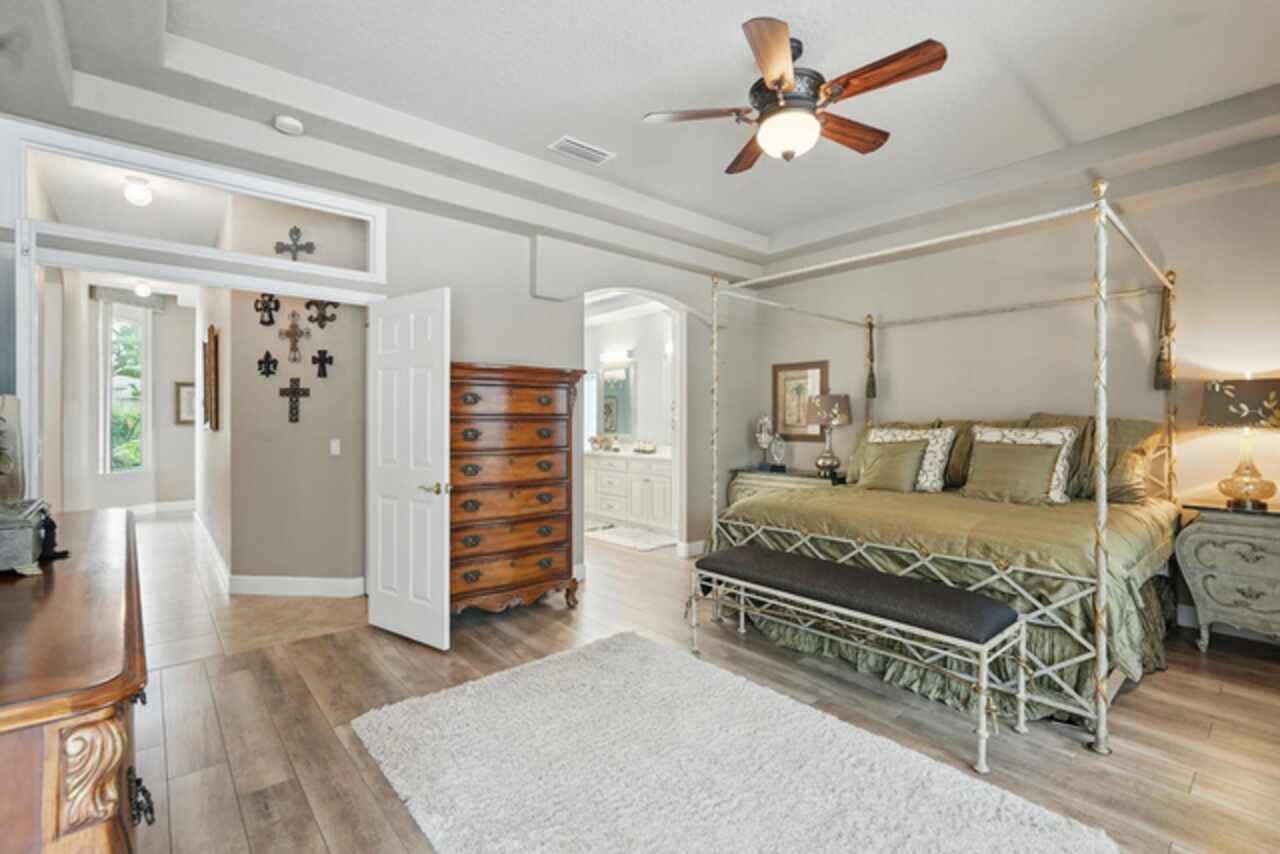 Under contract-accepting backup offers. Welcome to this beautifully maintained 4-bedroom, 3-bathroom pool home located in the highly sought-after, gated community of Breakaway Trails in Ormond Beach! Situated on a spacious lot with mature landscaping, this home offers the perfect blend of privacy, elegance, and functionality. Enjoy your morning cup of coffee while watching the deer roam in the backyard that is situated with the natural conservation area behind the home. Step inside to find an open and inviting floor plan with high ceilings, tile and hardwood flooring, and abundant natural light. Newly remodeled gourmet kitchen features granite countertops, stainless steel appliances, a center island, and a breakfast nook overlooking the screened-in lanai and sparkling pool and hot tub. Pool patio has $42, 000 worth of retractable hurricane rated shutters providing an ease of mind during a storm and additional privacy. The spacious primary suite includes trayed ceilings, a large walk-in closet, dual vanities, a soaking tub, and a separate walk-in shower. A split-bedroom layout offers additional privacy for guests or family members. Breakaway Trails offers 24-hour gated security, a clubhouse, new pickleball courts, tennis courts, community pool, playgrounds, and walking trails all just minutes from top-rated schools, shopping, restaurants, and the beach. Don't miss your chance to own a piece of paradise in one of Ormond Beach's most desirable neighborhoods!