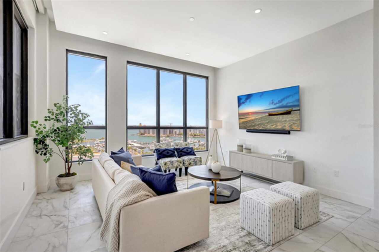 Experience elevated luxury at The DeMarcay in this brand-new, never-lived-in custom residence — a 3-bedroom, 3.5-bath sky home with a thoughtfully designed living space and breathtaking, unobstructed views of Sarasota Bay, the Gulf of Mexico, the Ringling Bridge, and Marina Jack's. From glowing sunrises to dazzling fireworks displays, your front-row seat to Sarasota’s skyline awaits. The chef’s kitchen is a dream come true, featuring a 6-burner gas cooktop, top-of-the-line appliances, custom cabinetry, wine cooler, and a generous walk-in pantry. The expansive primary suite welcomes the morning light with serene water views and includes a spa-like bath with double vanities, a freestanding soaking tub, glass-enclosed shower, and large walk-in closet. Both secondary bedrooms offer luxurious en suite bathrooms for comfort and privacy. No detail has been left untouched — this residence is fully outfitted with upgraded designer lighting, integrated audio, smart thermostat controls, and Lutron blackout curtains in every room. It truly lives like a single-family home in the sky. Amenities are located on the 18th floor and feature a resort-style pool, grilling area, catering/hosting lounge, and a fully equipped fitness center — all with panoramic views. Additional conveniences include 24-hour resident services, two assigned garage parking spaces, and a private storage unit. Set in the vibrant heart of downtown Sarasota, you’ll be just steps away from fine dining, boutique shopping, art galleries, theaters, and cultural attractions — all within easy walking distance. This is luxury redefined. Come home to comfort, sophistication, and Sarasota’s most spectacular views.