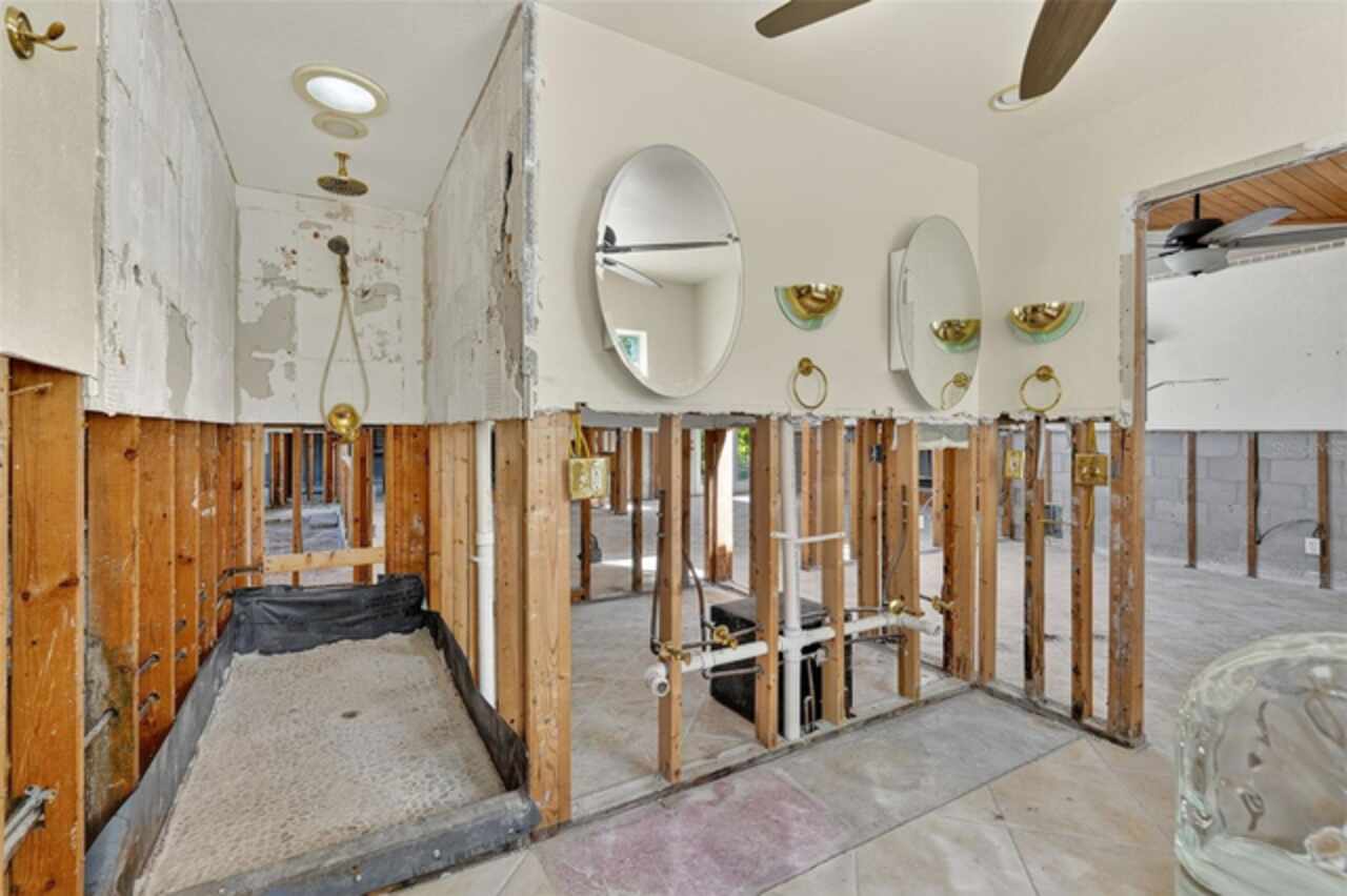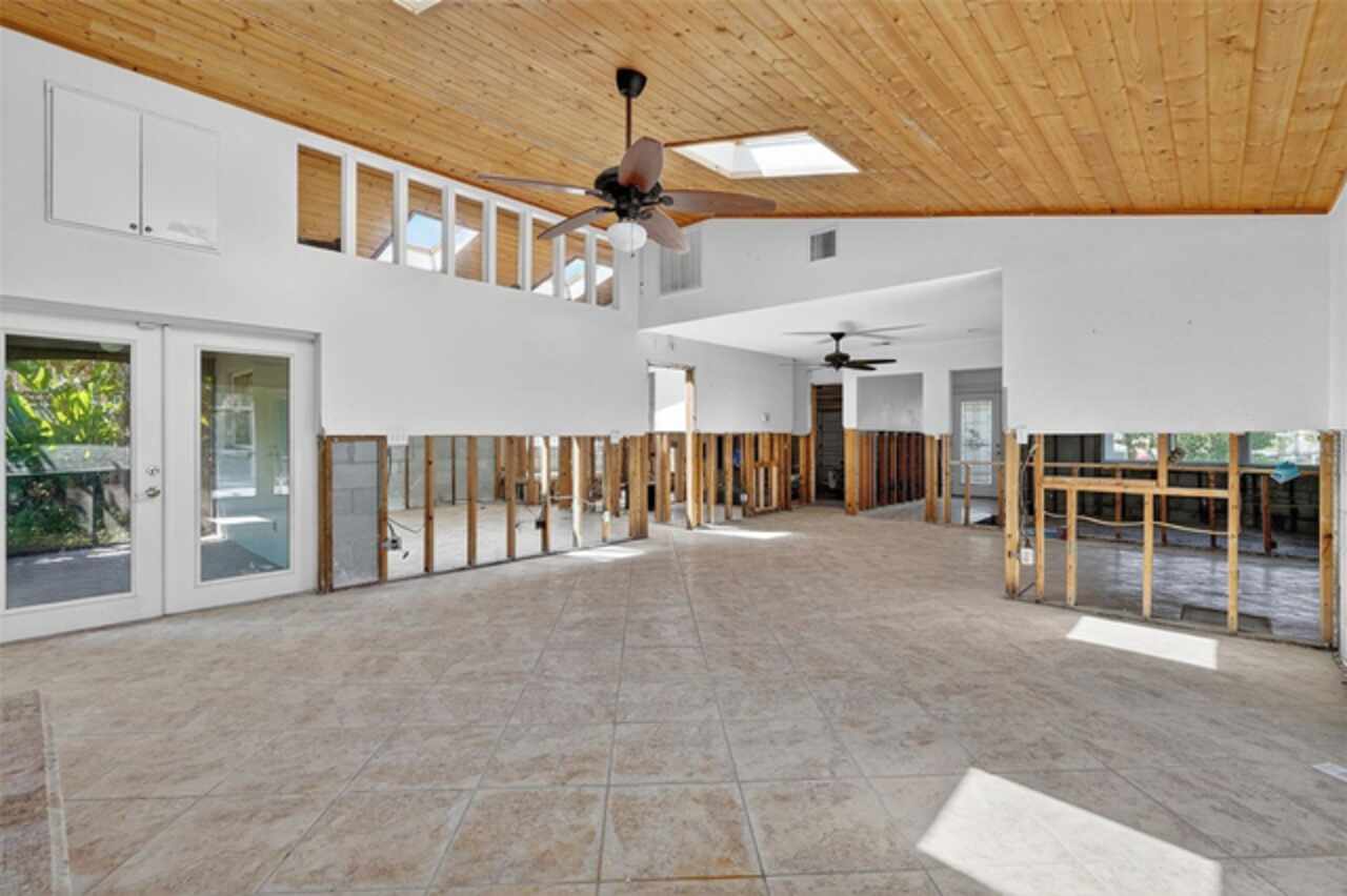 Bring your vision to this rare waterfront opportunity in the coveted Riviera Bay community! Located on the premier cul-de-sac of 90th Ave NE, this property offers VIP water views, direct canal access to Riviera Bay, and ownership of the private waterfront lot across the street with a seawall. The existing 3-bedroom, 2-bath, 2-car garage home has experienced flood damage and has been taken down to the studs—making it a true blank canvas for your dream home. The expansive split floor plan with vaulted ceilings, skylights, and oversized primary suite provides a solid foundation for renovation, while large windows and French doors offer endless possibilities to capture natural light and stunning views. Out back, a spacious screened enclosure surrounds the pool area, waiting to be restored into a showpiece for outdoor living. With only one tall bridge (San Martin) between you and open water, this is a boater’s paradise—perfect for quick cruises, fishing trips, or relaxing days at the sandbar. Riviera Bay is known as a hidden gem—close to downtown St. Pete, the Pier, shopping, parks, award-winning beaches, Tampa International Airport, and I-275. 330 90th Ave NE isn’t just a property—it’s an opportunity to create a custom waterfront lifestyle in one of St. Petersburg’s most desirable locations. Sold AS-IS.