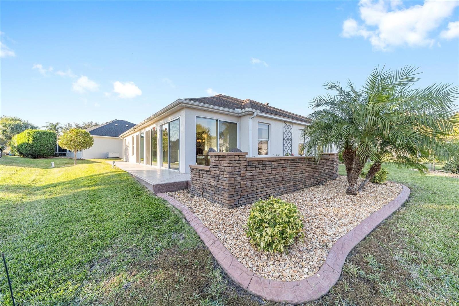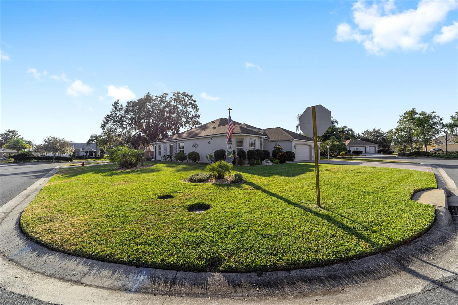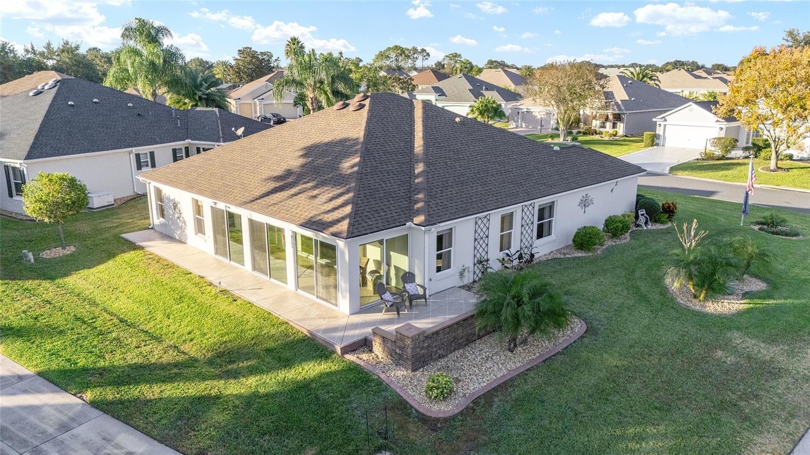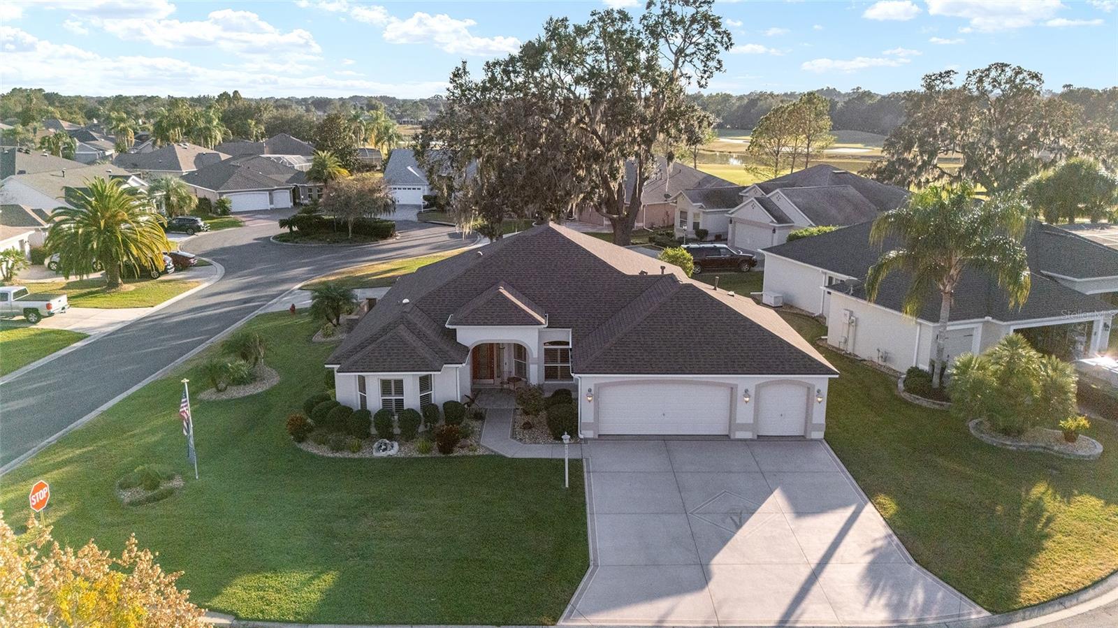 |The BOND is PAID on this LOVELY EXPANDED GARDENIA, with an extra deep golf cart garage in the highly sought out village of Glenbrook. Located on an oversized, PROFESSIONALLY LANDSCAPED corner lot, this IMMACULATE home is just waiting for its new owner! The spacious, open concept interior is light and bright and offers a 2' expansion to the living room, guest bedrooms, guest bath, and the lanai! STACK-BACK glass sliders open from the living room area to the screened lanai. Crown molding throughout. Plus, remote control shades! No direct neighbors behind and does have a peek-a-boo view of Glenview golf course. A beautiful brick paver side patio makes for a great spot to relax or BBQ. The home has neutral tile throughout the kitchen, utility room and guest bath. Luxury vinyl plank in the living room and dining room as well as the master bedroom. Carpet in the 2 bedrooms. The kitchen offers fresh bright cabinetry with crown molding, QUARTZ countertops, plantation shutters, a space saver microwave, newer gas range and refrigerator, as well as pull out drawers. The master bedroom provides access to the screened lanai and to dual walk-in closets and a master bath with double sinks, a vanity area and remodeled shower. The guest area of the home features 2 expanded bedrooms, (front bedroom with bay window does not have a closet), along with an expanded guest bath with a tiled shower/tub combination. The driveway is also expanded and is wide enough to park 6 cars! Storage options include a secret James Bond style climate-controlled room in the garage as well as free standing metal lock and key storage containers. This home has an inside laundry room with Maytag washer/dryer, sink and more storage. Also, don't worry about the big-ticket items, A/C replaced in 2024 with a Trane, and ROOF was replaced in 2021. The Village of Glenbrook is ideally situated near Spanish Springs and Lake Sumter town squares. Saddlebrook Recreation Center along with 2 executive golf courses, an adult swimming pool, 4 softball diamonds, Polo Fields and Glenview Championship Golf and Country Club are just minutes away! Easy access to 466 with abundant shopping, dining, banking, medical facilities, and the new COSTCO! Call today to set up your private showing!