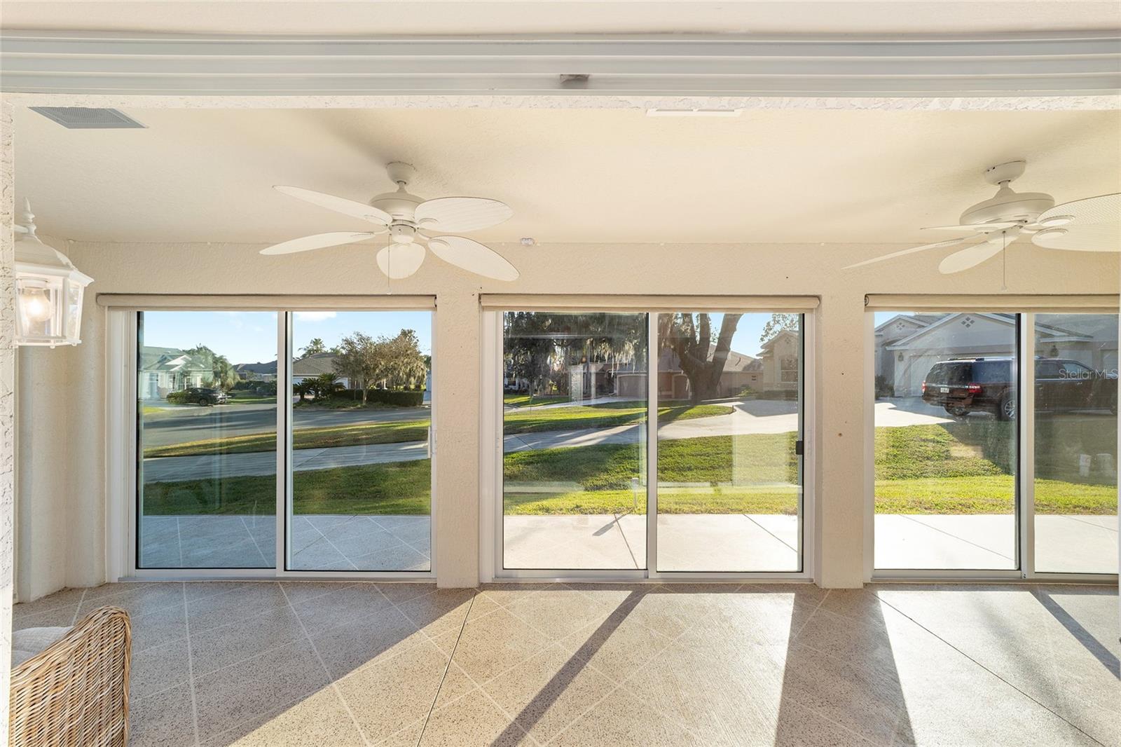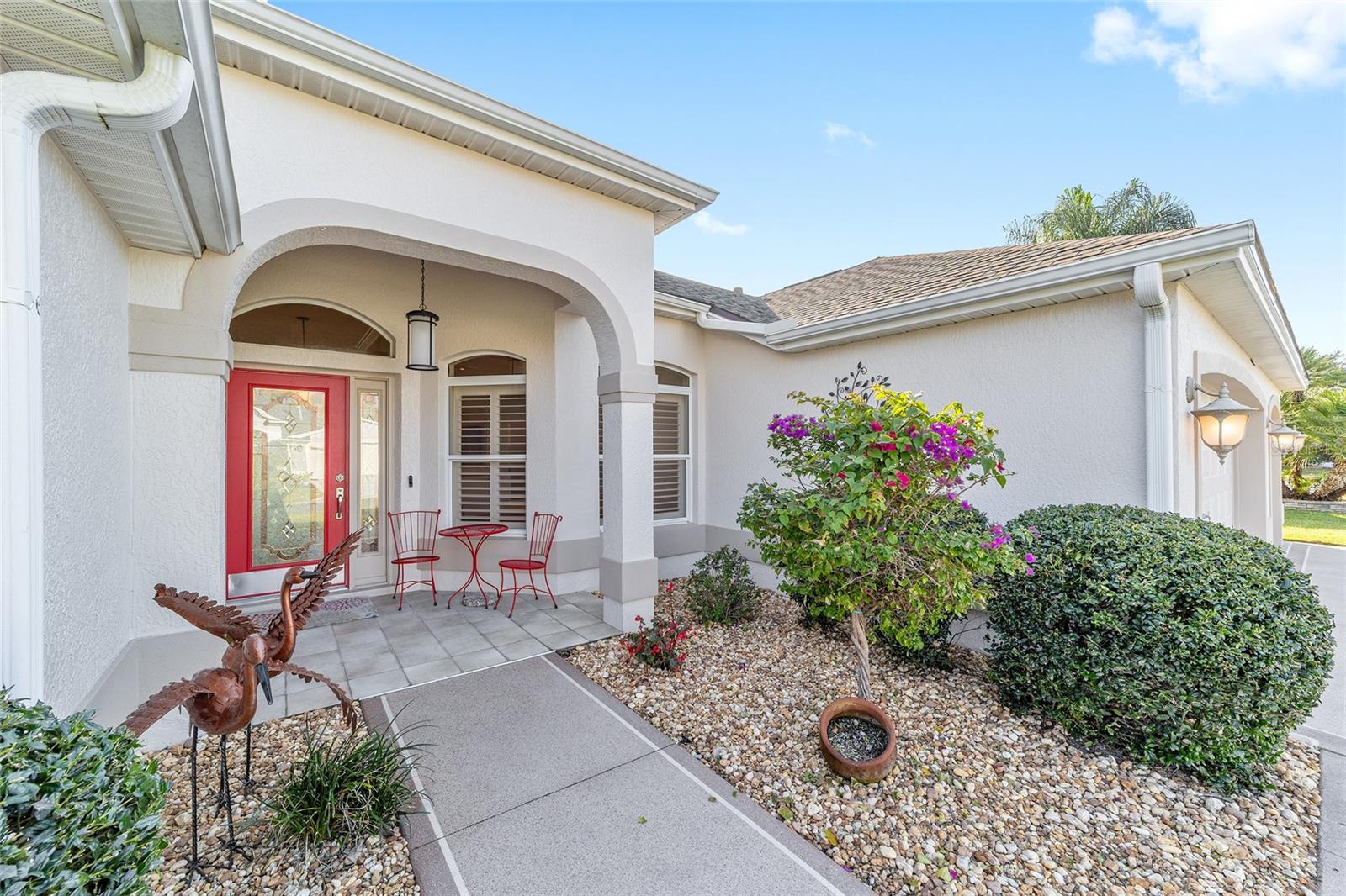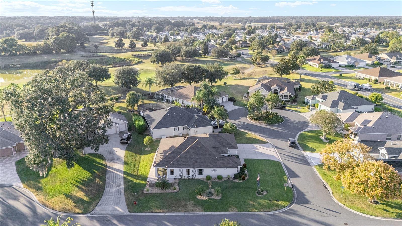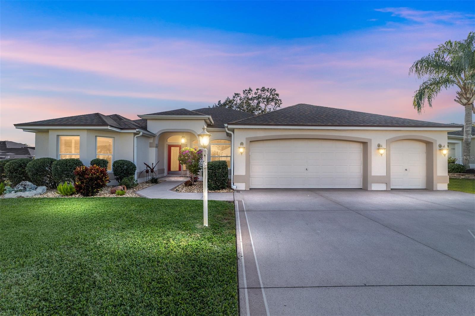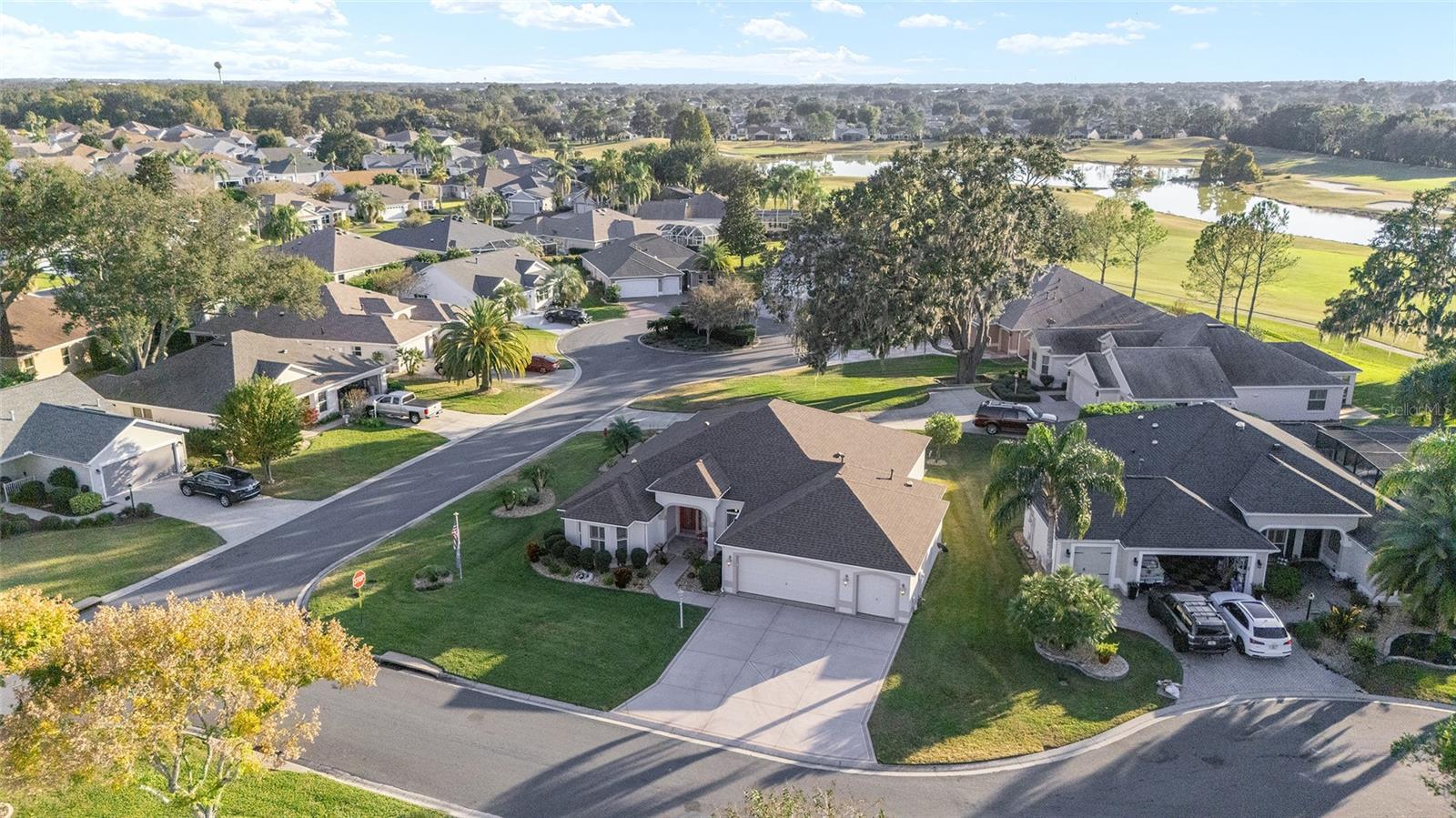 |The BOND is PAID on this LOVELY EXPANDED GARDENIA, with an extra deep golf cart garage in the highly sought out village of Glenbrook. Located on an oversized, PROFESSIONALLY LANDSCAPED corner lot, this IMMACULATE home is just waiting for its new owner! The spacious, open concept interior is light and bright and offers a 2' expansion to the living room, guest bedrooms, guest bath, and the lanai! STACK-BACK glass sliders open from the living room area to the screened lanai. Crown molding throughout. Plus, remote control shades! No direct neighbors behind and does have a peek-a-boo view of Glenview golf course. A beautiful brick paver side patio makes for a great spot to relax or BBQ. The home has neutral tile throughout the kitchen, utility room and guest bath. Luxury vinyl plank in the living room and dining room as well as the master bedroom. Carpet in the 2 bedrooms. The kitchen offers fresh bright cabinetry with crown molding, QUARTZ countertops, plantation shutters, a space saver microwave, newer gas range and refrigerator, as well as pull out drawers. The master bedroom provides access to the screened lanai and to dual walk-in closets and a master bath with double sinks, a vanity area and remodeled shower. The guest area of the home features 2 expanded bedrooms, (front bedroom with bay window does not have a closet), along with an expanded guest bath with a tiled shower/tub combination. The driveway is also expanded and is wide enough to park 6 cars! Storage options include a secret James Bond style climate-controlled room in the garage as well as free standing metal lock and key storage containers. This home has an inside laundry room with Maytag washer/dryer, sink and more storage. Also, don't worry about the big-ticket items, A/C replaced in 2024 with a Trane, and ROOF was replaced in 2021. The Village of Glenbrook is ideally situated near Spanish Springs and Lake Sumter town squares. Saddlebrook Recreation Center along with 2 executive golf courses, an adult swimming pool, 4 softball diamonds, Polo Fields and Glenview Championship Golf and Country Club are just minutes away! Easy access to 466 with abundant shopping, dining, banking, medical facilities, and the new COSTCO! Call today to set up your private showing!