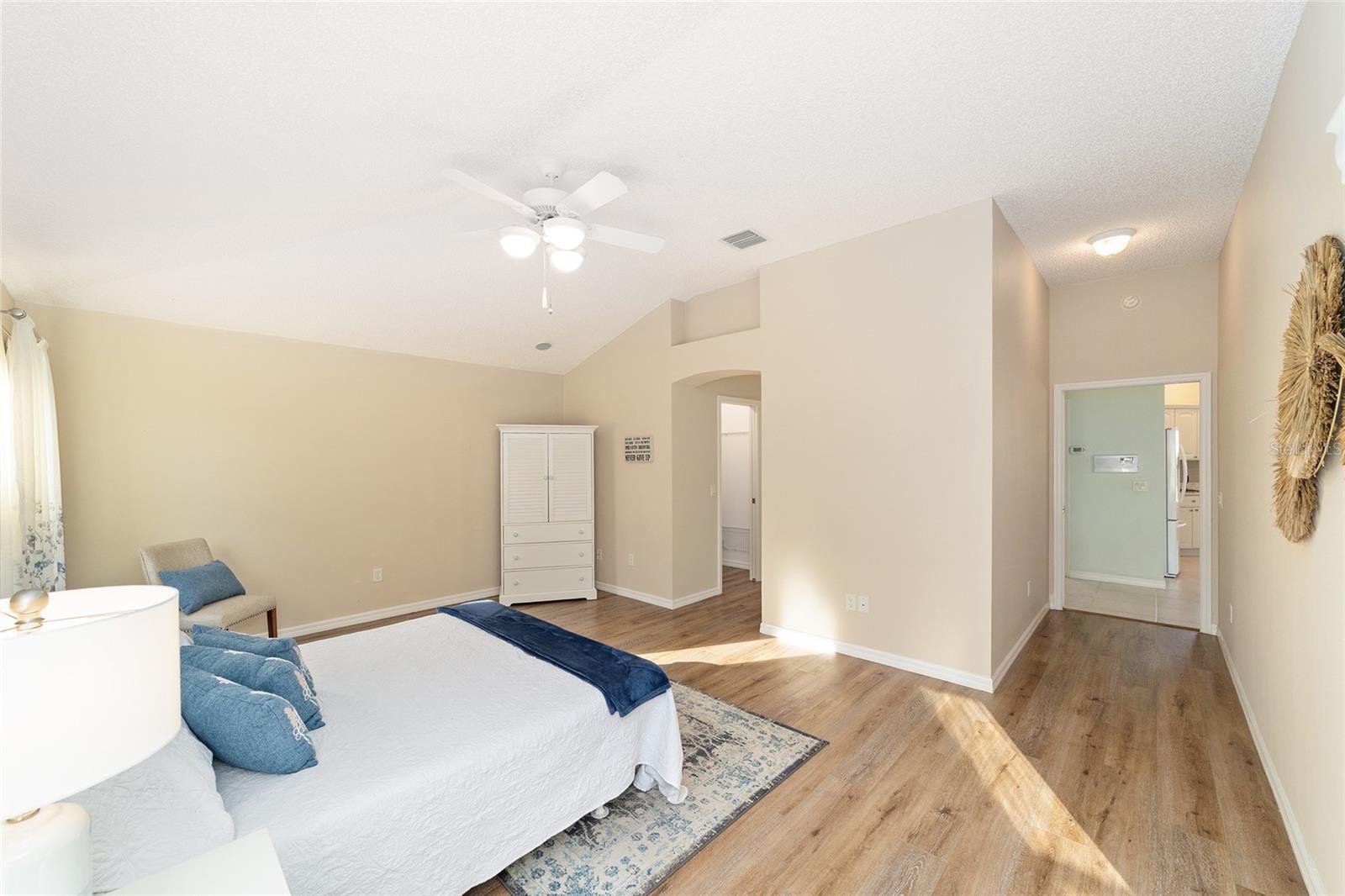 Ceiling Fans(s), Crown Molding, Eat-in Kitchen, Open Floorplan, Primary Bedroom Main Floor, Thermostat, Vaulted Ceiling(s), Walk-In Closet(s)