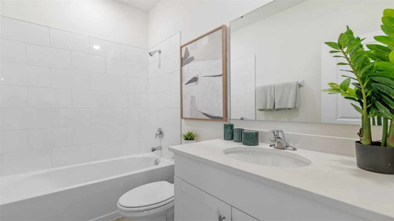 "Find all the space you need in our Destin floorplan in Archers Mill. This spacious all-concrete block construction single-family home features 4 bedrooms and 3 baths and 2, 361 square feet. As you enter the foyer, you are greeted with two bedrooms and a full bathroom. The well-appointed kitchen overlooks the dining room and features an island with bar seating, beautiful quartz countertops and stainless-steel appliances. A versatile nook is located off the kitchen and can be adapted to fit your needs. Enjoy views of the oversized lanai from the spacious great room. Bedroom one, located in the back of the home for privacy has an en suite bathroom with a double vanity and spacious walk in closet. Bedroom four is tucked into the opposite corner of the house and includes a third bathroom. Like all homes in Archers Mill, the Destin includes a Home is Connected smart home technology package which allows you to control your home with your smart device while near or away. *Photos are of similar model but not that of exact house. Pictures, photographs, colors, features, and sizes are for illustration purposes only and will vary from the homes as built. Home and community information including pricing, included features, terms, availability and amenities are subject to change and prior sale at any time without notice or obligation. Please note that no representations or warranties are made regarding school districts or school assignments; you should conduct your own investigation regarding current and future schools and school boundaries.*