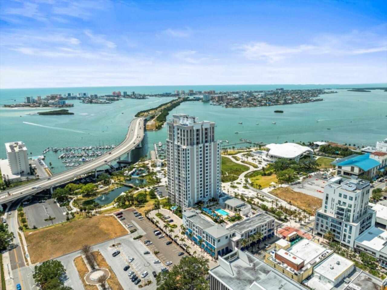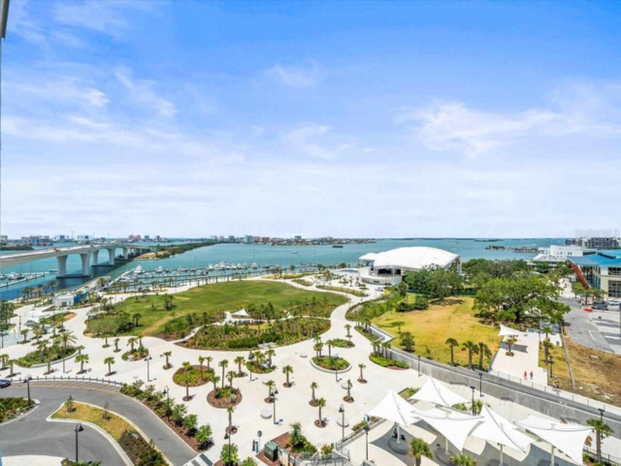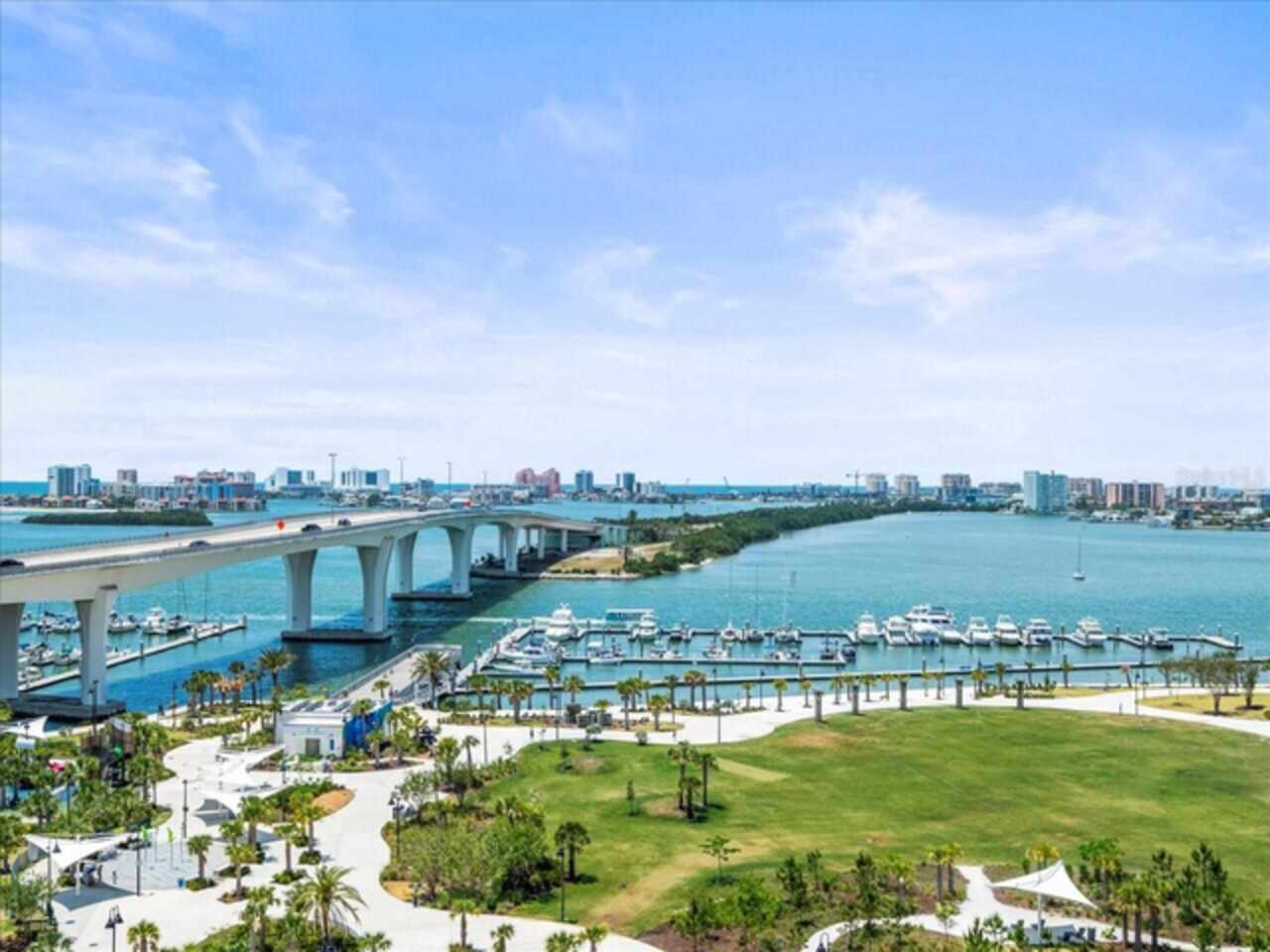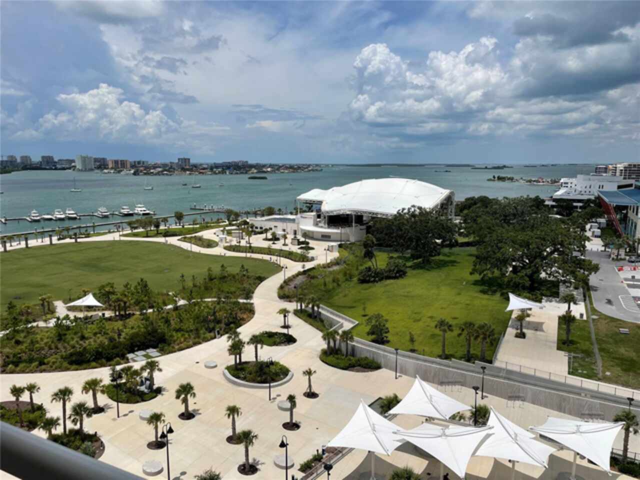 2 bed/2 bath Condo in Clearwater. High and Dry Hurricane Hardened Building in a non-evacuation zone high on a bluff overlooking Clearwater's Coachman Park, Marina, The BayCare Sound Stage, Clearwater Beach, Sand Key and Intra Coastal Waterway. Walk to the wonderful events at the BayCare Sound and Capitol Theatre both right across the street as well as multiple restaurants, coffee shops, etc... This is a custom finished Waters Edge 2 bedroom, 2 bath condo plus office/work space. It features amazing Northerly and Westerly water views of the Intracoastal, beaches & Gulf of Mexico. This condo features large windows to afford you the best views and bring in the natural light. The open kitchen great room plan gives a spacious feel perfect for entertaining and enjoying the beautiful views. A large covered balcony allows you to enjoy the fresh air and concerts featured at the Sound Stage! Master bedroom features a large window, master bath with dual sink vanity, walk in shower and separate large soaking tub. Separate laundry room and separated office space. Also, two convenient covered and secured parking spaces #15 & 16 as well as a storage locker #67. This unit has beautiful décor and is move in ready. The community features a gym, clubhouse, pool, BBQ, outdoor fire place area and is located with a front row view of the most spectacular sunsets!