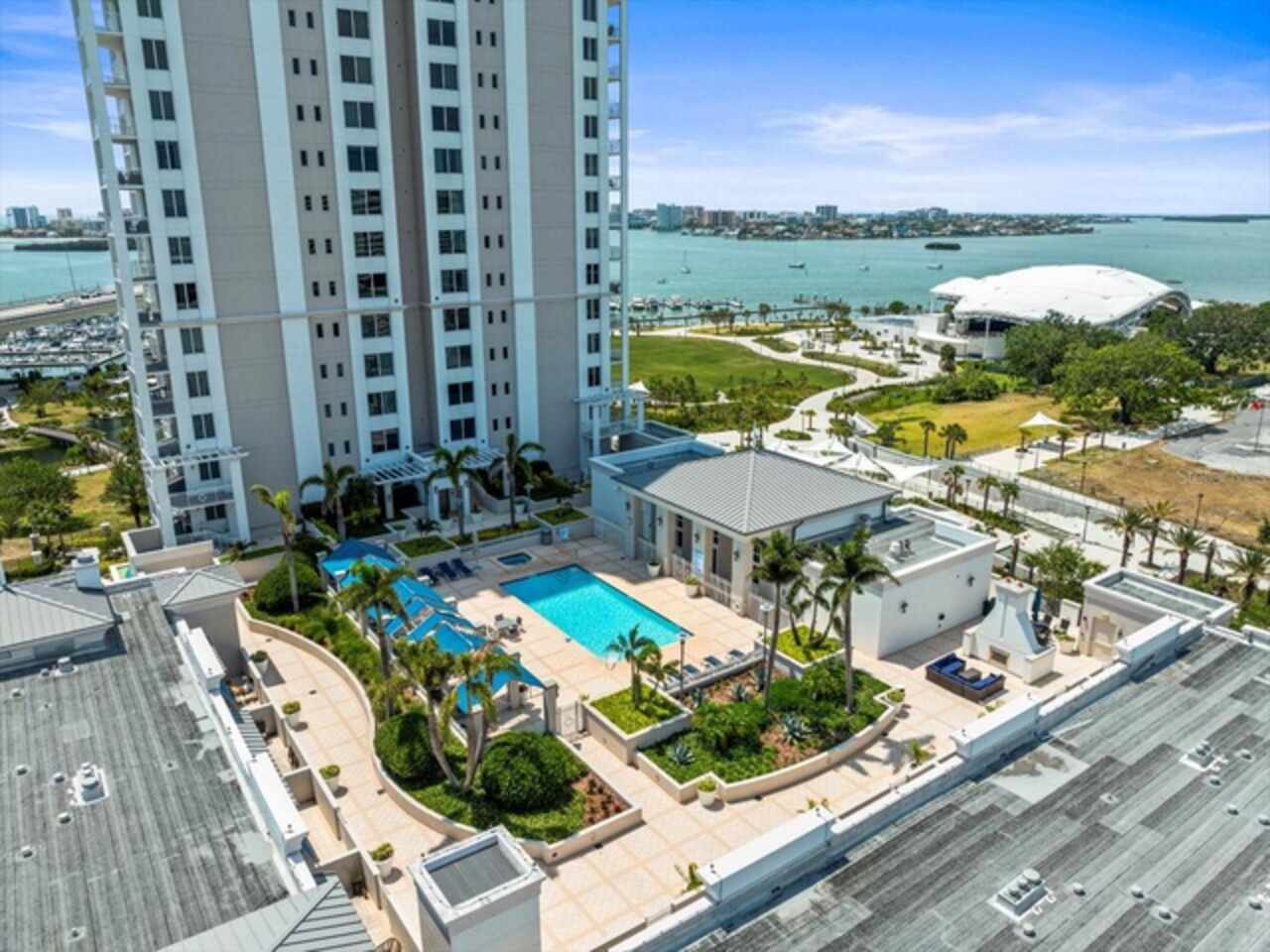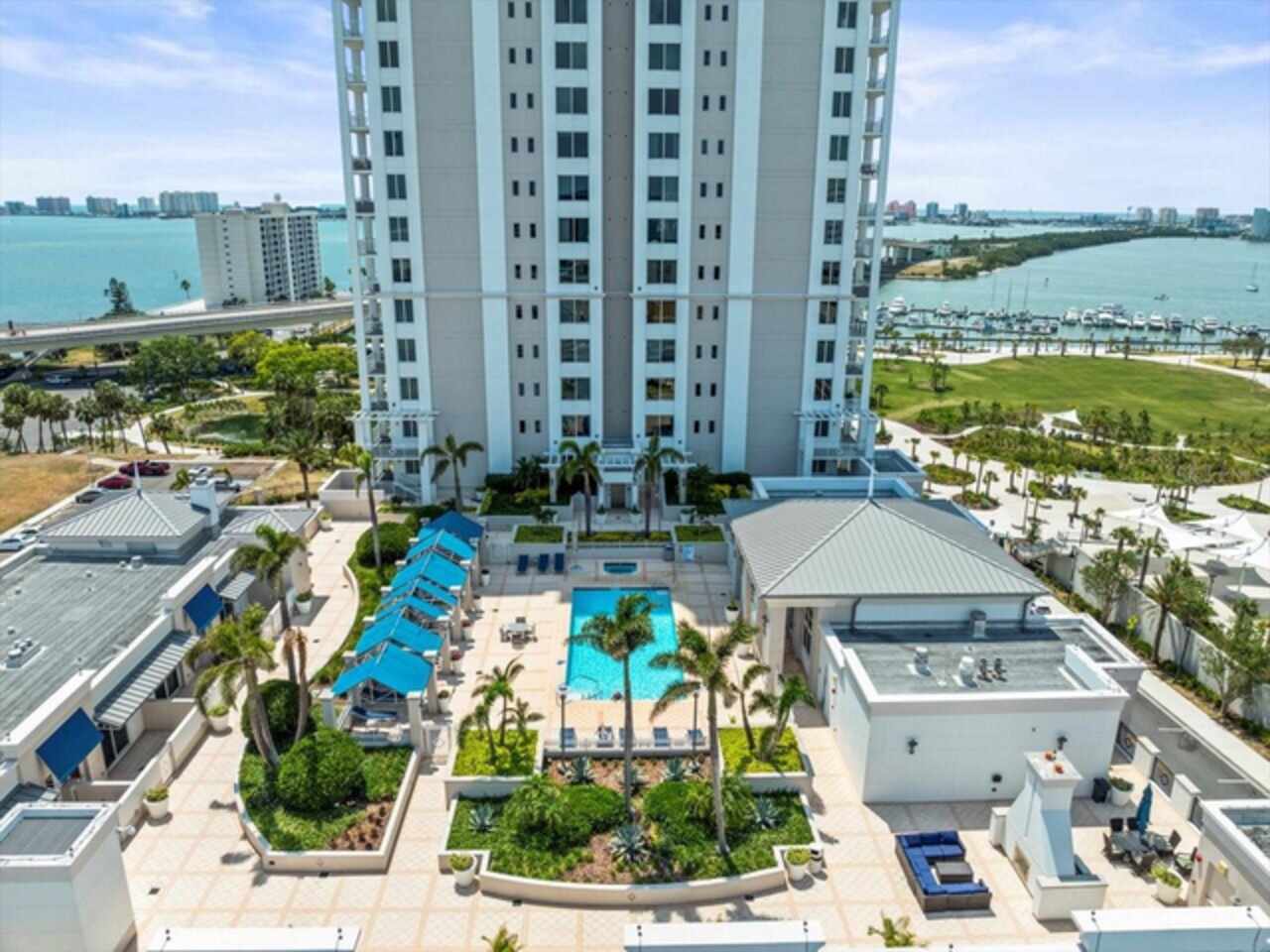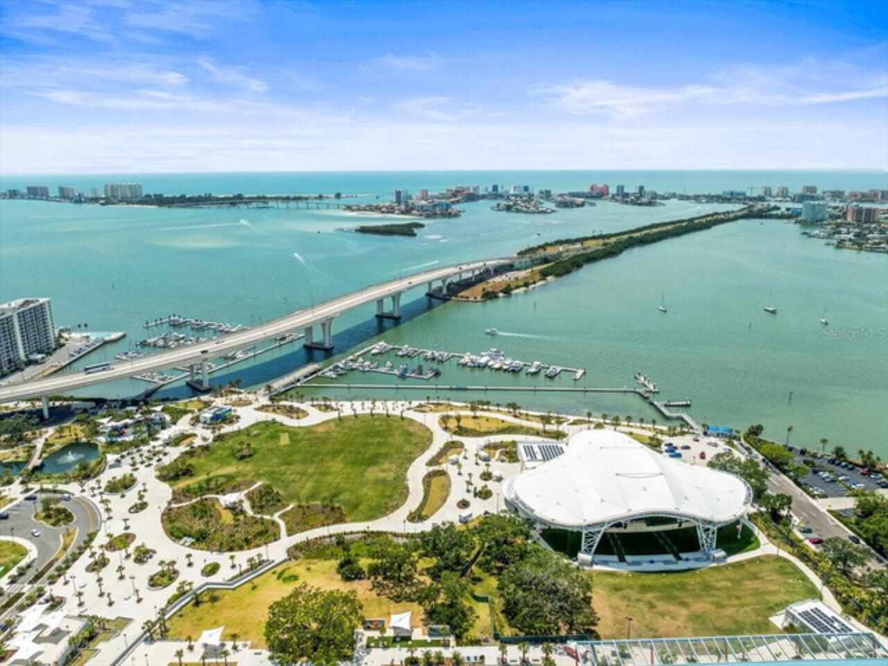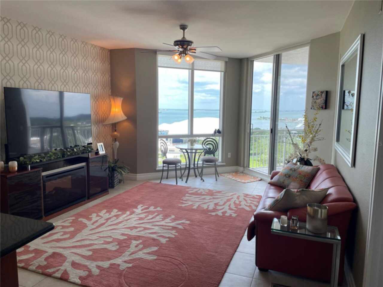 2 bed/2 bath Condo in Clearwater. High and Dry Hurricane Hardened Building in a non-evacuation zone high on a bluff overlooking Clearwater's Coachman Park, Marina, The BayCare Sound Stage, Clearwater Beach, Sand Key and Intra Coastal Waterway. Walk to the wonderful events at the BayCare Sound and Capitol Theatre both right across the street as well as multiple restaurants, coffee shops, etc... This is a custom finished Waters Edge 2 bedroom, 2 bath condo plus office/work space. It features amazing Northerly and Westerly water views of the Intracoastal, beaches & Gulf of Mexico. This condo features large windows to afford you the best views and bring in the natural light. The open kitchen great room plan gives a spacious feel perfect for entertaining and enjoying the beautiful views. A large covered balcony allows you to enjoy the fresh air and concerts featured at the Sound Stage! Master bedroom features a large window, master bath with dual sink vanity, walk in shower and separate large soaking tub. Separate laundry room and separated office space. Also, two convenient covered and secured parking spaces #15 & 16 as well as a storage locker #67. This unit has beautiful décor and is move in ready. The community features a gym, clubhouse, pool, BBQ, outdoor fire place area and is located with a front row view of the most spectacular sunsets!