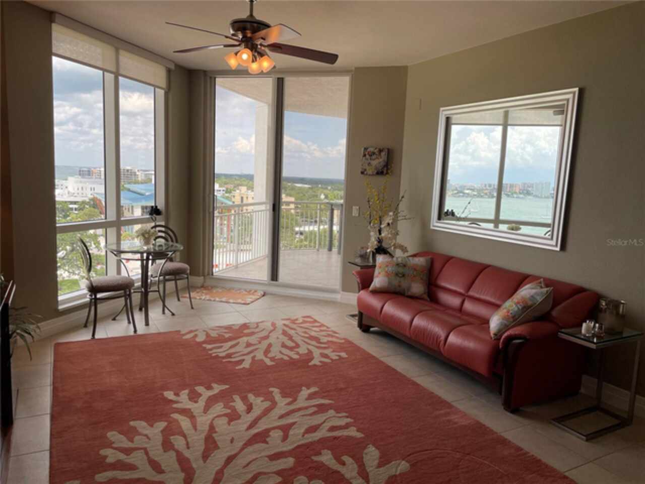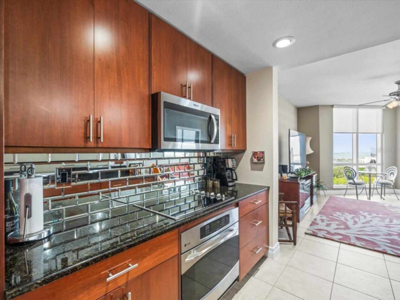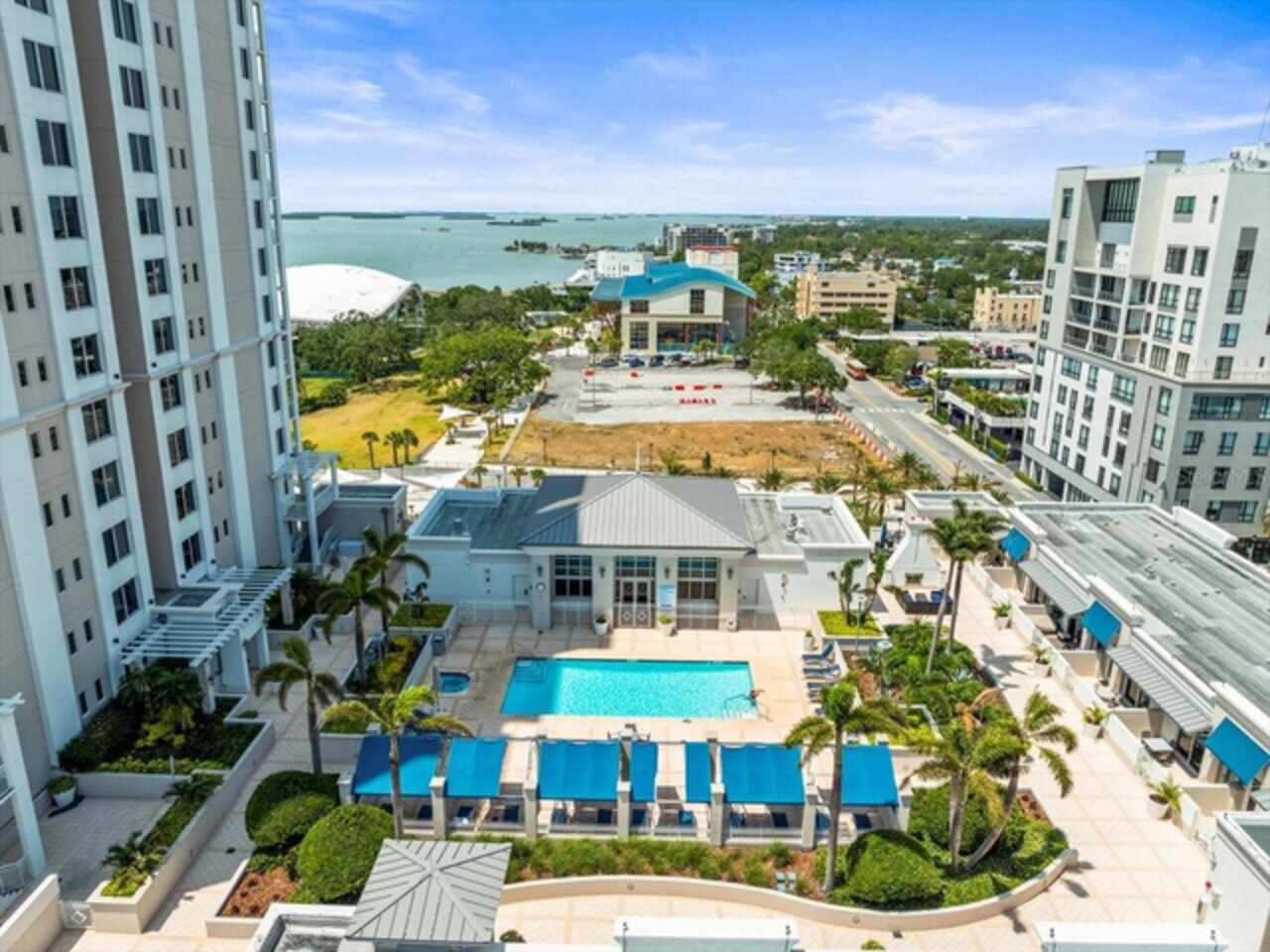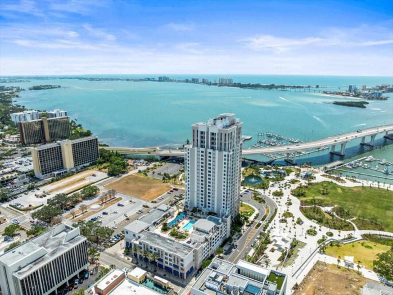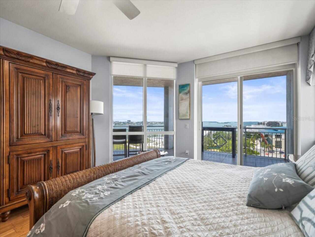 2 bed/2 bath Condo in Clearwater. High and Dry Hurricane Hardened Building in a non-evacuation zone high on a bluff overlooking Clearwater's Coachman Park, Marina, The BayCare Sound Stage, Clearwater Beach, Sand Key and Intra Coastal Waterway. Walk to the wonderful events at the BayCare Sound and Capitol Theatre both right across the street as well as multiple restaurants, coffee shops, etc... This is a custom finished Waters Edge 2 bedroom, 2 bath condo plus office/work space. It features amazing Northerly and Westerly water views of the Intracoastal, beaches & Gulf of Mexico. This condo features large windows to afford you the best views and bring in the natural light. The open kitchen great room plan gives a spacious feel perfect for entertaining and enjoying the beautiful views. A large covered balcony allows you to enjoy the fresh air and concerts featured at the Sound Stage! Master bedroom features a large window, master bath with dual sink vanity, walk in shower and separate large soaking tub. Separate laundry room and separated office space. Also, two convenient covered and secured parking spaces #15 & 16 as well as a storage locker #67. This unit has beautiful décor and is move in ready. The community features a gym, clubhouse, pool, BBQ, outdoor fire place area and is located with a front row view of the most spectacular sunsets!