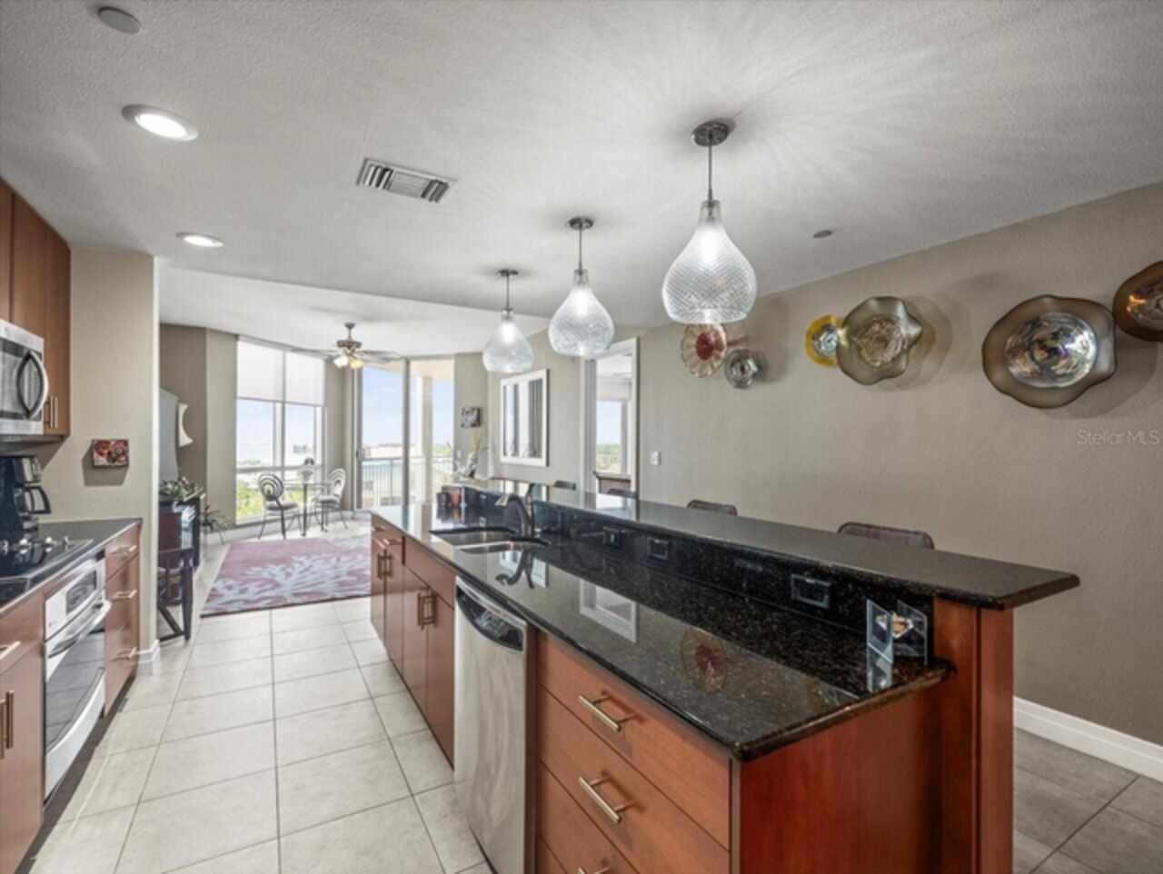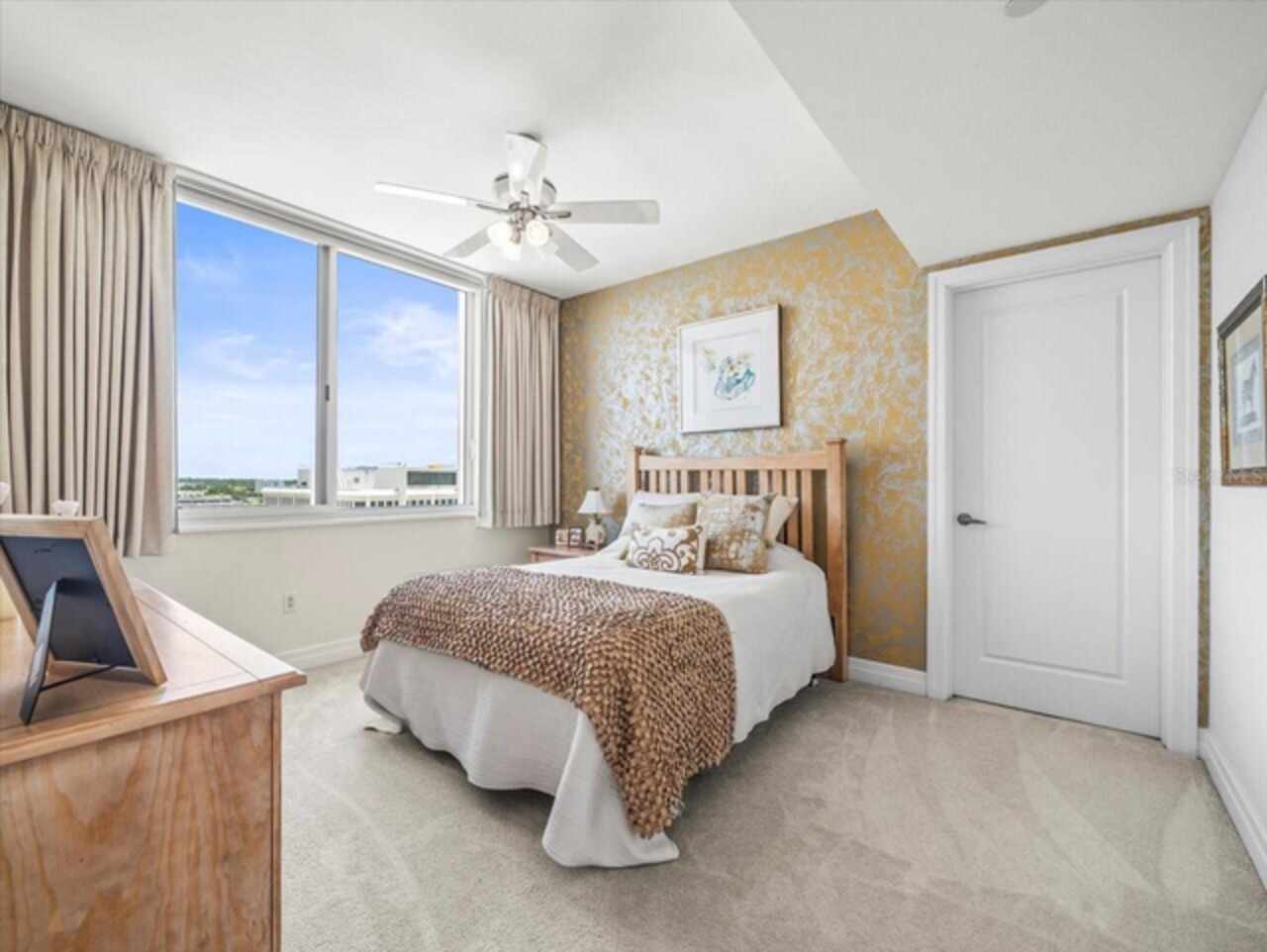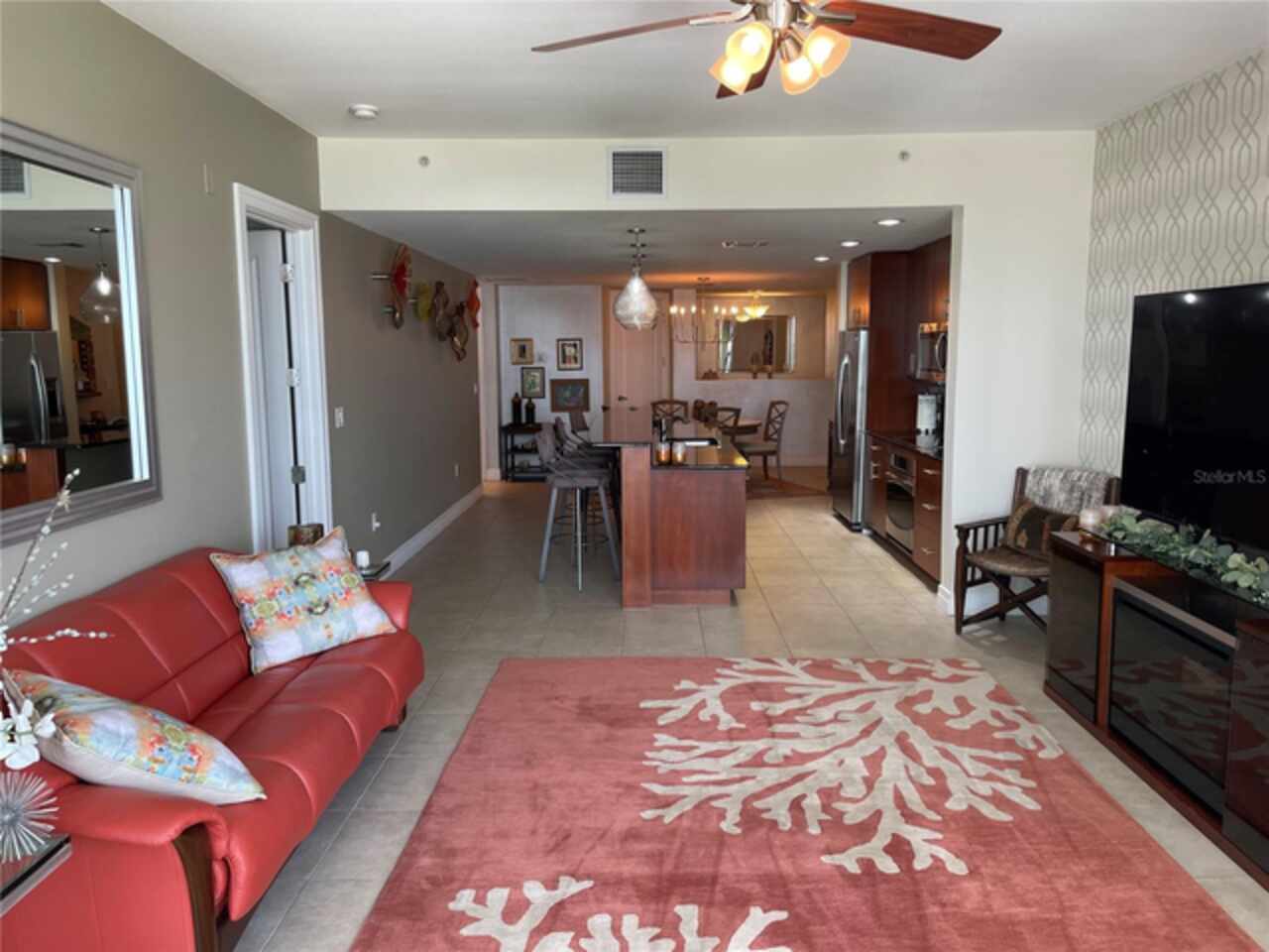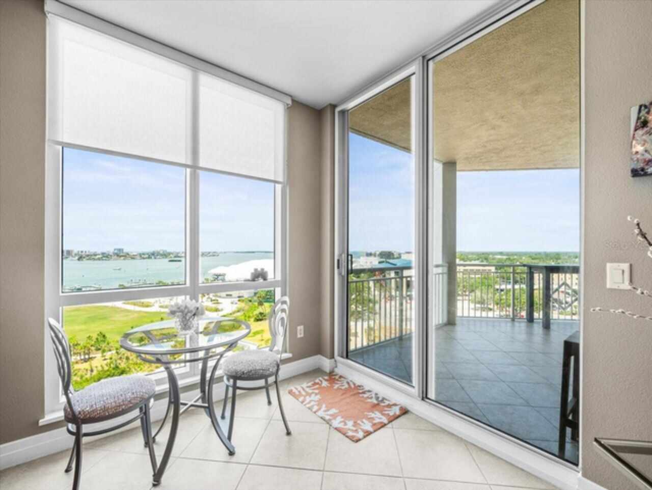 2 bed/2 bath Condo in Clearwater. High and Dry Hurricane Hardened Building in a non-evacuation zone high on a bluff overlooking Clearwater's Coachman Park, Marina, The BayCare Sound Stage, Clearwater Beach, Sand Key and Intra Coastal Waterway. Walk to the wonderful events at the BayCare Sound and Capitol Theatre both right across the street as well as multiple restaurants, coffee shops, etc... This is a custom finished Waters Edge 2 bedroom, 2 bath condo plus office/work space. It features amazing Northerly and Westerly water views of the Intracoastal, beaches & Gulf of Mexico. This condo features large windows to afford you the best views and bring in the natural light. The open kitchen great room plan gives a spacious feel perfect for entertaining and enjoying the beautiful views. A large covered balcony allows you to enjoy the fresh air and concerts featured at the Sound Stage! Master bedroom features a large window, master bath with dual sink vanity, walk in shower and separate large soaking tub. Separate laundry room and separated office space. Also, two convenient covered and secured parking spaces #15 & 16 as well as a storage locker #67. This unit has beautiful décor and is move in ready. The community features a gym, clubhouse, pool, BBQ, outdoor fire place area and is located with a front row view of the most spectacular sunsets!