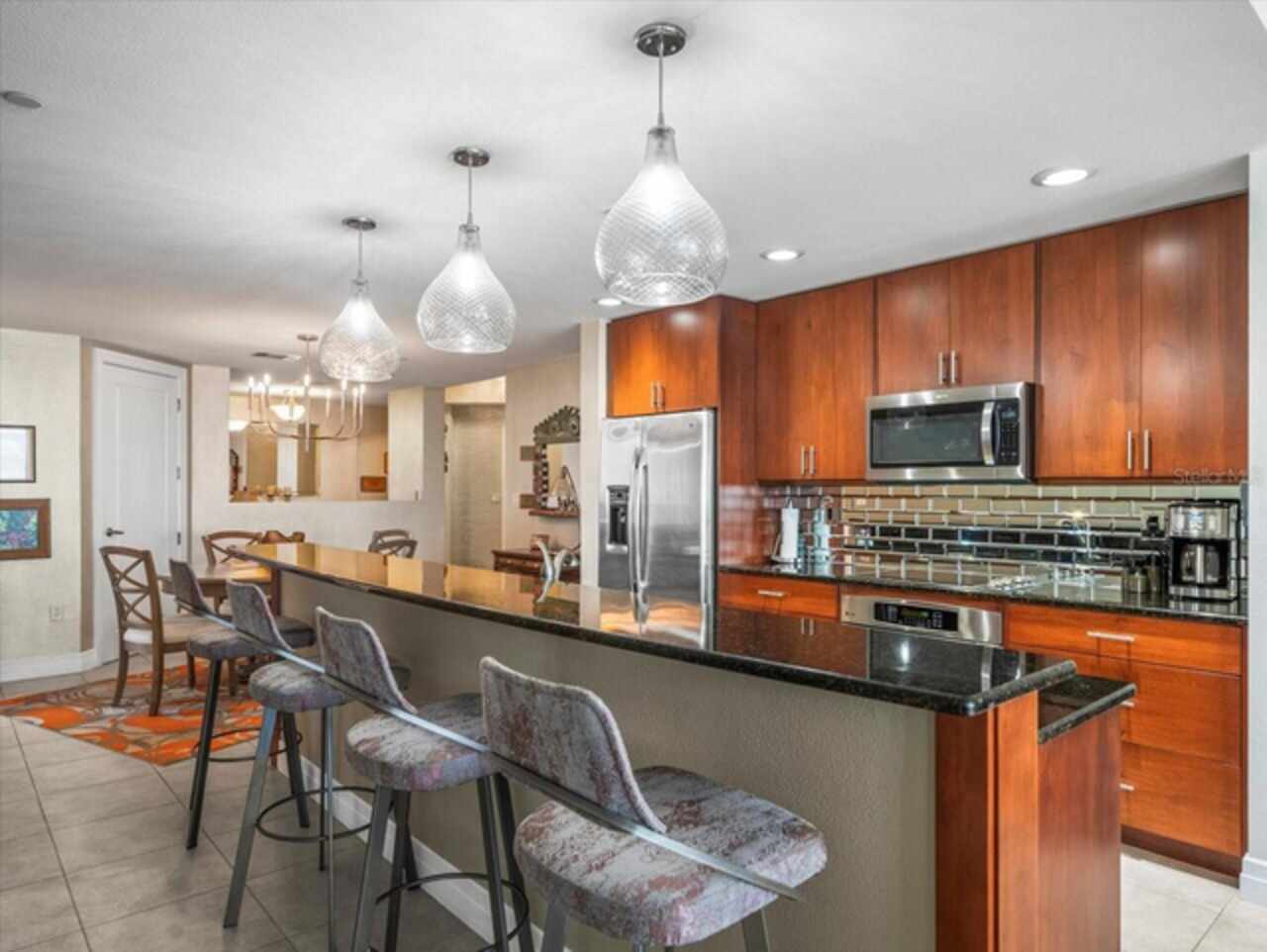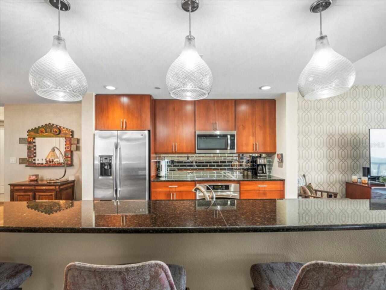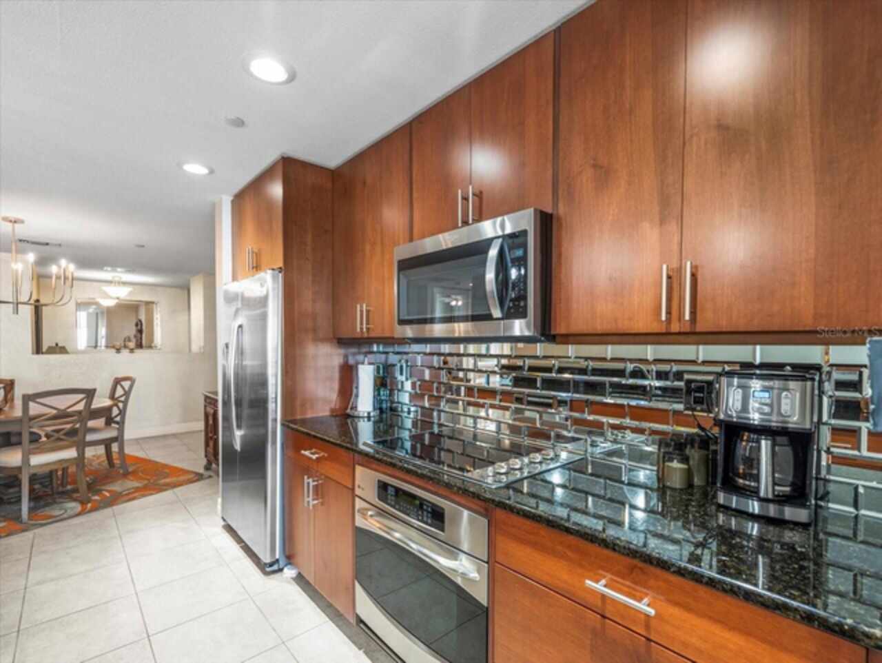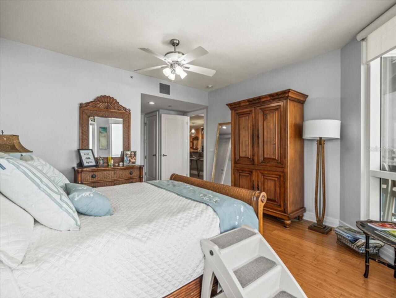 2 bed/2 bath Condo in Clearwater. High and Dry Hurricane Hardened Building in a non-evacuation zone high on a bluff overlooking Clearwater's Coachman Park, Marina, The BayCare Sound Stage, Clearwater Beach, Sand Key and Intra Coastal Waterway. Walk to the wonderful events at the BayCare Sound and Capitol Theatre both right across the street as well as multiple restaurants, coffee shops, etc... This is a custom finished Waters Edge 2 bedroom, 2 bath condo plus office/work space. It features amazing Northerly and Westerly water views of the Intracoastal, beaches & Gulf of Mexico. This condo features large windows to afford you the best views and bring in the natural light. The open kitchen great room plan gives a spacious feel perfect for entertaining and enjoying the beautiful views. A large covered balcony allows you to enjoy the fresh air and concerts featured at the Sound Stage! Master bedroom features a large window, master bath with dual sink vanity, walk in shower and separate large soaking tub. Separate laundry room and separated office space. Also, two convenient covered and secured parking spaces #15 & 16 as well as a storage locker #67. This unit has beautiful décor and is move in ready. The community features a gym, clubhouse, pool, BBQ, outdoor fire place area and is located with a front row view of the most spectacular sunsets!