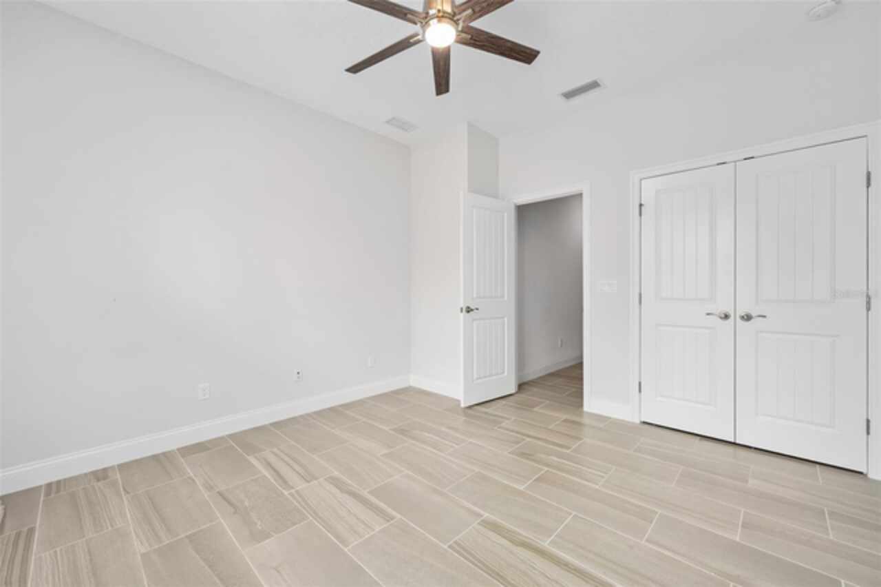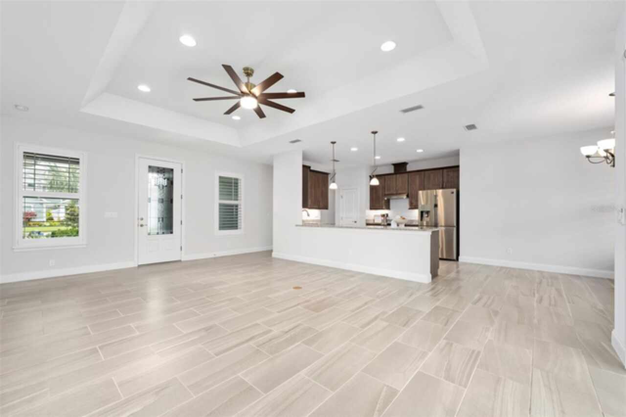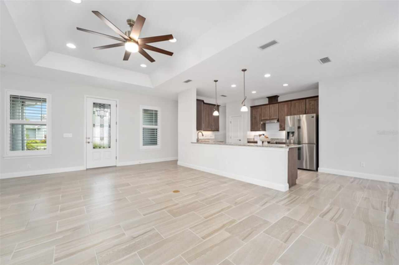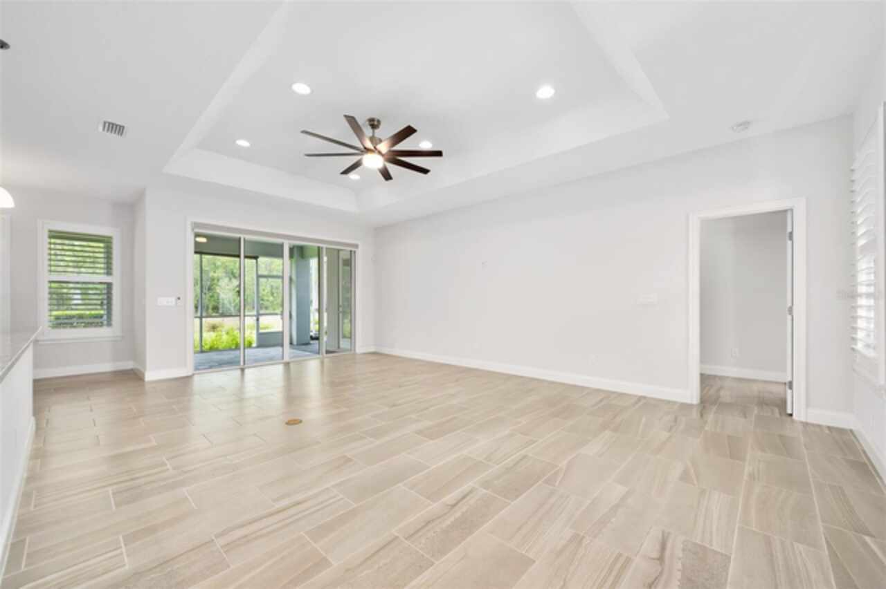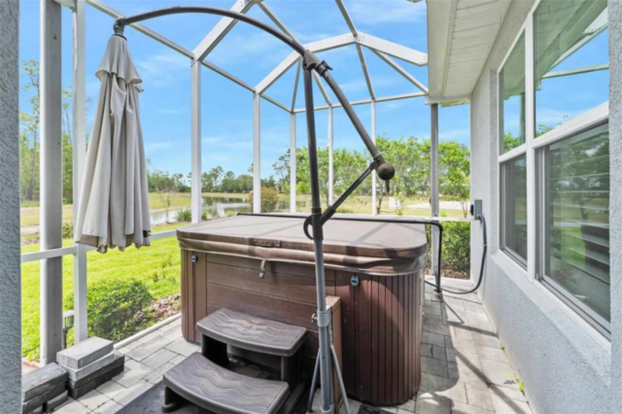 Enjoy peaceful water and wooded views in this beautifully maintained, move-in ready home! Barely lived in, this home looks and feels like a model home. Offering stunning day and nighttime curb appeal, this 1916 sf, 3 bedroom, 2 bath home in Estates of Verano/Venetian Bay is one of the few homes for sale in the neighborhood on a pond with an oversized lot. Across the pond is a conservation area that cannot be built on, adding to your rear privacy. The home is built with foam filled insulated blocks, adding to the energy efficiency and soundproofing. The 3-car garage is great for your third car, golf cart, or extra storage. This split floor plan offers privacy, with the primary suite set apart behind a door and guest rooms down a separate hallway. The primary bedroom features dual closets, a spacious bath with a large linen closet and shower, and a door leading to the porch. The kitchen offers soft-close mocha-colored cabinetry, a Flex fridge, double oven range, built-in drawer microwave, new dishwasher, beautiful backsplash, and an abundance of cabinets and countertop space. Ceramic tiled floors flow seamlessly throughout the home. Added touches include the Plantation shutters throughout, the remote controlled roll-down living room blind and the roll down blind on the screened-in paver porch. Built by Platinum Home Builders, this home features luxury touches throughout, outlets in the living room floor, an inside laundry area with backsplash around the utility sink, upper storage cabinets, and a storage closet. The garage features 8ft doors, epoxy floors, a hybrid water heater to save on energy, a water softener system and pull-down stairs to the lighted attic with insulation and plywood floor for storage above. The sellers installed a nighttime lighting package for nighttime curb appeal. Transferable termite bond. Reclaimed water for irrigation so no sulfur smell. The windows can endure winds up to 140 mph and have never leaked and the property has never flooded, even during the hurricanes. There are security cameras and flood lights in place. The home also features a surge protector to protect the appliances and electronics. This home has a great outdoor entertaining area with the large screened-in patio, the jacuzzi that is already in place, and plenty of room for a pool. There is an overflow parking area for residents next door, which is very convenient for your guests. Enjoy the outdoors with the walking trail located next to the overflow parking lot. It is in a great neighborhood with tennis, pickleball, walking and biking trails, Junior's park featuring a basketball court and a multipurpose recreational sports field, local shops, restaurants, a pool, and golf. *Pool and golf memberships available at an additional cost. This home is in a great location with an easy drive to shopping, medical, I-95, I-4, and the beach.