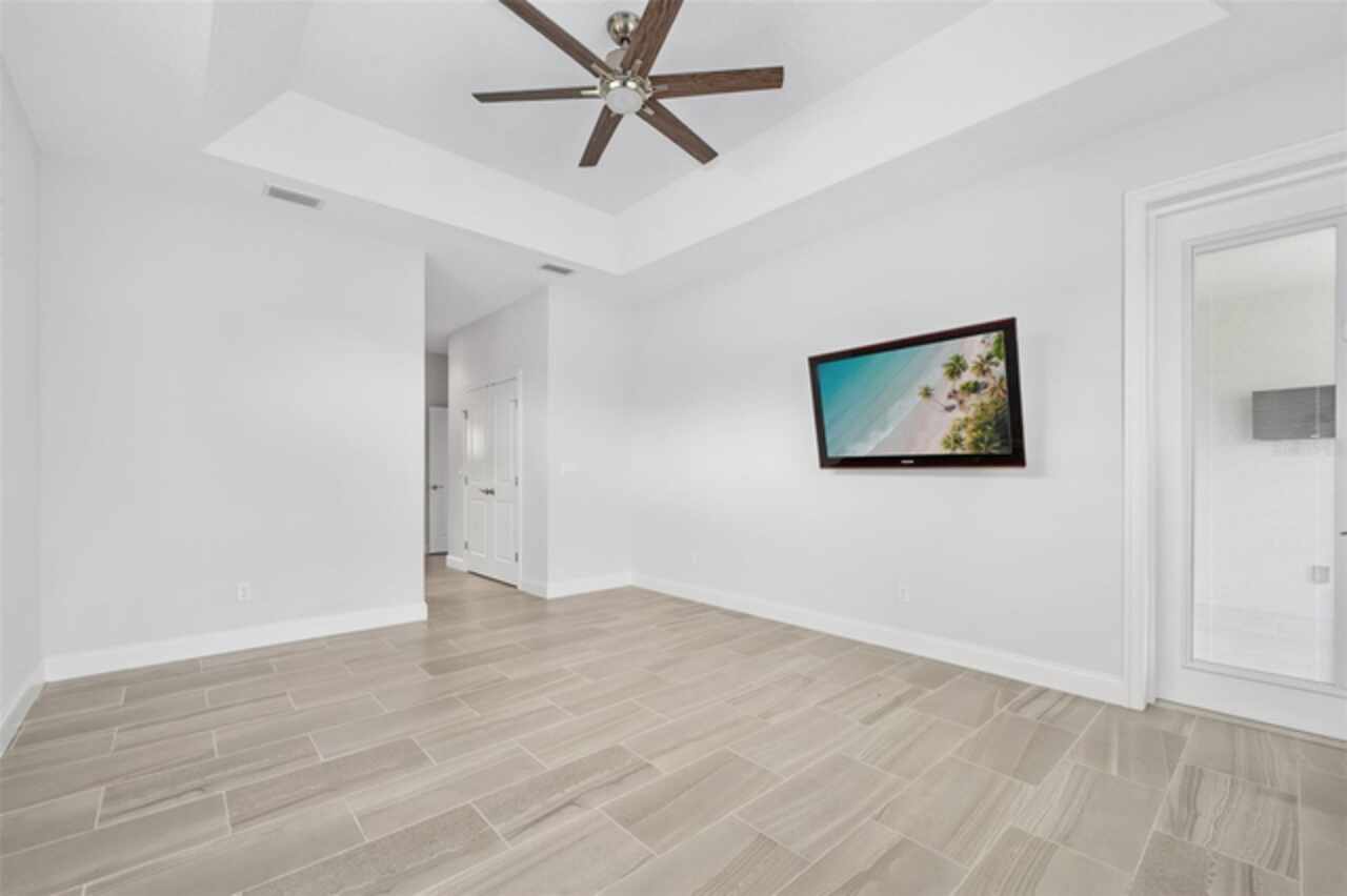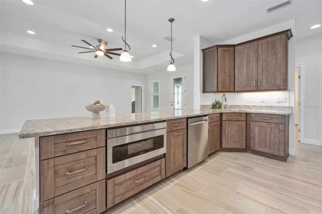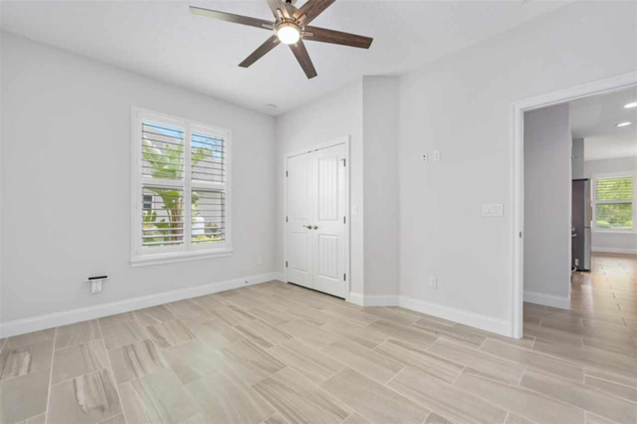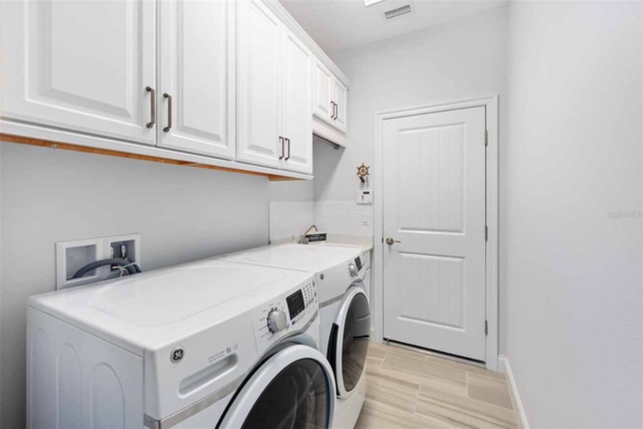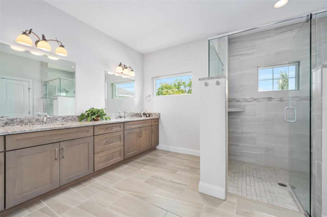 Enjoy peaceful water and wooded views in this beautifully maintained, move-in ready home! Barely lived in, this home looks and feels like a model home. Offering stunning day and nighttime curb appeal, this 1916 sf, 3 bedroom, 2 bath home in Estates of Verano/Venetian Bay is one of the few homes for sale in the neighborhood on a pond with an oversized lot. Across the pond is a conservation area that cannot be built on, adding to your rear privacy. The home is built with foam filled insulated blocks, adding to the energy efficiency and soundproofing. The 3-car garage is great for your third car, golf cart, or extra storage. This split floor plan offers privacy, with the primary suite set apart behind a door and guest rooms down a separate hallway. The primary bedroom features dual closets, a spacious bath with a large linen closet and shower, and a door leading to the porch. The kitchen offers soft-close mocha-colored cabinetry, a Flex fridge, double oven range, built-in drawer microwave, new dishwasher, beautiful backsplash, and an abundance of cabinets and countertop space. Ceramic tiled floors flow seamlessly throughout the home. Added touches include the Plantation shutters throughout, the remote controlled roll-down living room blind and the roll down blind on the screened-in paver porch. Built by Platinum Home Builders, this home features luxury touches throughout, outlets in the living room floor, an inside laundry area with backsplash around the utility sink, upper storage cabinets, and a storage closet. The garage features 8ft doors, epoxy floors, a hybrid water heater to save on energy, a water softener system and pull-down stairs to the lighted attic with insulation and plywood floor for storage above. The sellers installed a nighttime lighting package for nighttime curb appeal. Transferable termite bond. Reclaimed water for irrigation so no sulfur smell. The windows can endure winds up to 140 mph and have never leaked and the property has never flooded, even during the hurricanes. There are security cameras and flood lights in place. The home also features a surge protector to protect the appliances and electronics. This home has a great outdoor entertaining area with the large screened-in patio, the jacuzzi that is already in place, and plenty of room for a pool. There is an overflow parking area for residents next door, which is very convenient for your guests. Enjoy the outdoors with the walking trail located next to the overflow parking lot. It is in a great neighborhood with tennis, pickleball, walking and biking trails, Junior's park featuring a basketball court and a multipurpose recreational sports field, local shops, restaurants, a pool, and golf. *Pool and golf memberships available at an additional cost. This home is in a great location with an easy drive to shopping, medical, I-95, I-4, and the beach.