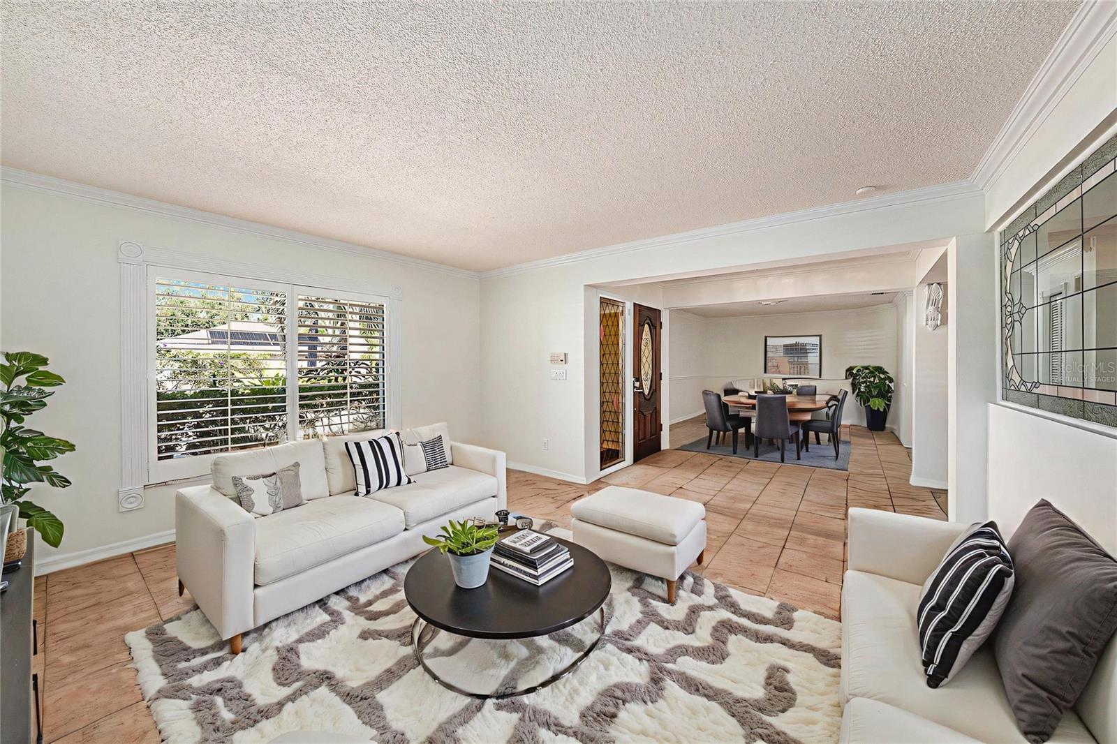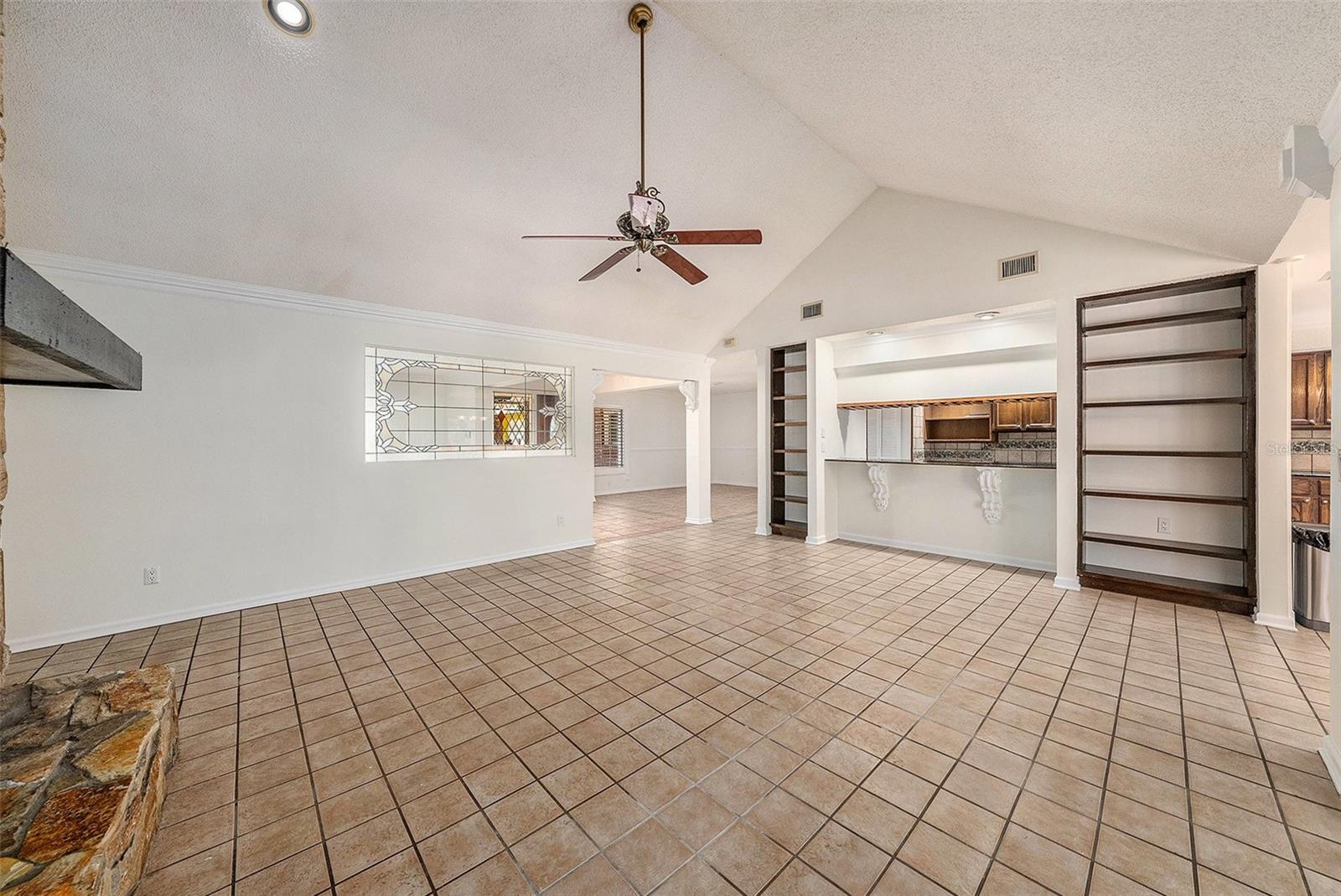 Cathedral Ceiling(s), Ceiling Fans(s), Crown Molding, Kitchen/Family Room Combo, Solid Surface Counters, Solid Wood Cabinets, Split Bedroom, Stone Counters, Thermostat, Vaulted Ceiling(s), Walk-In Closet(s), Window Treatments