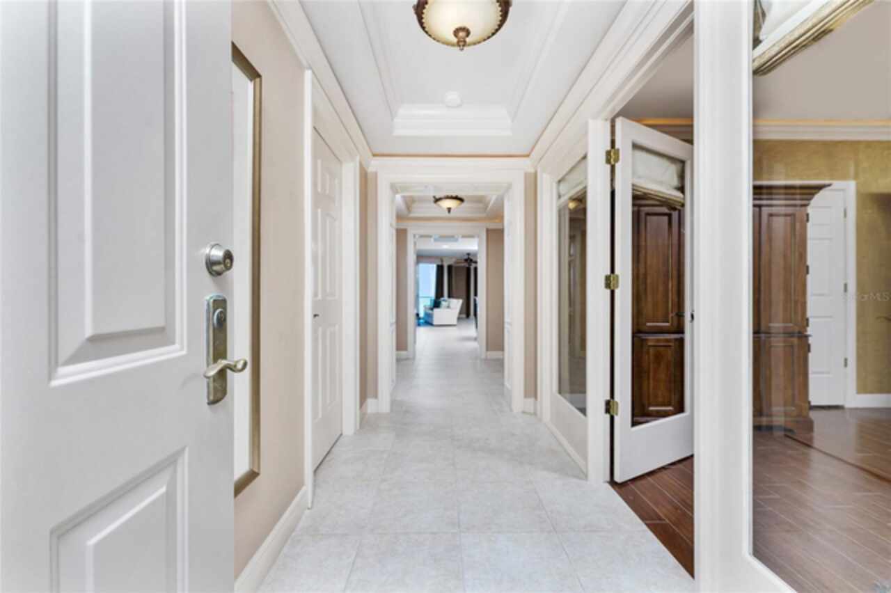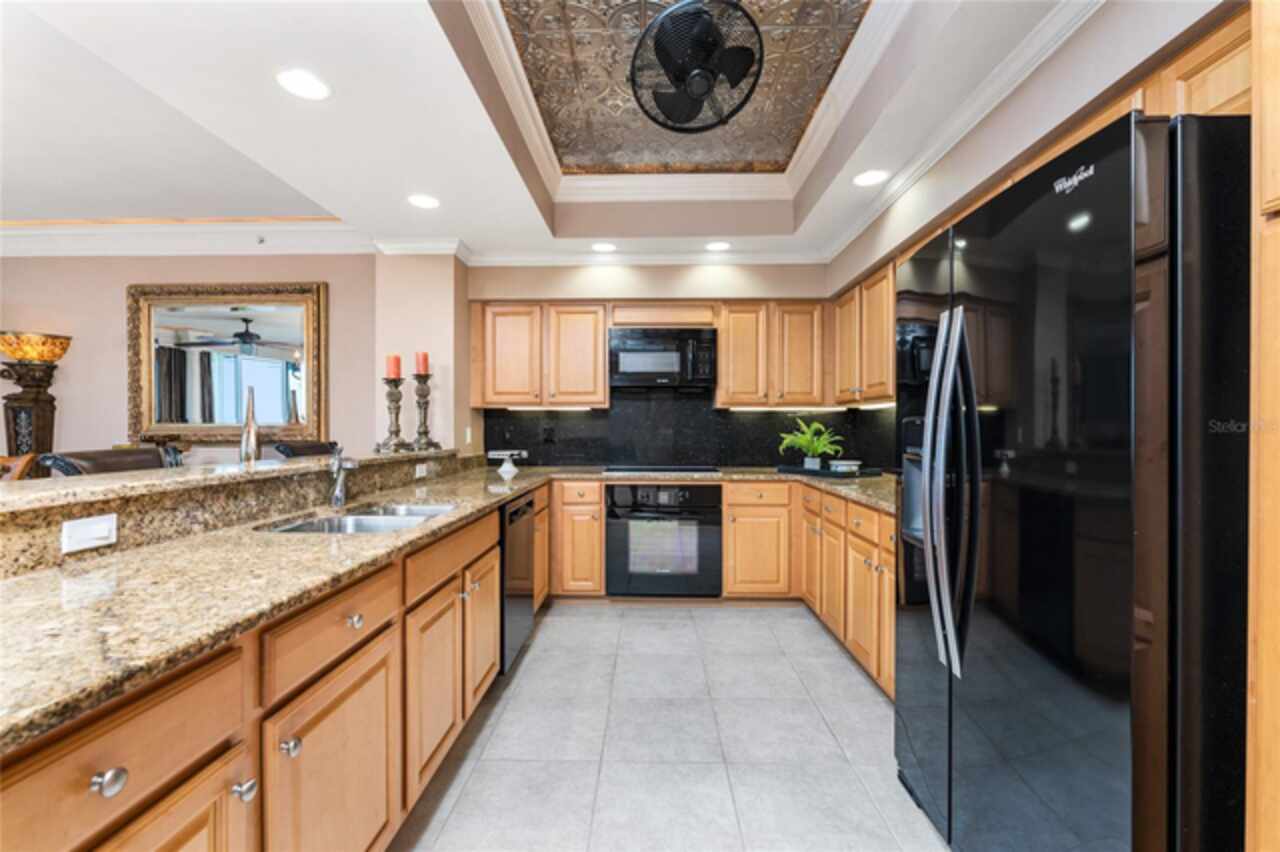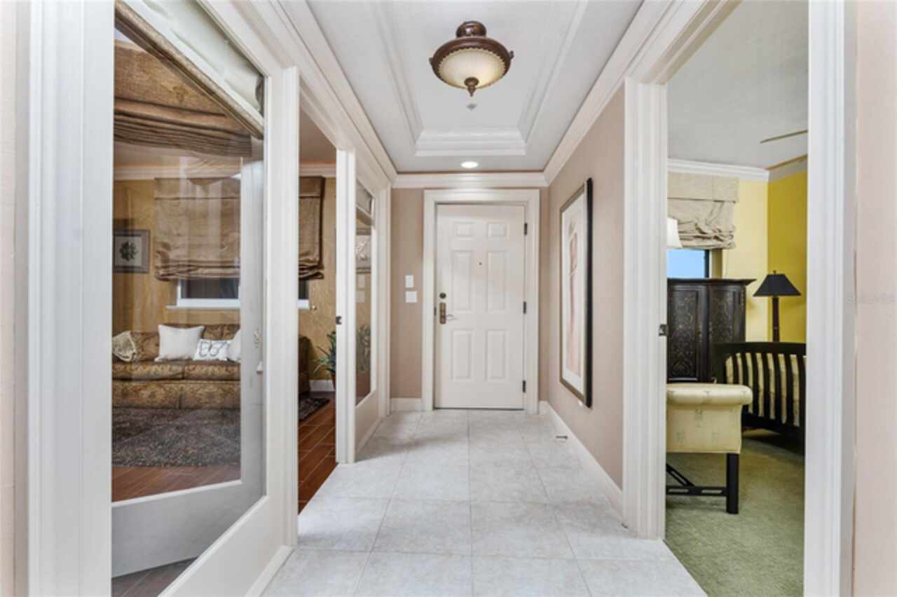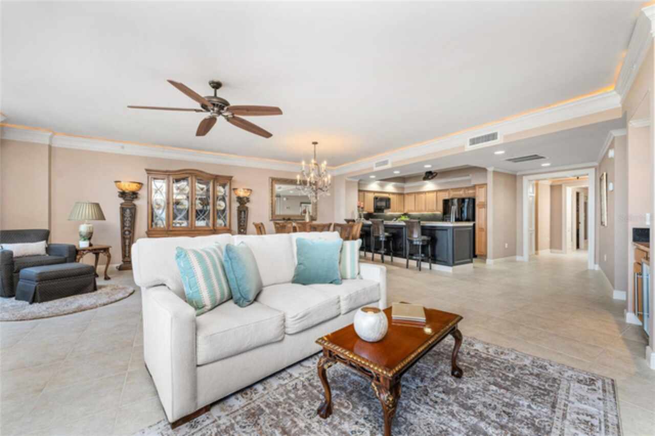 Come experience waterfront living at its finest in this upgraded Grande Isle condo, where million dollar views await! This renovated residence boasts high-end finishes, including extensive moldings and millwork that elevate the elegance of every room. Offered fully furnished and ready for you to move right in, this condo comes with a golf cart and TWO parking spaces! Step into the main living space and be mesmerized by the illuminated crown molding, accentuating the custom draperies and creating an ambiance of sophisticated charm. The incredible views of Charlotte Harbor through the impact sliding doors and windows are nothing short of breathtaking, offering a picturesque backdrop to your daily life. The tiled, screened lanai is the perfect spot to relax and soak in the fiery Florida sunsets, while watching the boats go by. The kitchen is a chef’s delight, featuring a handsome illuminated tin ceiling, granite countertops and a striking stone backsplash. The expansive cabinetry offers handy sliding shelves enhancing your storage capability. Entertaining is a breeze with a built-in granite-topped wet bar and an expansive breakfast bar opening the kitchen to the main living space. The primary suite is a true retreat, offering elegant furniture with incredible water views framed by rich draperies and illuminated moldings, new carpets, direct access to the lanai and a spacious walk-in closet. The ensuite bathroom is complete with dual sinks, a tiled shower, and a garden bath. Guests will feel right at home in the two additional bedrooms. One is an ensuite with a full bathroom, providing privacy and comfort. The other features a built-in Murphy bed and can easily double as an office, offering flexibility to suit your lifestyle needs. Third full bath has a shower converted to storage, which can be transformed back. Grande Isle is renowned for its resort-style amenities, ensuring every day feels like a vacation. Enjoy the Olympic-sized swimming pool, relax in the spa, or rejuvenate in the sauna and steam rooms. The community also offers a grilling area, fitness center, and grand salon, providing everything you need for an active and vibrant lifestyle. Exterior photos were taken pre-Ian.