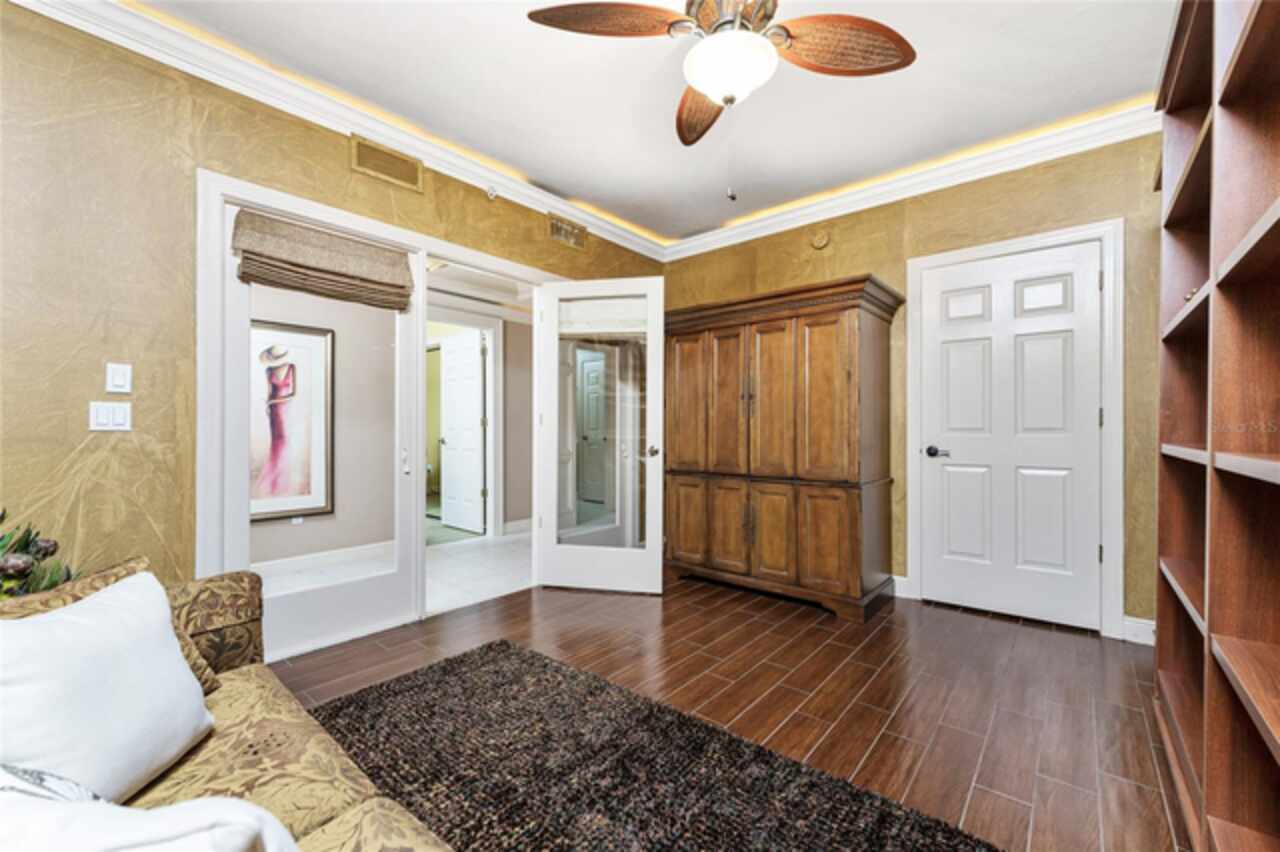 Built-in Features, Ceiling Fans(s), Crown Molding, High Ceilings, Living Room/Dining Room Combo, Open Floorplan, Primary Bedroom Main Floor, Solid Wood Cabinets, Split Bedroom, Stone Counters, Walk-In Closet(s), Wet Bar, Window Treatments