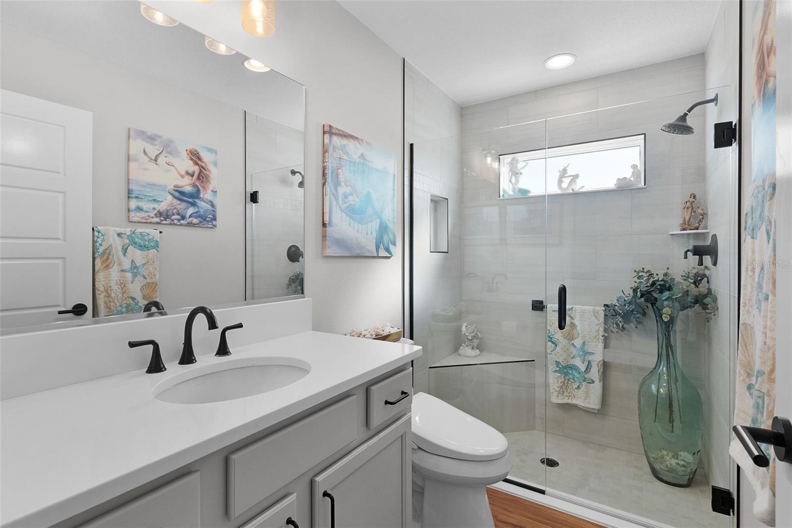 Presenting the exquisite Gardenia Designer model, nestled on a sought-after waterfront lot and featuring an array of luxurious upgrades. The exterior boasts a beautifully painted driveway and an inviting front screened porch. Step inside to discover newly installed wood plank vinal flooring that graces the living areas.At the heart of the home lies the gourmet kitchen, which showcases light gray cabinetry, quartz countertops, a full backsplash, under-cabinet lighting, premium stainless steel gas appliances, a generous pantry, and a charming breakfast nook perfect for casual dining. The formal dining room and living room, both adjacent to the kitchen, has ample space for entertaining guests.The open-concept living area transitions effortlessly into a glass-enclosed lanai, complete with a mini-split air conditioning system and roll-up shades, enhancing the home's livable space. This lanai, with its stunning water views, opens to an expanded birdcage that features a privacy screen adorned with a tropical scene, ideal for outdoor enjoyment.Designed with a split bedroom floor plan, this home provides a private wing for guests. The spacious primary bedroom offers picturesque water views, and the tray ceiling in the suite adds a touch of sophistication. His and her closets lead to a spa-like ensuite bathroom, equipped with a Roman shower and dual vanities. All windows throughout the home are fitted with plantation shutters.The laundry room, which offers additional storage, connects to a two-car garage that includes a golf cart garage. This garage features a pull-down ladder for attic access, and a magic lift to easily store heavy items. Please note that the parrot chandelier in the dining room and entryway will be replaced and do not convey.Enjoy the proximity to Deluna pool(a short walk away), and the Water Lilly and Everglades recreation centers, just minutes away. Deluna is a hidden gem neighborhood that provides easy access to all new amenities. By golf cart, it's a short 13-minute ride to Brownwood, 8 minutes to Publix, 20 minutes to Sawgrass, and approximately 25 minutes to the New Eastport.