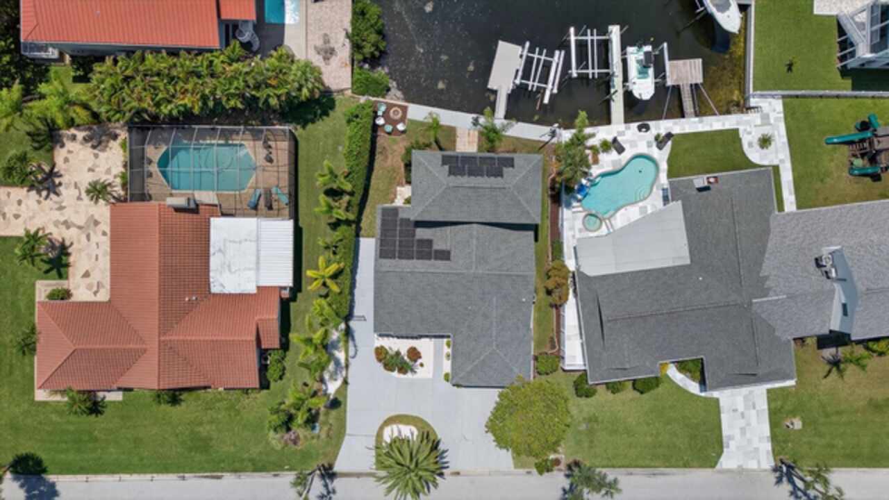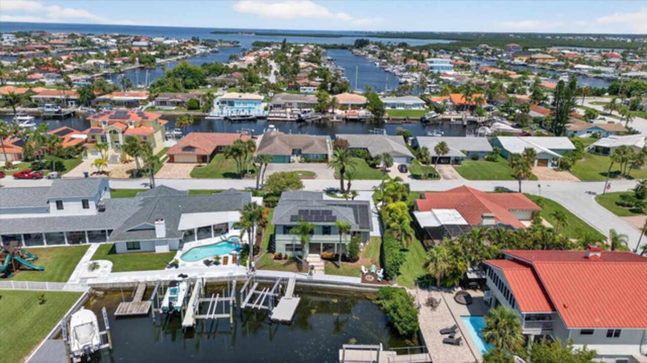 Motivated SELLER-NEW PRICE!! GREAT WATERFRONT DEEP WATER GULF ACCESS with BOAT LIFT home!! Welcome home to your own private retreat, a stunningly updated 3-bedroom, 3-bathroom Gulf Harbors’ home featuring a 10, 000 pound boat lift and quick, unobstructed access to the Gulf! With 2, 244 square feet of coastal charm, this 2 story home offers long water views from every corner. Set sail right from your backyard with deep-water Gulf access, the 10, 000 pound boat lift, and space for a pool. The home features two primary suites—one on the main level with a walk-in closet and en-suite, and a secluded second-floor suite with a private loft overlooking the tranquil waters. This gorgeous home was completely remodeled after the storm including new kitchen with custom cabinetry, stainless steel appliances, acres of countertop and eat-in kitchen area, all open to the expansive great room. Double sliders and a large picture window create a light and bright atmosphere to enhance the gorgeous water views. Downstairs, you’ll find 2 large bedrooms and 2 baths, and a spacious, sweeping great room. Upstairs you’ll find the second primary suite featuring a loft area with an awesome view that would make a perfect home office, yoga or sitting room, a large bedroom with walk-in closet and a spacious bathroom. Solar panels, installed in 2019, come with a 15-year transferable warranty and a 25-year lifespan, ensuring a light energy footprint and an electric bill as low as $30.00 a month. A new roof was installed in 2018. One hot water heater was replaced in 2022, and the second in 2025. The home is fully fenced with room on the side for boat or trailer parking. There is a yearly termite bond. Additional features include a Ring doorbell and a Nest thermostat. There are two AC units, installed in 2019 and 2021. This property is a boater's paradise with a 10, 000-pound boat lift installed in 2019 by Water Ventures, floating dock with composite Trex decking, and davits for your adventures. Whether you're entertaining in the expansive living spaces, retreating to one of the primary suites, basking in spectacular sunsets, or letting the dogs out for a run, this home captures ALL the essence of the Florida coastal lifestyle. Located in one of Pasco's finest waterfront communities on a quiet street ending in a cul-de-sac, this home also features underground utilities, and is a great walking neighborhood. Optional membership to your gated private beach club is available for just $200 a year, offering stunning sunsets nightly, and equipped with covered gazebos, picnic tables, bathrooms and grills to make your beach trip the best! The neighborhood is also golf cart-friendly and has a lot of events and parades to entertain you or involve you throughout the year. For boating enthusiasts two community ramps are available, with a key available for purchase through the Gulf Harbors Civic Association. The Association offers an OPTIONAL HOA membership for only $125 a year. This home has an existing ASSUMABLE FLOOD INSURANCE POLICY! Your boating adventures begin with a 4 minute run to the Gulf with access to the Intercoastal Waterway and Anclote barrier island, which has stunning lighthouse views and some of the best shelling around! Gulf Harbors is also conveniently close to downtown New Port Richey's top attractions. Less than 10 minutes to Sims Park or your favorite restaurants and shops. Find your slice of Paradise here at 3358 Seaway Drive today!