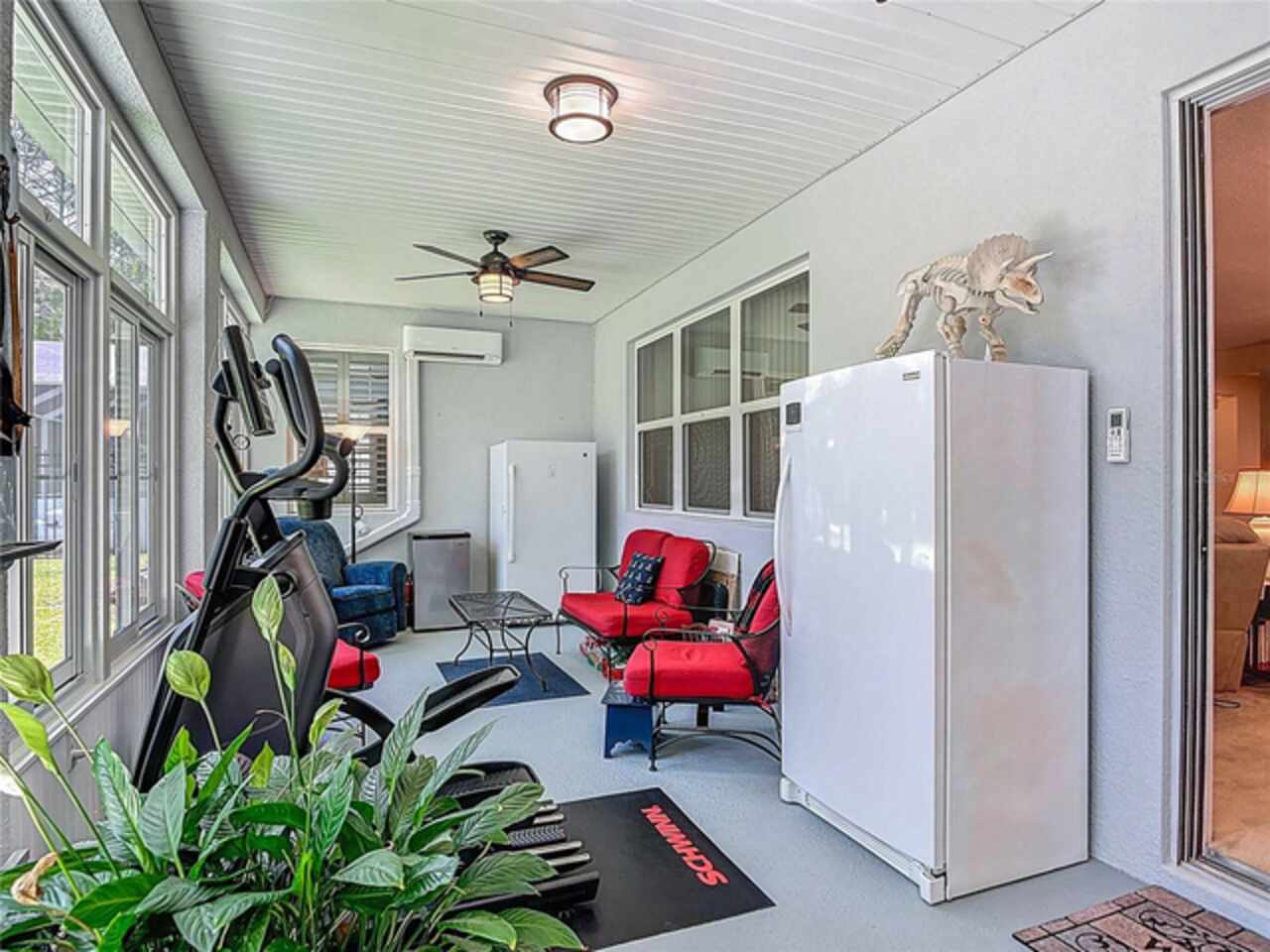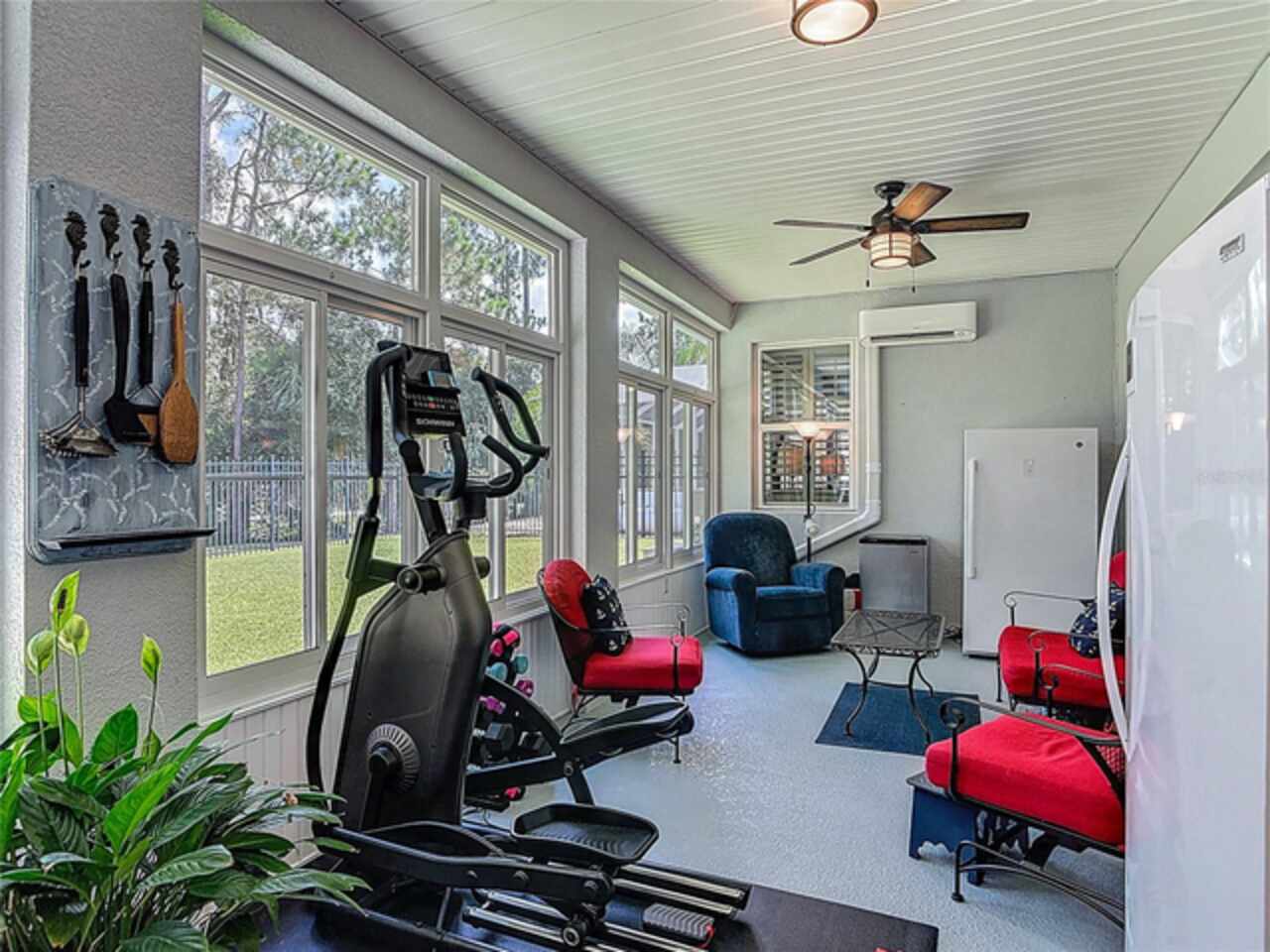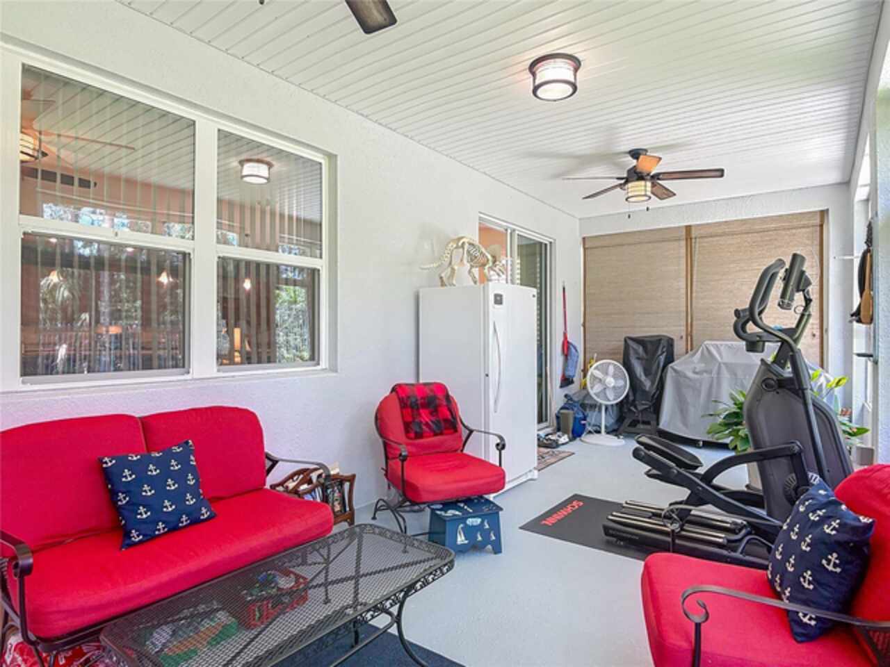 Beautifully appointed 3 bedroom, 2 bath home with large bonus room or 4th room located in the highly sought after community of Venetian Bay! This modern home built in 2016 offers a spacious open floor plan, showcasing a large kitchen equipped with an oversized kitchen island breakfast bar, abundant cabinetry, sleek granite countertops, and recessed lighting, perfect for culinary enthusiasts and entertaining. Seamlessly flow into the large living room and dining room combo creating an inviting space for gatherings or quiet evenings at home. Relax in the enclosed air-conditioned lanai, a serene retreat featuring a high-efficiency air conditioning split system for year-round comfort. Spacious master-bedroom and bathroom with a walk-in master closet. Wood shelving added to all closets, pantry and garage. Custom built wood cabinets in laundry room and garage. Garage features a second built-in air conditioning split system converting this space into a work shop, if desired. Additional upgrades include plantation shutters throughout the home, hurricane shutters, gutters, mature landscaping with edging stones added to all plant beds, 6-foot powder-coated aluminum fence with 2 access gates and much more. Property backs up to nature preserve. Venetian Bay offers access to restaurants, Spa, coffee shop, gym, pickleball courts, walking trails, and features a championship 18-hole golf course. Owner provided heated square footage includes living area plus heated lanai.