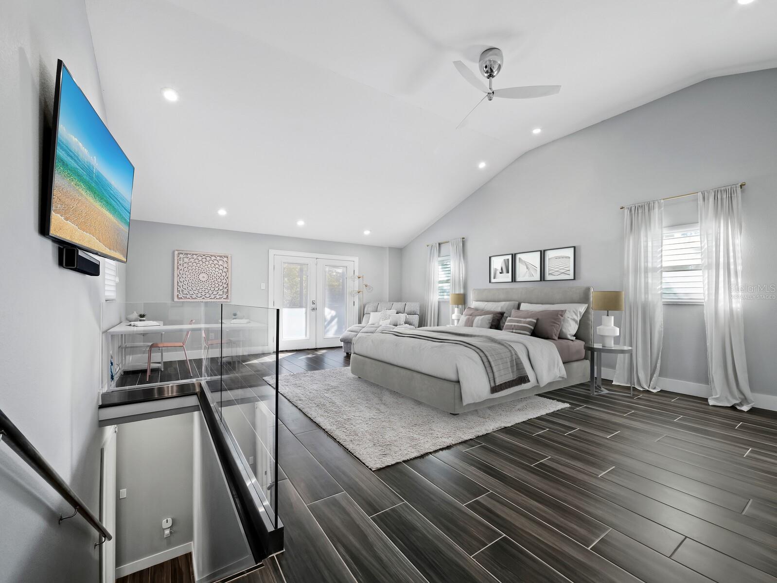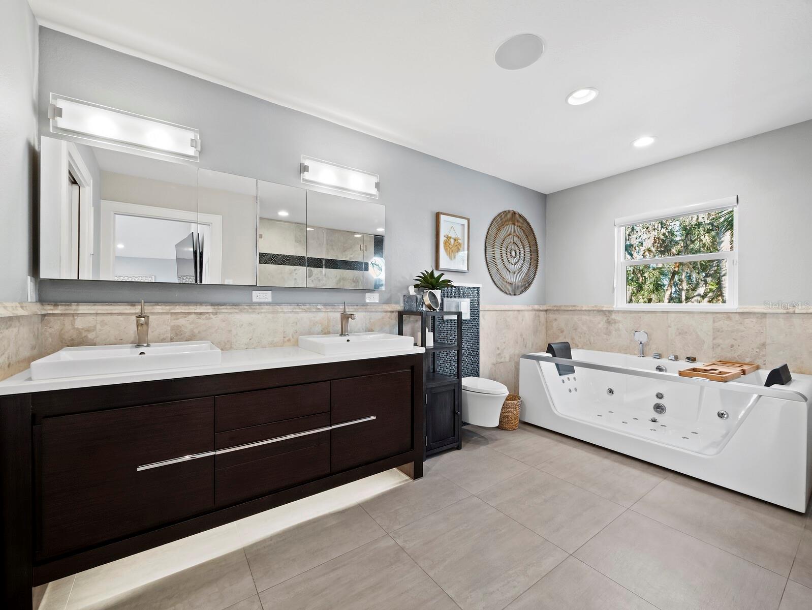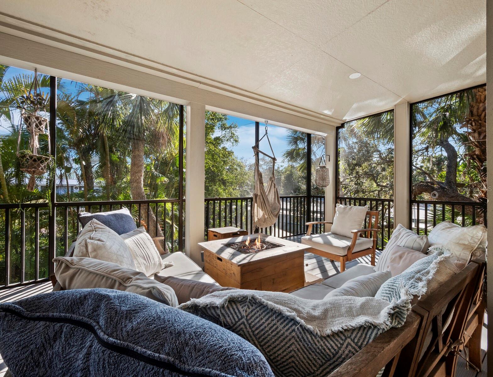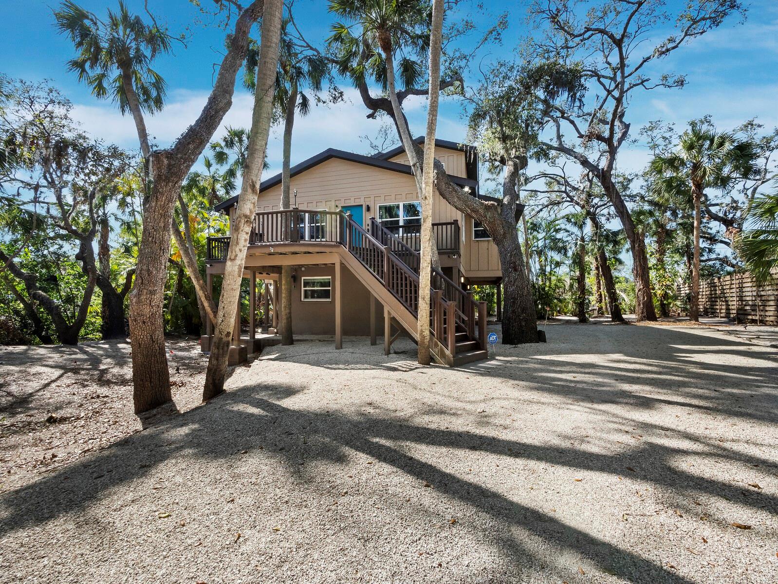 One or more photo(s) has been virtually staged. Have you been searching for a unique & ultra-special home nestled into the treetops? Look no further! Located in popular and convenient South Gate, this home is anything but typical! Elevated and surrounded by gorgeous nature, it has the feel of a luxurious tropical treehouse. From the large lot on a quiet & private street to the huge deck at the front door, you will appreciate the cool style as soon as you pull up…this property is truly one-of-a-kind. Phillippi Creek winds around the edge of the lot and you’ll often spot egrets, wood storks, blue heron, and even roseate spoonbills wading there, plus bald eagles and owls are known to nest nearby – it is a nature-lover’s paradise! Also, the creek is ideal for kayaking and you can launch right from the property and paddle all the way to in intercoastal if you like. The first floor features a spacious 2-car garage and loads of storage, with all living space located safely high above on the second and third stories. Soaring ceilings and a beautifully updated & chic kitchen define the main living area, with an elegant bath and the two nicely-sized bedrooms located on the same level. The property is offered furnished for your ultimate ease and convenience. You’ll adore the large screened deck with grill & gas fire pit too! Tucked into the treetops, this outdoor living space is infinitely enjoyable. Ascend to the main bedroom suite, where you will be absolutely wowed by the spaciousness and fantastic & airy volume ceilings! There is plenty of room for a sitting area, desk, or even a yoga or meditation spot so you can create a true retreat. The updated bath features a freestanding tub and shower with space for two, and the large walk-in closet has abundant room and is already fully customized with built-ins! The laundry is conveniently located upstairs in a second closet, and there is also a second fabulous screen porch to enjoy. Many smart home features make for easy living: Lutron lighting throughout, in-ceiling speakers, Arlo camera system, and an August automated front door lock. This entire home is perfectly updated and ready to enjoy and you will also be thrilled with the location: easily drive or bike to Siesta Key Beach or downtown, or hop on the nearby Legacy Trail! 10 minutes or less will get you most places, which is a rarity in Sarasota. Your tropical paradise treehouse awaits…come take a look at this unique and dazzling property today!