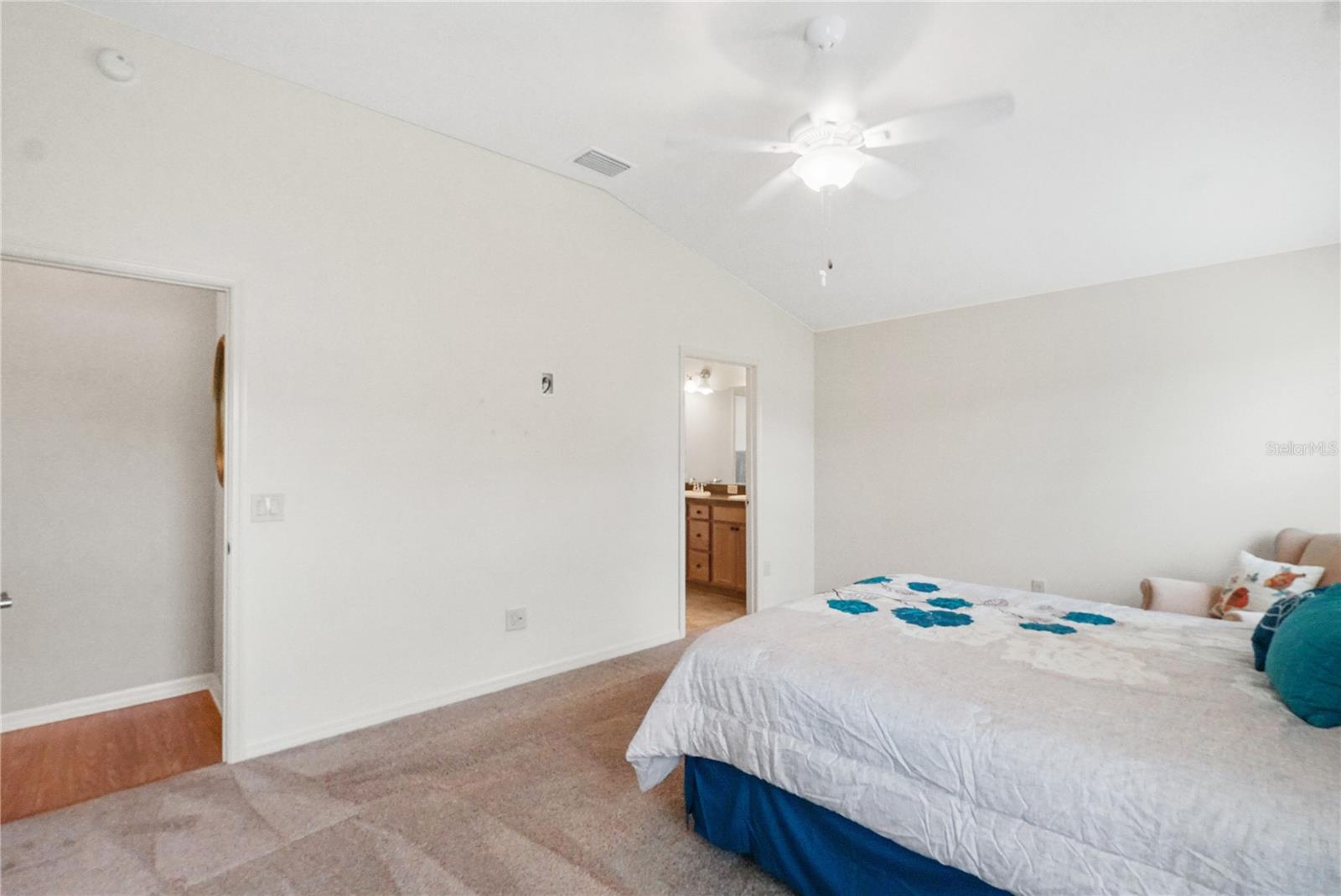 Cathedral Ceiling(s), Ceiling Fans(s), High Ceilings, Open Floorplan, Primary Bedroom Main Floor, Thermostat, Vaulted Ceiling(s)