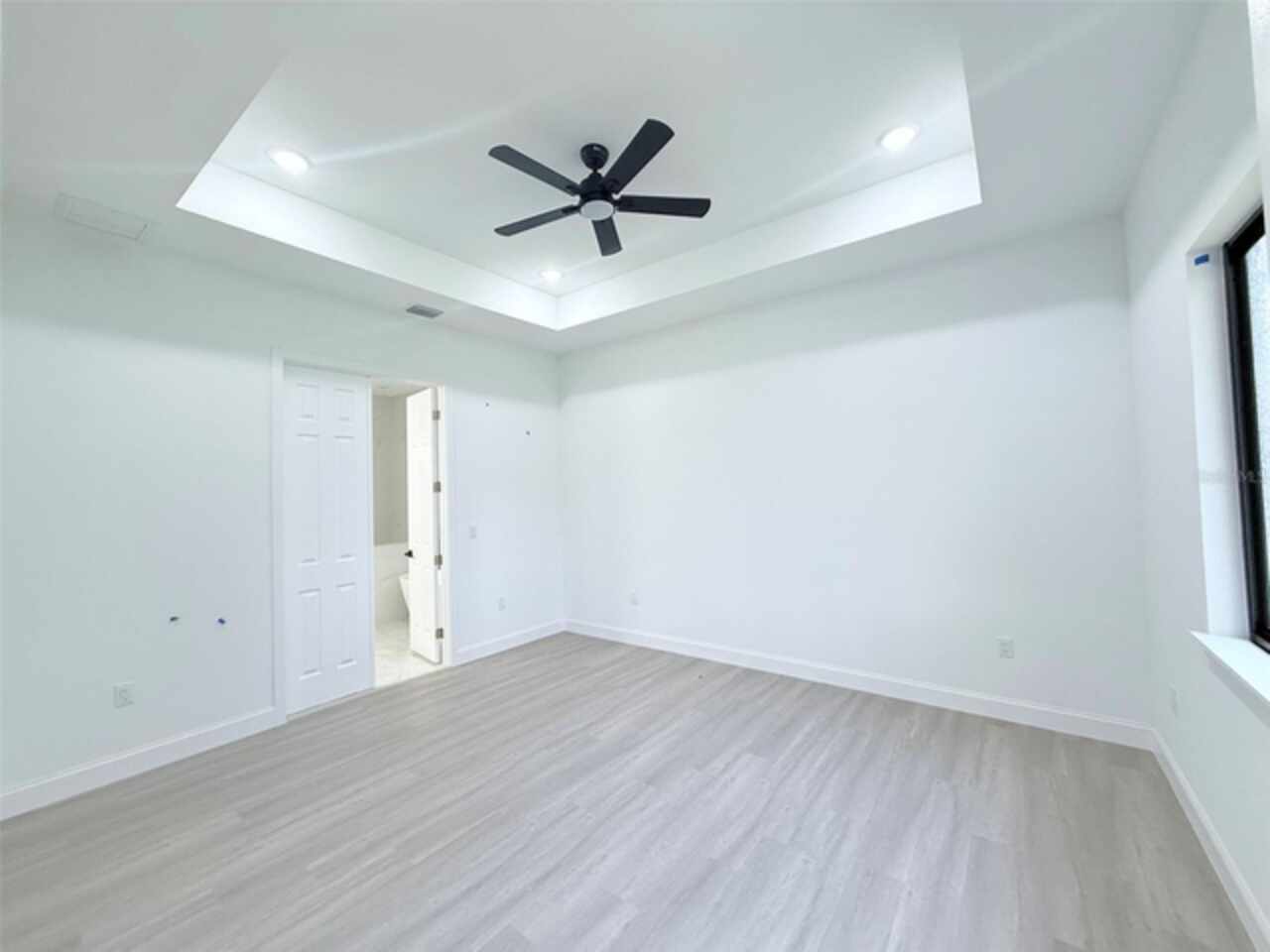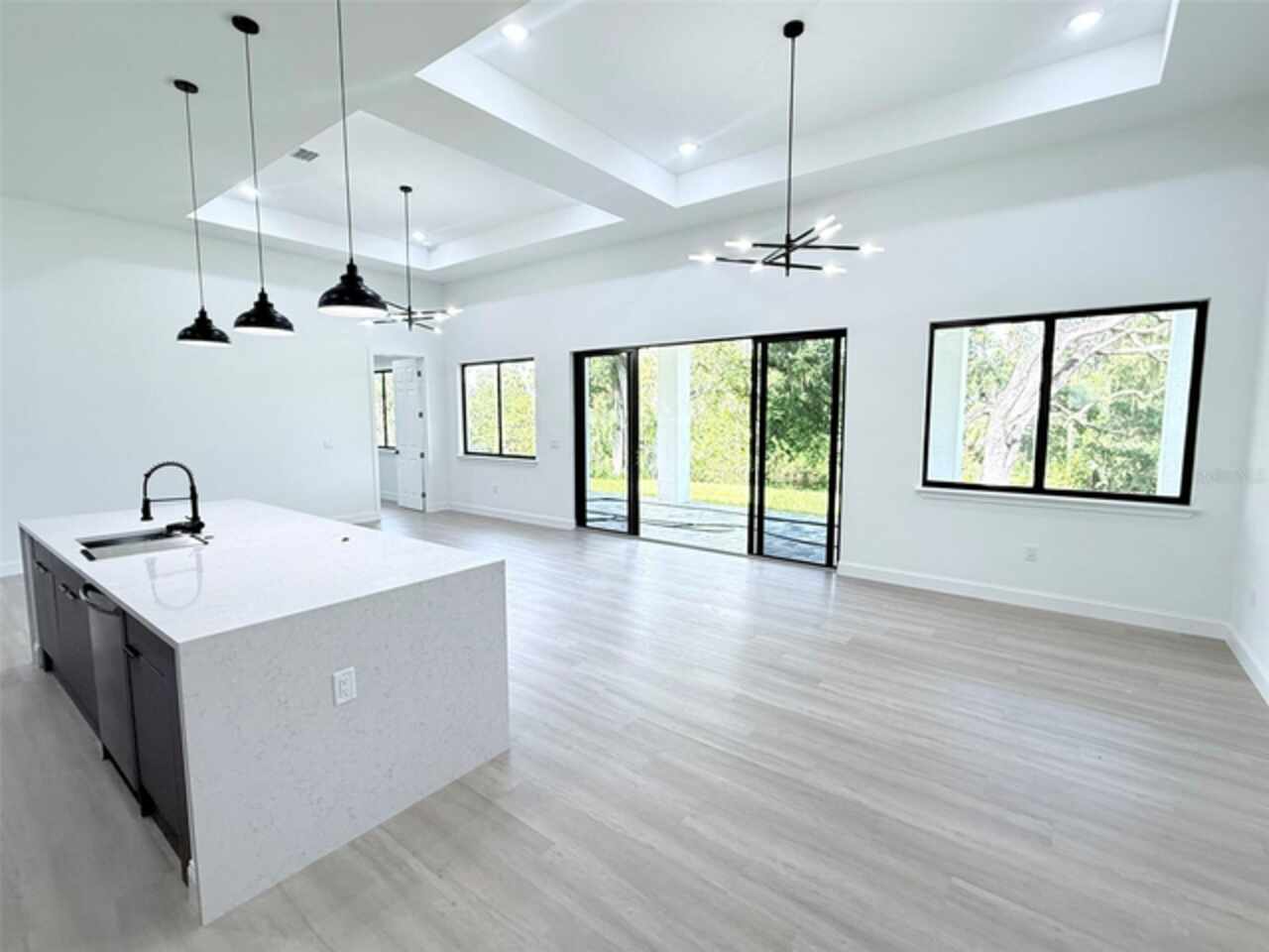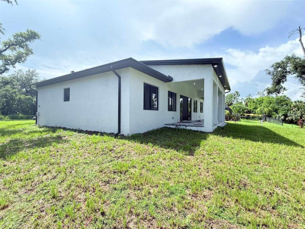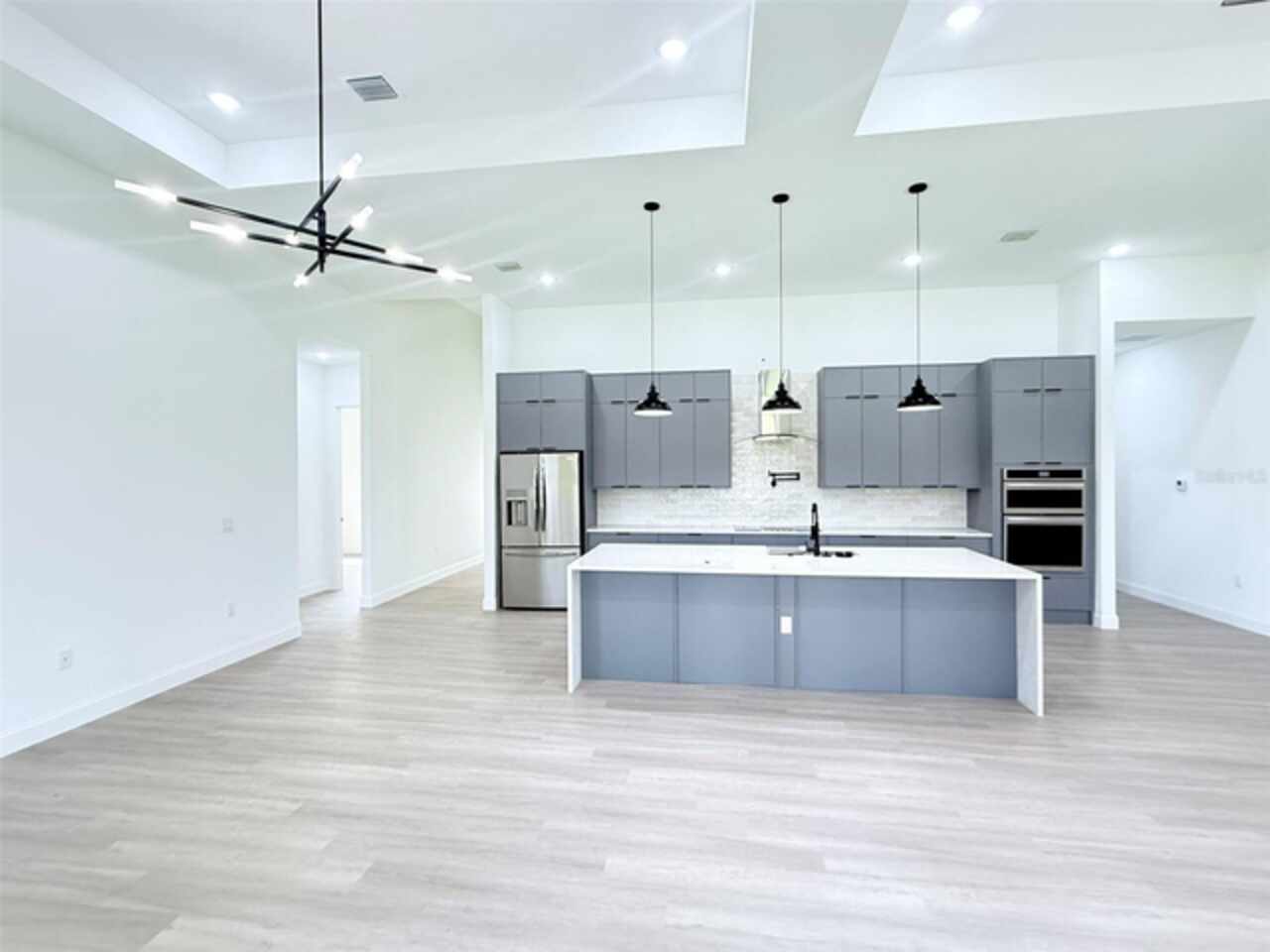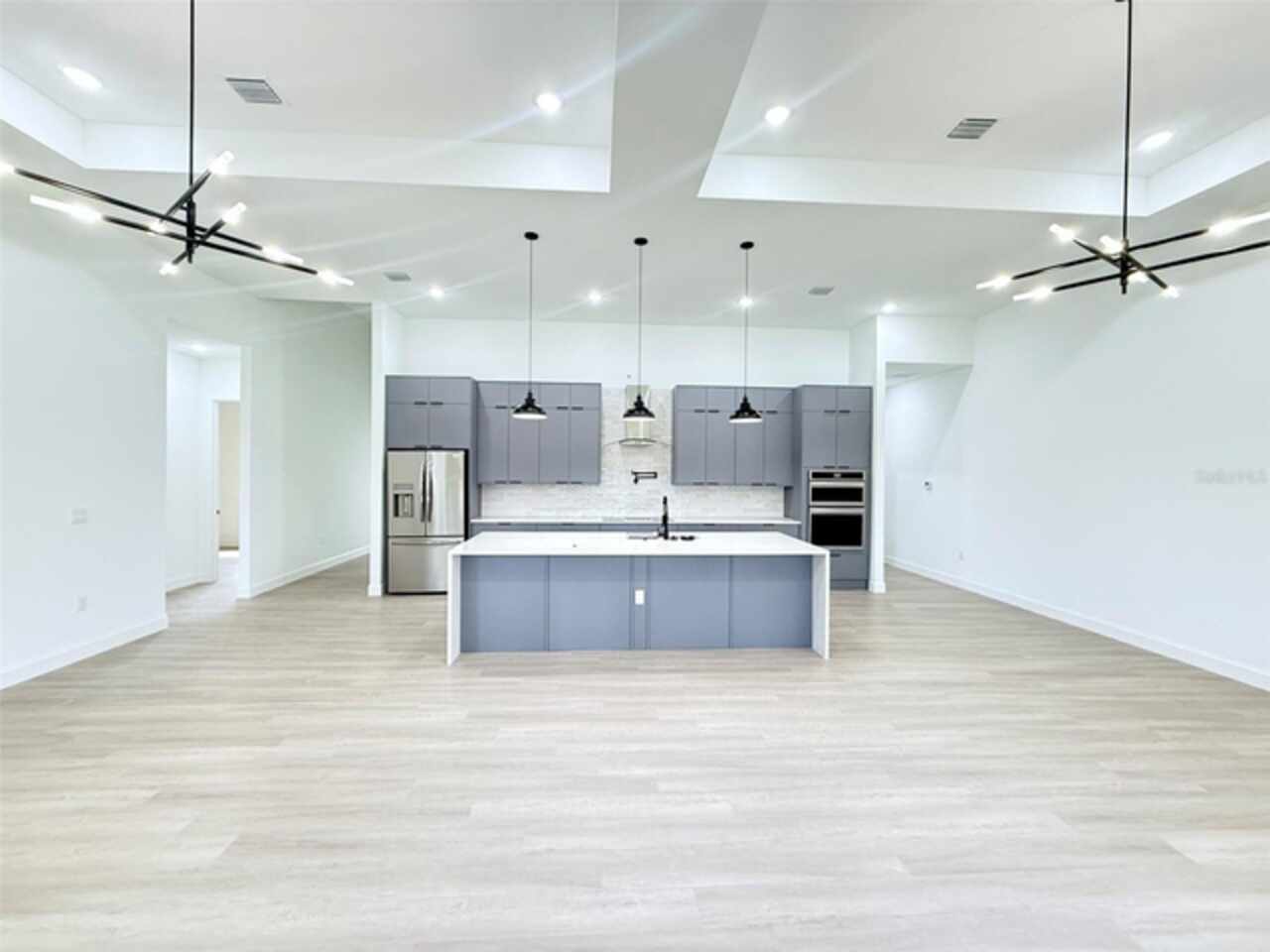 Introducing a newly constructed four-bedroom, three-bath residence on a freshwater canal in the heart of Port Charlotte. Spanning 2, 153 square feet of living space and totaling 3, 099 square feet, this home combines modern architecture with function and refined detail. The open-concept floor plan seamlessly integrates the living and dining areas, creating an inviting space for daily living and entertaining. A gourmet kitchen anchors the interior, featuring state-of-the-art stainless steel appliances and luxury finishes. High-quality vinyl flooring runs throughout, complementing soaring 10- 12- and 13-foot ceilings that enhance the home's scale and light. The primary suite is a private retreat with a spa-style bath including a soaking tub, walk-in shower, double vanity and an oversized walk-in closet. Additional features include a laundry room with sink and pre-designed layout for future home enhancements. Thoughtful exterior design includes modern elevation details, sliding windows, a metal and glass front door, soffit lighting in the rear area and strategically placed gutters. The home sits on a site ready for a pool and has summer kitchen connections ready and water softener installed. Built in 2025 with an emphasis on craftsmanship and contemporary design, this property presents a rare opportunity to own a new construction home in an established area of Port Charlotte.