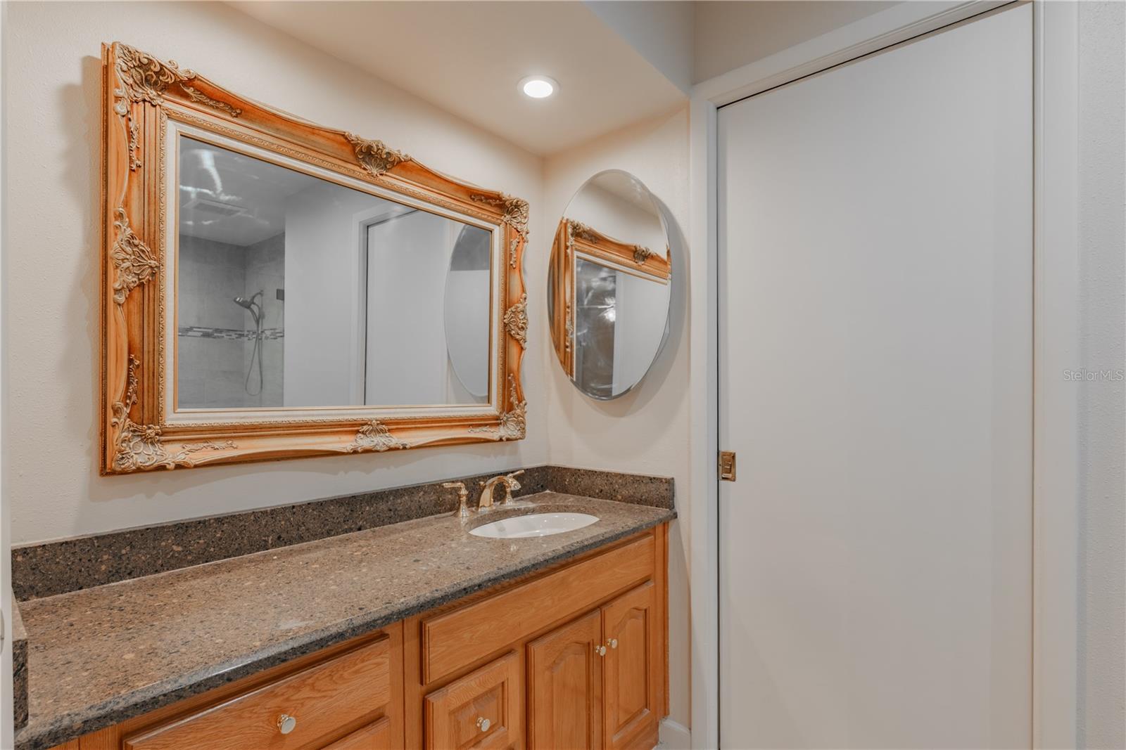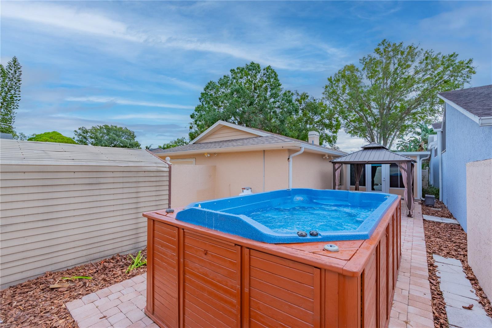 One or more photo(s) has been virtually staged. Located on a corner lot with mature landscaping in the desirable community of Lago Vista, this meticulously maintained home offers a spacious layout and a long list of major updates. Enjoy peace of mind with hurricane-impact windows (2018), a 2014 roof & hot water heater, updated AC system (2017), and additional attic insulation for added energy efficiency. A permitted 2008 addition expands the home with a generous 12x25 family room, perfect for entertaining or everyday living. The renovated kitchen features custom pull-out shelving, quality cabinetry, and stainless appliances, including a 2024 KitchenAid induction range with air fry and steam functions. The primary bathroom has been tastefully updated, offering a clean, modern feel with a walk-in shower. Outdoor living shines with a paver patio and swim spa, ideal for year-round enjoyment. The oversized 14x25 rear-load garage provides excellent storage, workspace, and additional parking, complemented by a paver driveway. This home combines updates, efficiency & flexible living spaces all in a well established community tucked among beautiful mature trees.