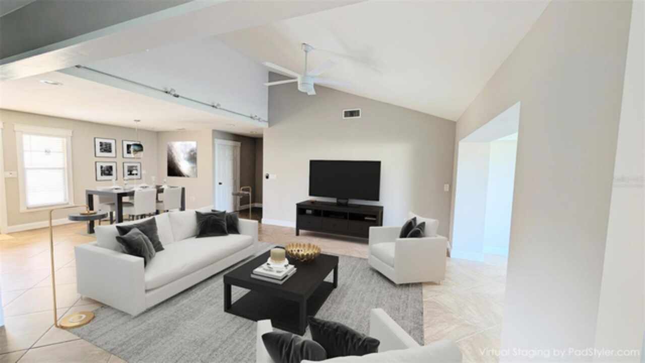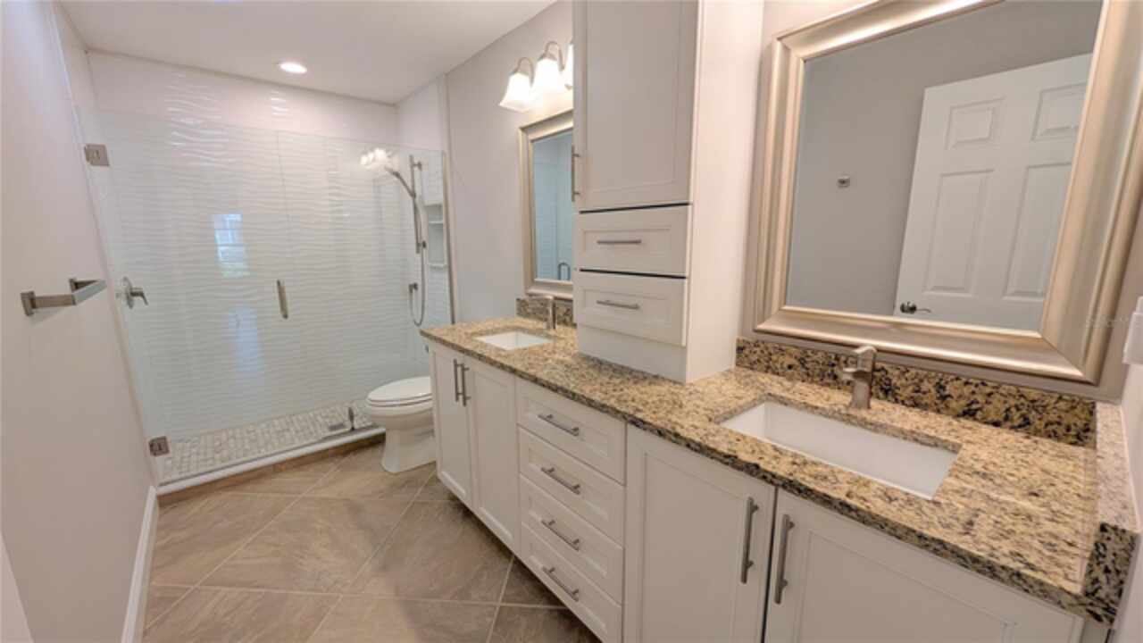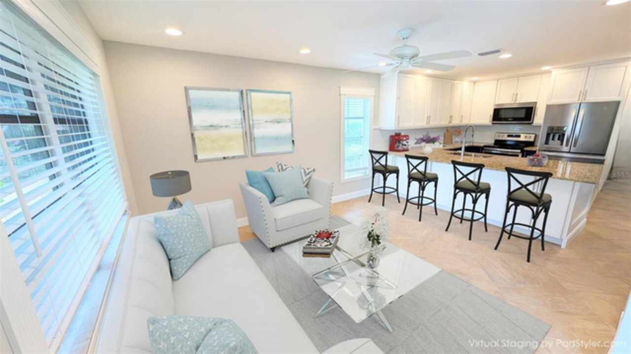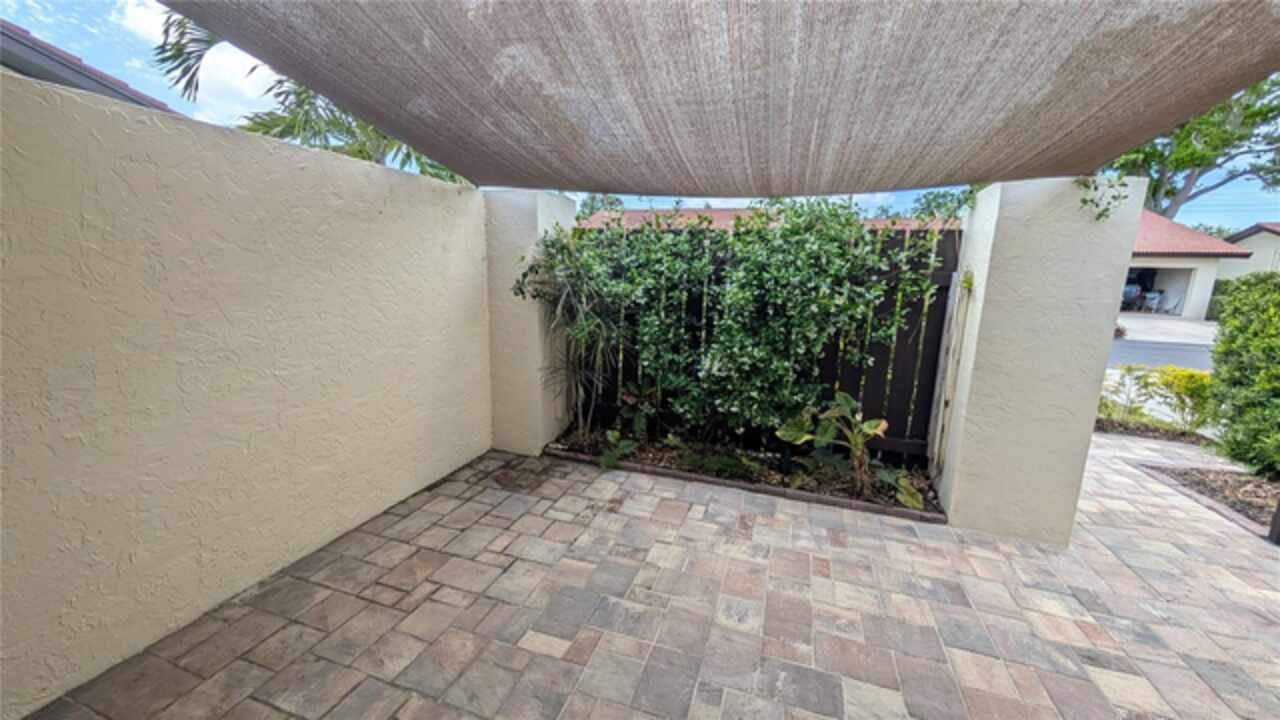 One or more photo(s) has been virtually staged. Beautifully RENOVATED villa situated on a dead-end street in the heart of Sarasota! This 55+ maintenance free community has it all! Enter through a private gate that leads to an open patio lined with brick pavers and sunshade. The open floor plan offers upgrades throughout including NEW plumbing through attic, tankless water heater, Bluetooth speaker in the master bath and more. The vaulted ceilings, expansive living dining areas, open kitchen and Florida room is a great use of space and feels like more than 1498 square feet! Custom kitchen has two toned cabinets, upgraded stainless steel appliances and extended granite countertops. Additional cabinets under the counter provide GREAT storage! Eat-in kitchen has plenty of room for stools, table and chairs. The enclosed Florida room leads to a screened garden and green landscaped views. Master bedroom has French doors, double custom closets leading to the master bath which boasts walk in shower and dual sinks. Inside laundry leads to 2 car garage with painted floors, outside storage cabinets with drawers, hurricane shutters and new garage door. The spilt plan has a guest bedroom with access to front patio and bath with tub shower combination. Resort style amenities steps away including the heated pool, sauna, clubhouse, fitness center, billiards room, library, pickleball courts and more. Enjoy the privacy of your Villa or the social events at Village Plaza. Minutes to Siesta Beach, Downtown, shopping and some of Sarasota’s finest restaurants!