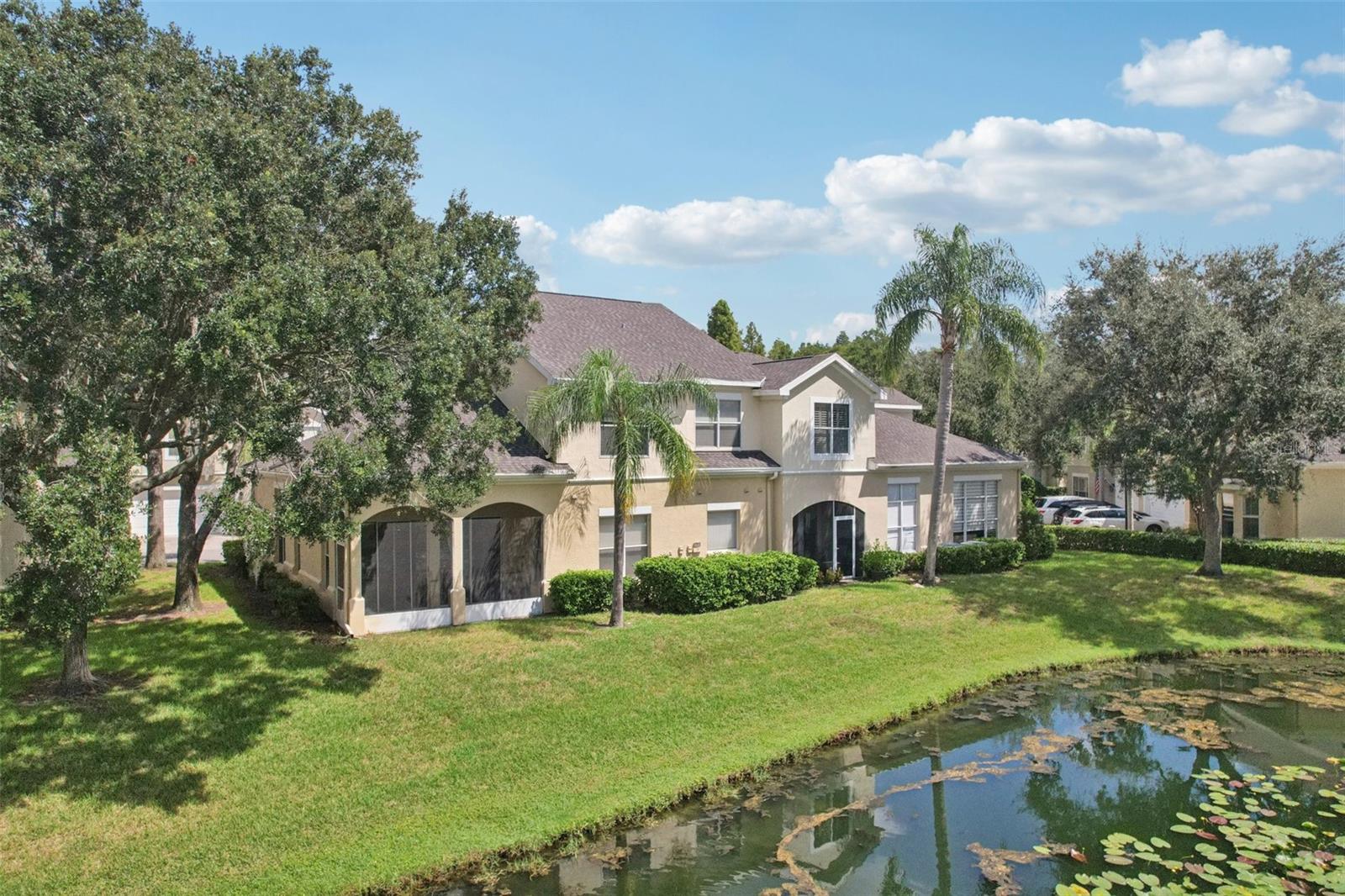 SAVE 6 MONTHS OF HOA FEES, and enjoy a TRIPLE WATER VIEW across pond, pool and Lake Ellen, from this townhome in Carrollwood’s premier GATED townhome community, Lakeside Preserve! With no backdoor neighbors, this home offers PRIVACY and everything else you are looking for – with very little exterior maintenance and no flood insurance! Open the front door to soaring ceilings, rich architectural features and multiple windows streaming in the light! Expansive great room with breathtaking 2-story ceilings offers open plan that combines ample room for large formal - or informal - dining and also generous family gathering spaces. This home was made for entertaining! Spacious kitchen features a dining nook with a bay window area for a breakfast table, solid wood cabinets (with pull-out shelves and a corner lazy suzan), and granite counters. Stay engaged with guests in the great room while you are cooking and share a taste of your creations with them through the breakfast bar. Great room communicates with the loft upstairs also. Screened back porch is perfect for cool Florida nights and offers access to the pond and other amenities beyond. PRIMARY BEDROOM SUITE DOWNSTAIRS with a double-door entry is truly a self-contained retreat! It consists of a generous bedroom with tasteful built-in glass shelving, views of the pond, a large walk-in closet with a top-line closet system packed with features like shoe shelves, pull-out rods and more. Finishing out the primary suite is an amazingly large primary bathroom with two lavatories separated by a dressing desk, a garden tub topped by a window looking out onto the pond, a separate large shower with two shower heads, and a separate toilet room with a large linen closet. Laundry room is tucked away just outside the primary suite and offers entry into the 2-car garage. You can leave your suite and leave the house without disturbing others! Upstairs, a large open area also offers architectural detail, storage and 2 separate fun spaces, the large loft space, which overlooks the pond, pool and lake (which could be enclosed as a 4th bedroom), and a second space perfect for piano practice, study or other activities. Each of the two guest bedrooms upstairs is big and has its own walk-in closet. Jack-and-jill bathroom connects the upstairs bedrooms and has a shared tub and toilet area. However, each bedroom has its own linen closet and separate vanity/sink area which can be closed off for privacy. Two AC units each with UV light allow for efficient cooling. Located in the heart of Carrollwood and close to all of its most vibrant shopping areas and popular dining establishments. Just minutes from Tampa's most popular sports venues, University of South Florida, award-winning Tampa International Airport, and a short drive to experience Tampa Bay's world-famous Gulf Coast beaches! If you seek an exceptional home in the perfect location, you just found it! Owner will credit buyer with 6 months of HOA fees at closing with an agreeable purchase price!! Sold As-Is.