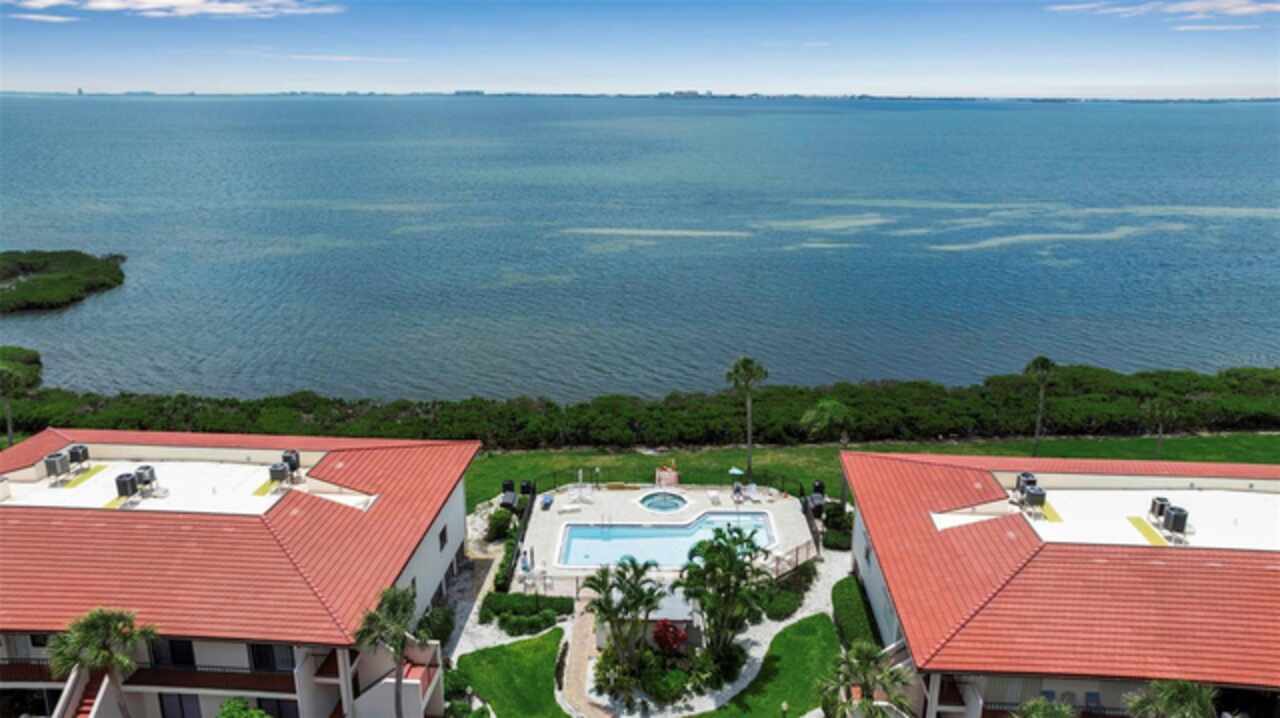Sunsets galore? Check. Beautiful views from almost every room? Check. Well-Constructed with the iconic Florida Red Tile Roofs? Check. Come make this Beautiful 3 Bedroom/2 Bath condo on Sarasota Bay with water views as far as the eye can see your Southern or Full-time home. Roof installed and paid for end of 2024; Hurricane Impact windows and sliders give the feel of security and comfort. Come see this 3 Bedroom, 2 Bathroom end unit condo with full view of the Sarasota Bay. This is a unique opportunity to embrace the Florida Lifestyle and enjoy the beauty of the Gulf Coast and beaches. Leave the hustle and bustle behind and enjoy the warm tropical weather and the botanical community of Wild Oak Bay with all the conveniences so close to home. From the moment you walk in the door from your private covered porch you have the preferred southwestern exposure with water views from almost any room in the home. Plantation shutters and roll down blinds allow you to moderate the amount of sun shining through your windows. The kitchen includes updated cabinets, solid surface countertops and newer stainless-steel appliances. This desirable end unit has additional windows that extend your water view and brings in additional natural lighting. The two bathrooms have also been nicely updated. You get all of this splendor while being nestled in the most enchanting Caribbean-like setting. Age and pet friendly in ideal neighborhood for walking, biking, bird watching, fishing or Kayak located just steps from the bay. The IMG Semi-private Golf and Country is conveniently located right down the street and its approximately 8 miles to the Gulf Beaches, under 20 minutes to SRQ, cultural arts, shopping and the restaurants of downtown Sarasota. This could be yours so just imagine sitting in the community pool, hot tub or your private balcony and taking in the mesmerizing views of the famous west coast sunsets and the twinkling of the Sarasota and Long Boat Key Skyline. Walking distance to the semi-private IMG Country Club which allows golfing and dining to non-members.