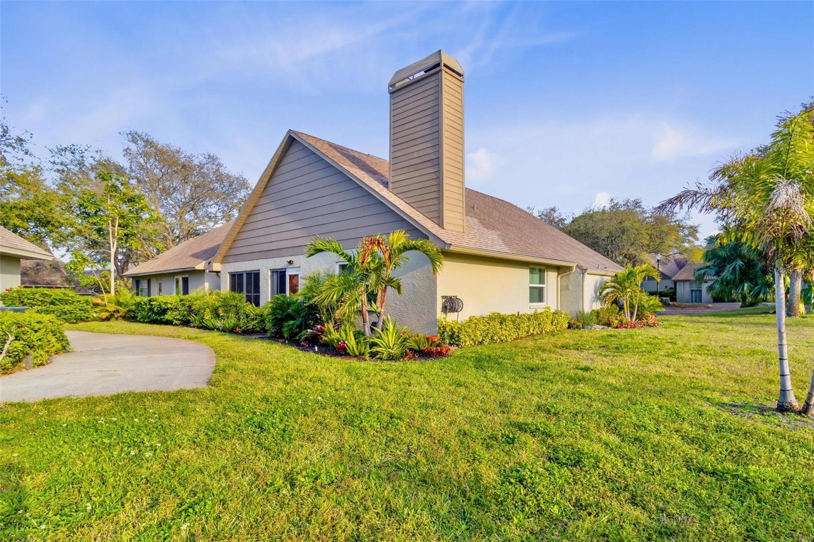 Discover this exceptional turnkey villa style condo, situated in a NON-FLOOD ZONE and providing access to a community swimming pool, offering both privacy and convenience. This inviting 3 bedroom, 2 bath corner unit villa features a 1 car garage with newly paved, two private parking spaces, and a sidewalk. The property boasts desirable upgrades, including renovated bathrooms, upgraded flooring throughout, a new water heater, and a new AC system. The kitchen is equipped with stainless steel appliances, a brand-new refrigerator, and stone countertops, complemented by an adjacent cozy eating area that connects with beautiful french doors to a large, sunlit screened-in Florida room. The impeccable landscaping enhances the curb appeal and provides a serene outdoor space. Don't miss this fantastic opportunity in an unbeatable location, just a few miles from Countryside Mall, shopping, dining, and minutes to Downtown Dunedin, and Honeymoon Island state park and beaches.