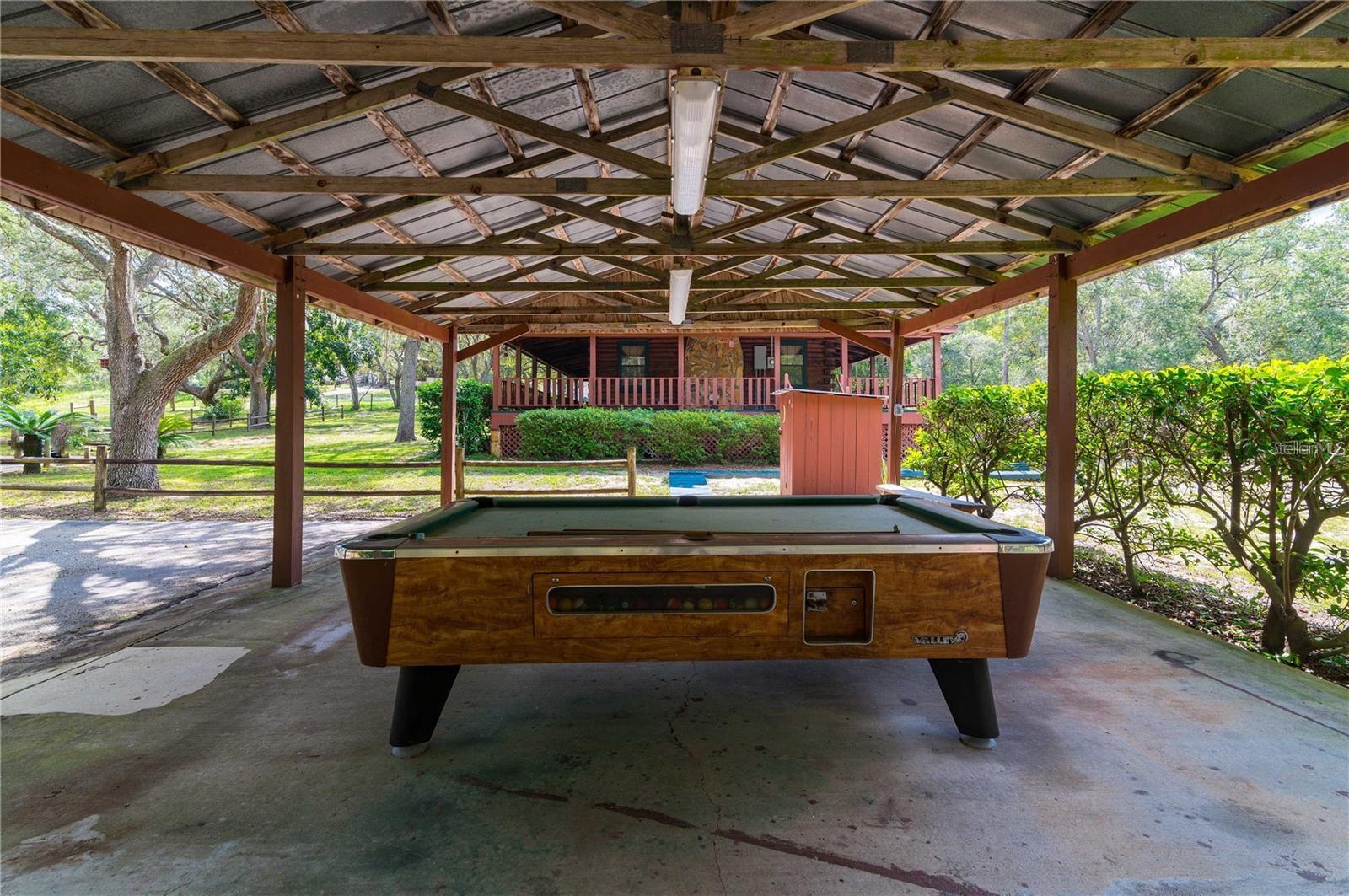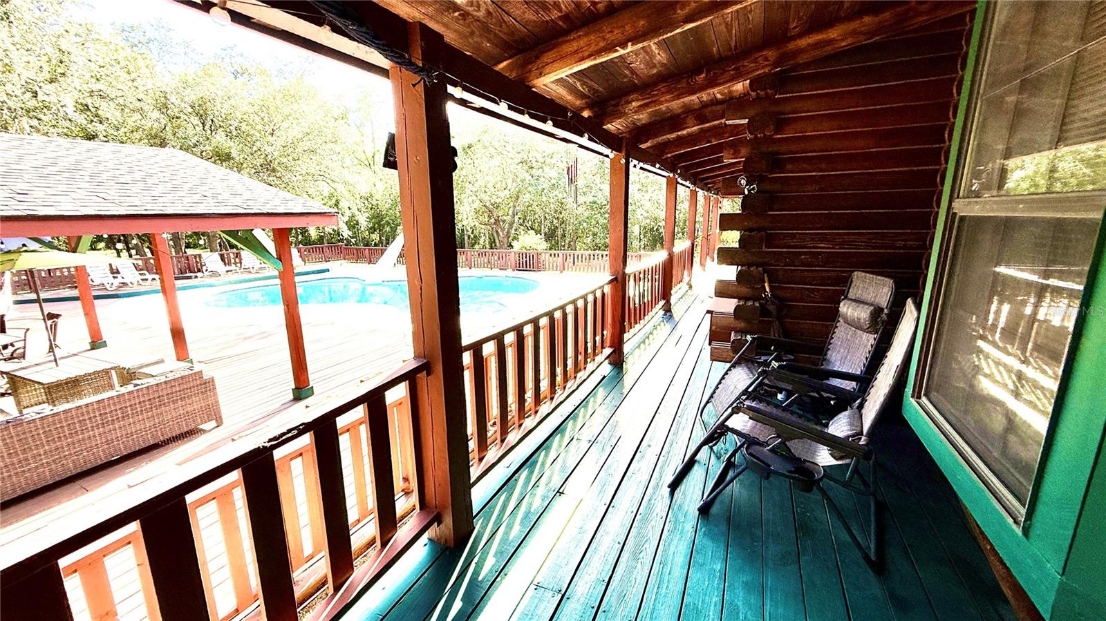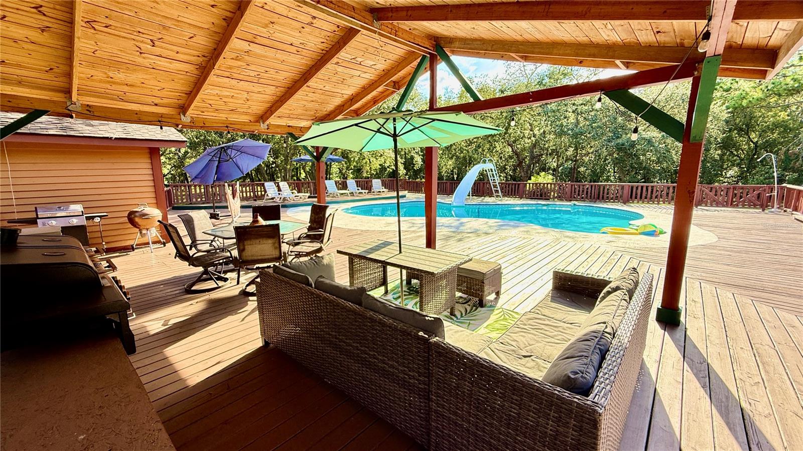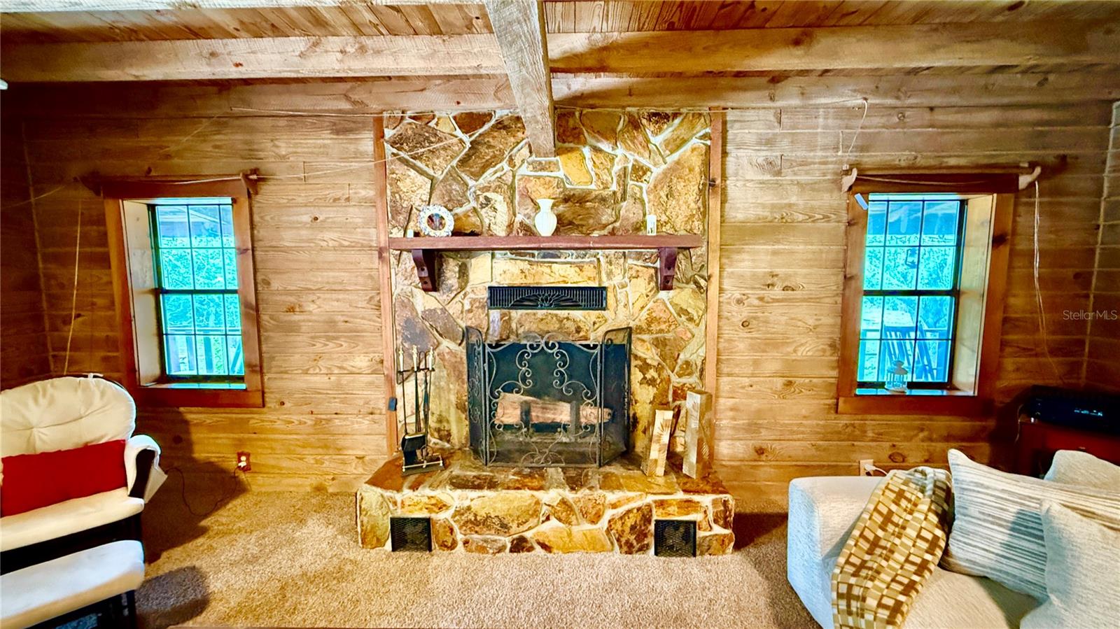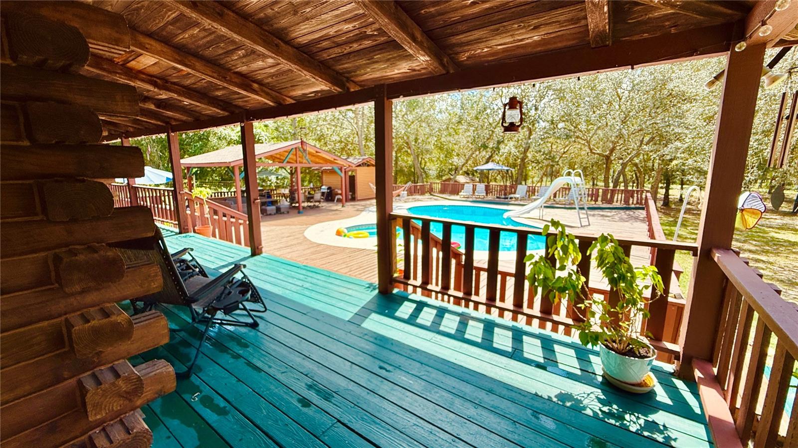 Nestled on 3.5 acres of secluded, lush Florida landscape, this PREMIUM handcrafted 2, 288 sqft LOG CABIN recently updated at 34256 Belt Dr is a true wilderness sanctuary that combines luxury and nature at its best! From the moment you arrive, the authentic charm is undeniable, featuring a classic A STYLE ROOF cabin view and a sprawling front porch perfect for serene morning coffees. Inside, the home is a masterpiece of rustic elegance, centered by a magnificent floor-to-ceiling stone wood-burning fireplace in the great room, where soaring vaulted ceilings with exposed beams create an airy, grand atmosphere. The open-concept layout flows into a spacious kitchen, ideal for gathering, while the main-level primary suite offers convenient privacy. An expansive upper floor provides 3 spacious bedrooms with tons of closet space and oversize Jack n" Jill bathroom. The unparalleled uniqueness of this retreat is crowned by a massive outdoor area highlighting a deep swimming pool surrounded by a freshly done wood deck , gazebo and exterior full bath to host all your holiday events! Also, the 40'x60' (2, 400 sq ft) metal 3 car carpot—a dream for hobbies, projects, or endless boat, RV , 4 wheelers storage. This one-of-a-kind property combines move-in-ready cabin charm with incredible potential as a retreat or even vacational rentals, offering a rare blend of ultimate privacy and timeless craftsmanship on a quiet country road all Zoned AR (Agricultural/Residential) — meaning you get rural flexibility without going full backwoods. there are several great nature spots and outdoor entertainment options within a short drive. Withlacoochee River Park, The Hardy Trail is a shaded, Green Swamp Wilderness Preserve. For family-friendly fun, Crews Lake Wilderness Park and MIRADA lagoon enhanced outdoor recreation and relaxation options in the region, Your private escape awaits, do not wait to be the center of your friend's ovations and envy !