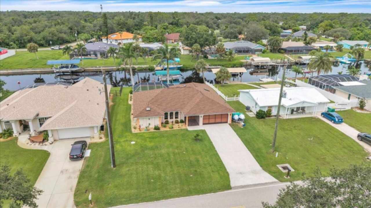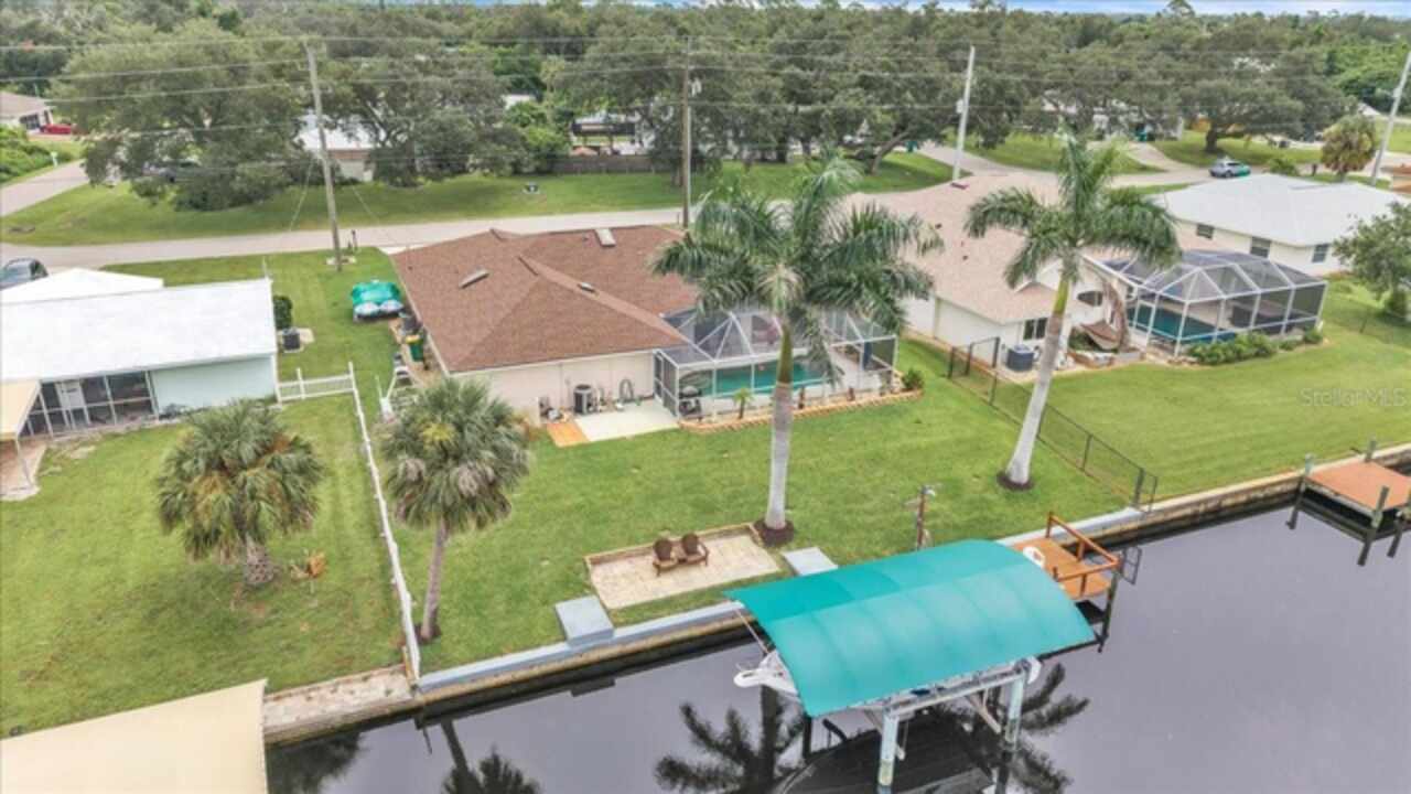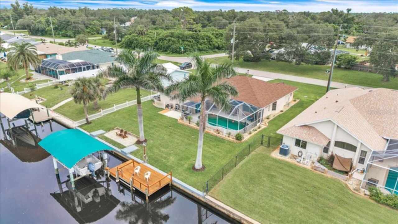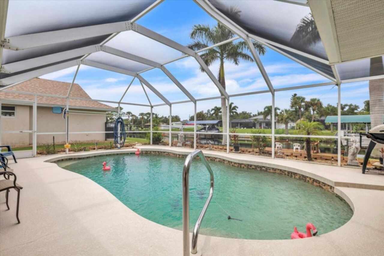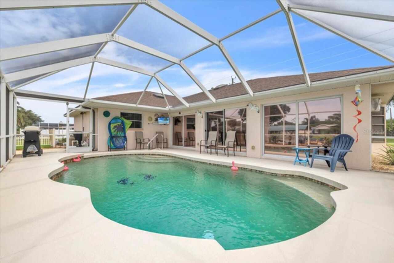 Don’t miss this exceptional opportunity to own a beautiful 3-bedroom, 2-bath waterfront pool home with attached garage, perfectly located in the heart of Port Charlotte. With 80 feet on the Pellam Waterway, this property offers a short boat ride to Charlotte Harbor and the Gulf of Mexico—an absolute boater’s dream. Featuring 2, 239 sq. ft. of thoughtfully designed living space, the home blends comfort and functionality throughout. Step through the foyer into a bright and open living area with tile flooring and new wood laminate. Sliding glass doors lead to the expansive Florida Room, creating a seamless flow for indoor-outdoor living. A dedicated dining area sits just off the living room, while the spacious kitchen offers Corian countertops with matching backsplash, modern appliances, breakfast bar seating, a serving window to the Florida Room, an abundance of cabinet and drawer storage—all overlooking the family room with cathedral ceilings and skylight. The private primary suite is a peaceful retreat with direct pool access, plush carpet, dual walk-in closets, and an en-suite bath featuring dual vanities, large mirrors, a walk-in shower, and private water closet. Two additional bedrooms, each with walk-in closets, share a full bath. The 30x12 air-conditioned Florida Room, lined with sliders, opens to your backyard oasis. Enjoy the heated, screened-in pool with a relaxing bench and built-in jets, along with the spacious deck, or take advantage of the boater’s amenities: covered boat lift, dock with electric and water and a tiled patio overlooking the waterway. Notable upgrades include: extended laundry room, new A/C (2024), new pool chlorinator (2024), shingle roof (2022), four new skylights, whole house re-plumbed overhead (2020), Low Pressure Sewer County maintained (2021), well for irrigation, fresh exterior paint, updated light fixtures, and Boat Lift Canopy and frame (2023). Importantly, the home did not experience flooding from previous storms, offering peace of mind. Located in a quiet, established neighborhood, this home is minutes from Port Charlotte Beach Park with its public beach, boat ramp, picnic areas, and tennis courts, plus convenient access to US-41, I-75, shopping, dining, hospitals, and the area’s top-rated Gulf beaches. This is your chance to own a piece of waterfront paradise—schedule your showing today!**PLEASE ENJOY THE 3D INTERACTIVE VIRTUAL TOUR ASSOCIATED WITH THIS LISTING**