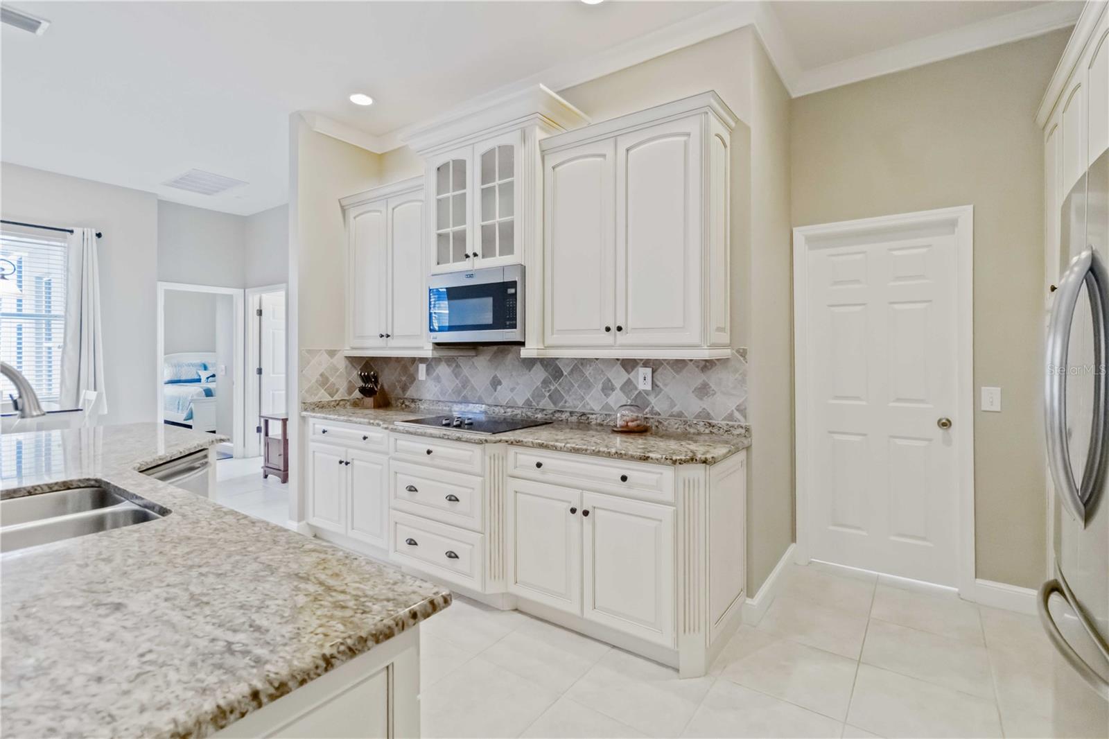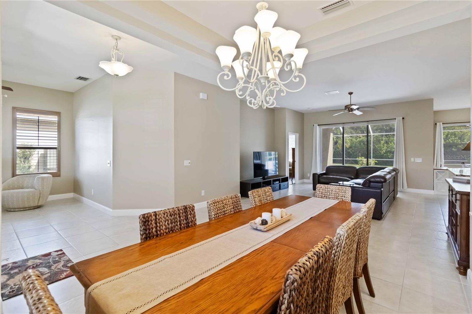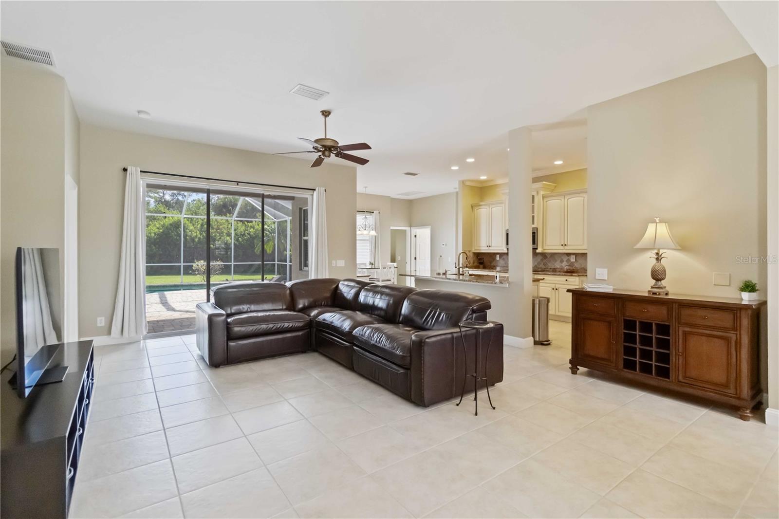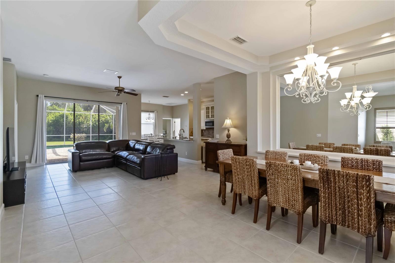 Nestled within a secure, gated community, this beautifully updated, 3-bedroom, 2-bathroom residence offers the perfect blend of luxury and tranquility. Enjoy the assurance of a brand-new roof, complete with a 20-year warranty, as well as a 7-year warranty on the exterior painting completed 10/10/2025. Interior wood shutters adorn the front windows, adding a touch of classic curb appeal. The moment you enter, you'll be greeted by an open and airy living space, with stylish tile flooring throughout the main areas that flows seamlessly into the elegant, formal dining area. Just off the dining room, a large sitting area provides an ideal spot for relaxation , entertaining or a home office. The heart of the home is the chef-inspired kitchen, boasting upgraded cabinetry, gleaming granite countertops, and a double oven. All appliances are included even the fridge in the garage , making this home a truly turn-key. Bedrooms are finished with warm hardwood flooring, while seven ceiling fans throughout the home provide comfort and air circulation. Custom window treatments and curtains add a touch of sophistication. Step outside to your private maintenance free yard where a stunning oversized paver lanai and a refreshing pool create a true outdoor oasis for endless entertainment and relaxation. Most furnishings are also available for purchase, offering a seamless transition into your new home.