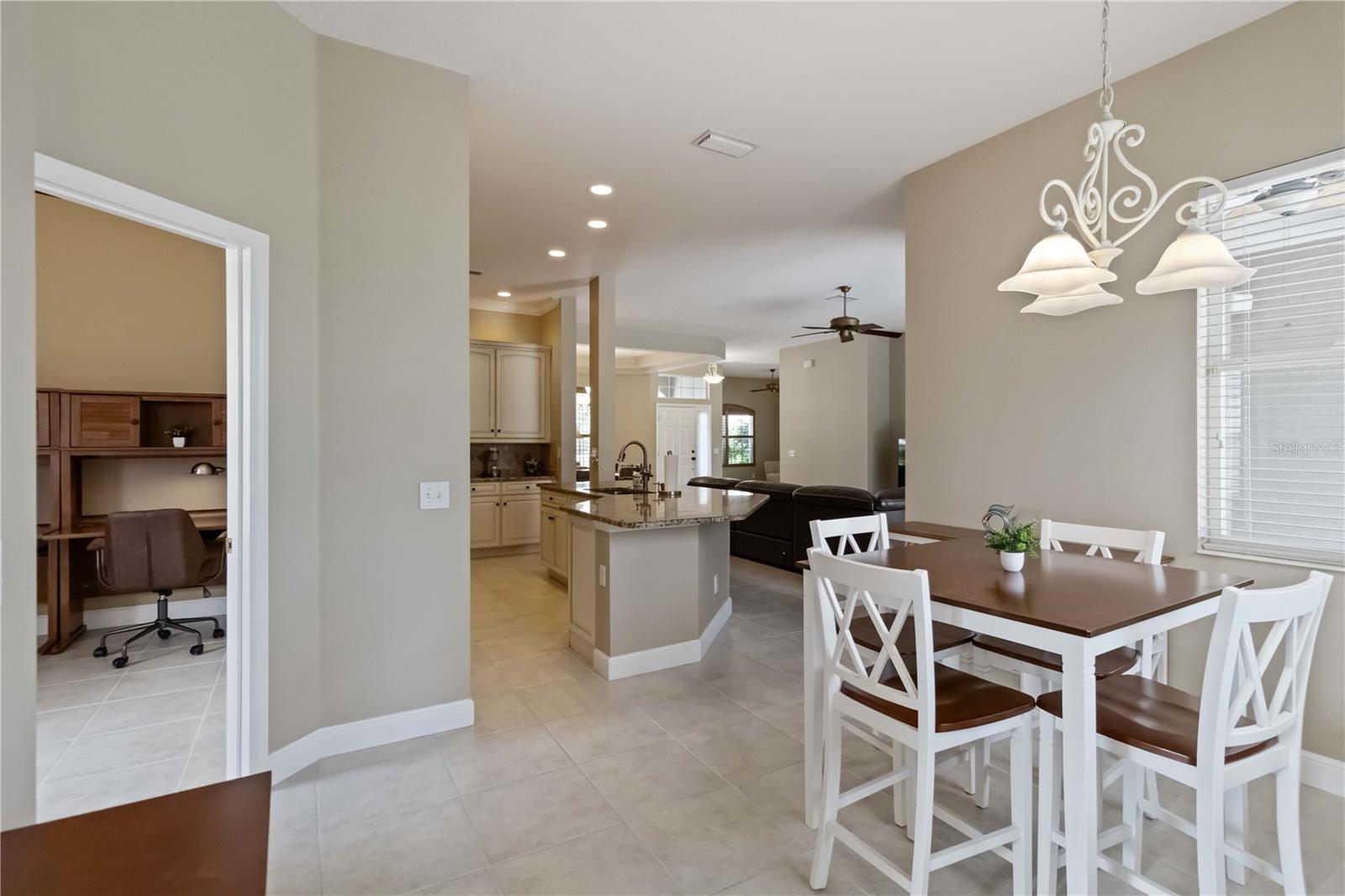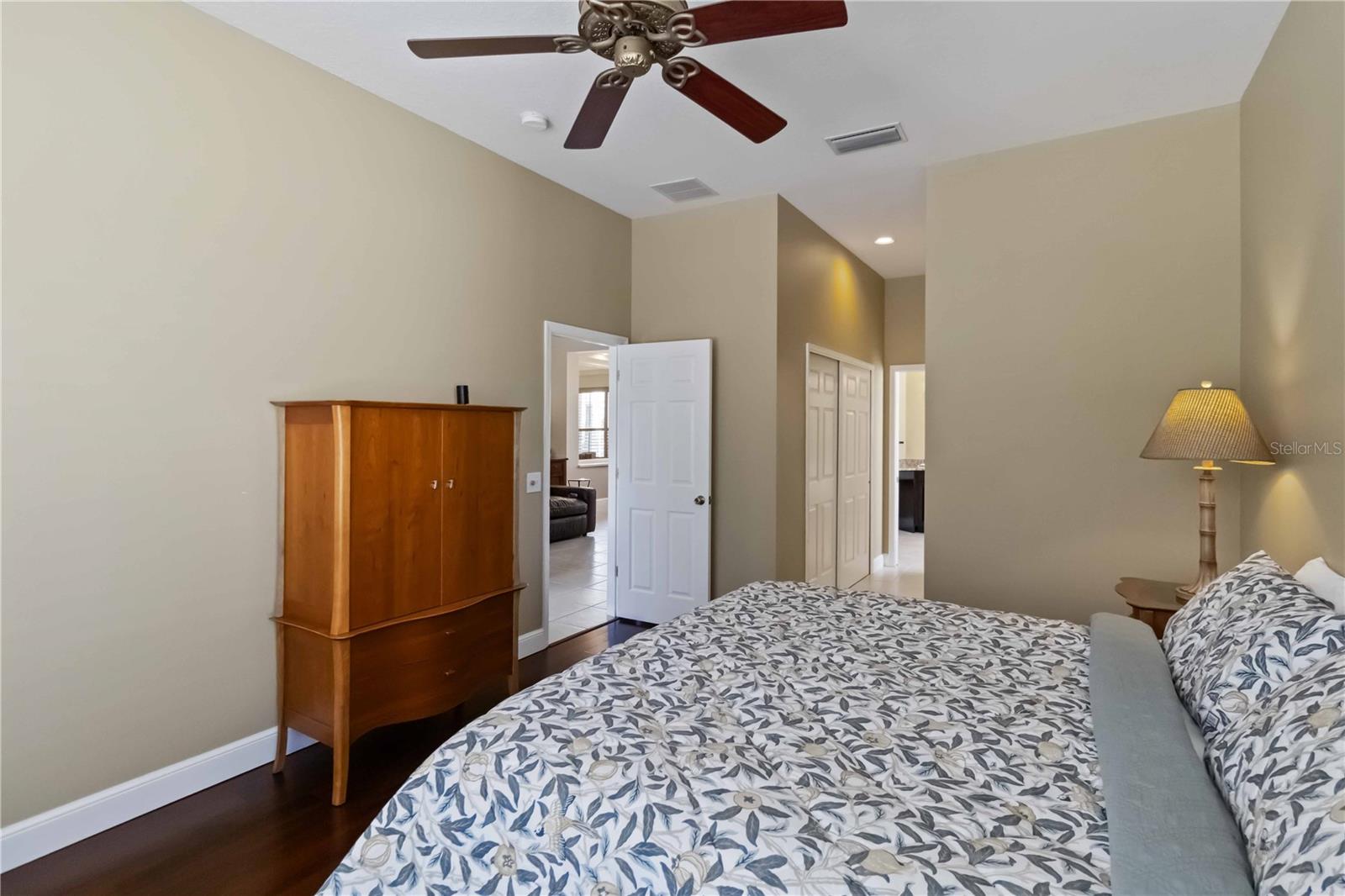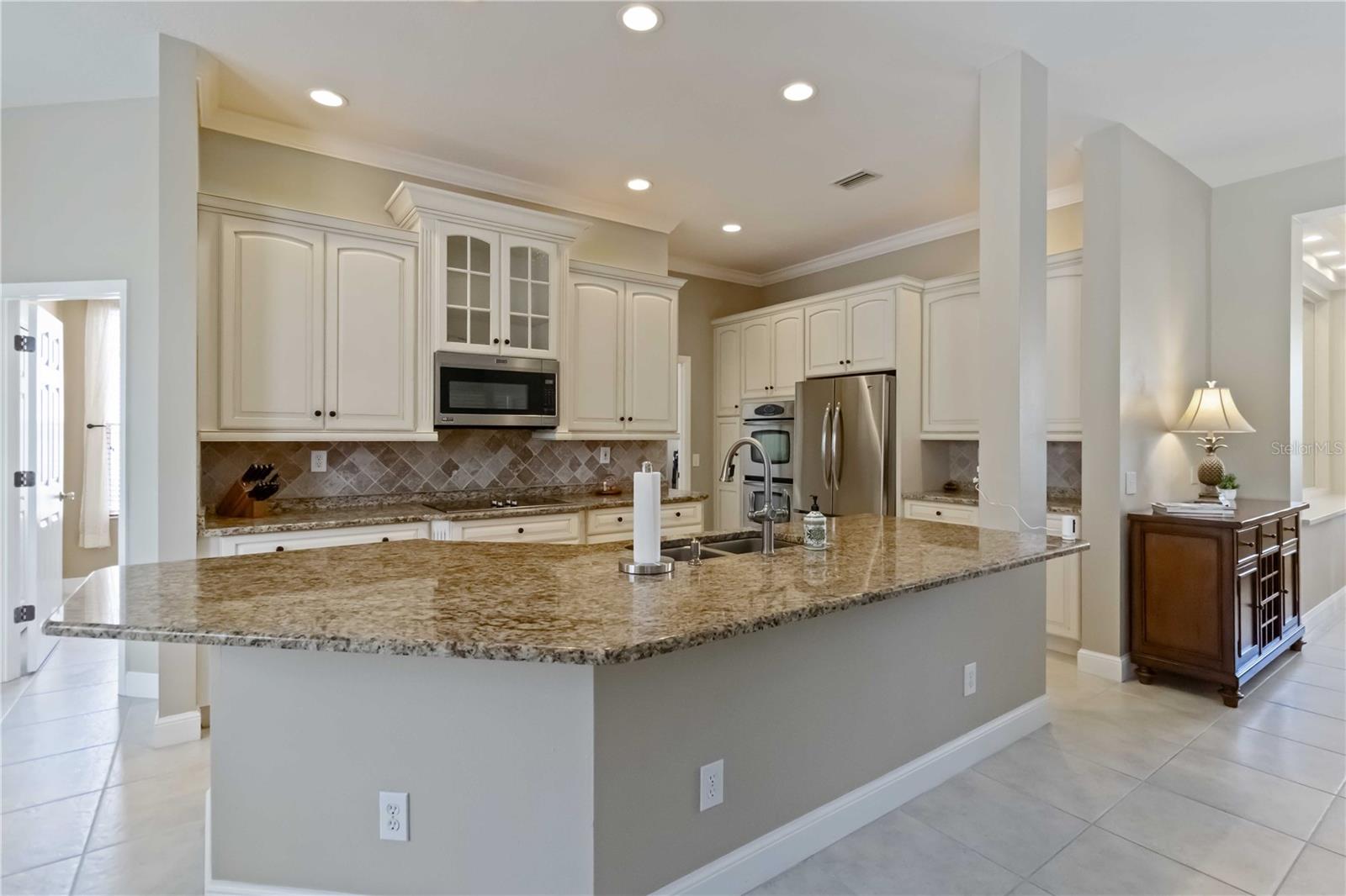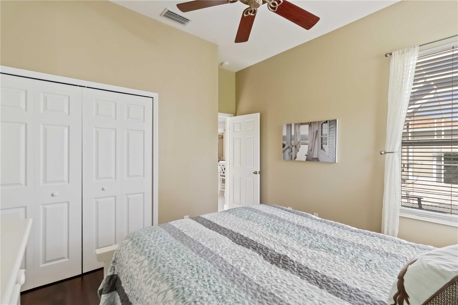 Nestled within a secure, gated community, this beautifully updated, 3-bedroom, 2-bathroom residence offers the perfect blend of luxury and tranquility. Enjoy the assurance of a brand-new roof, complete with a 20-year warranty, as well as a 7-year warranty on the exterior painting completed 10/10/2025. Interior wood shutters adorn the front windows, adding a touch of classic curb appeal. The moment you enter, you'll be greeted by an open and airy living space, with stylish tile flooring throughout the main areas that flows seamlessly into the elegant, formal dining area. Just off the dining room, a large sitting area provides an ideal spot for relaxation , entertaining or a home office. The heart of the home is the chef-inspired kitchen, boasting upgraded cabinetry, gleaming granite countertops, and a double oven. All appliances are included even the fridge in the garage , making this home a truly turn-key. Bedrooms are finished with warm hardwood flooring, while seven ceiling fans throughout the home provide comfort and air circulation. Custom window treatments and curtains add a touch of sophistication. Step outside to your private maintenance free yard where a stunning oversized paver lanai and a refreshing pool create a true outdoor oasis for endless entertainment and relaxation. Most furnishings are also available for purchase, offering a seamless transition into your new home.