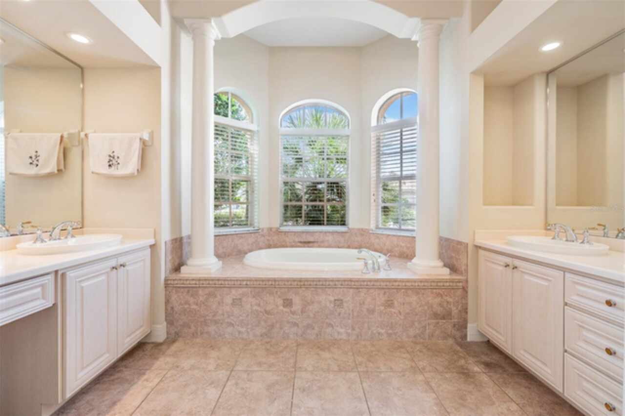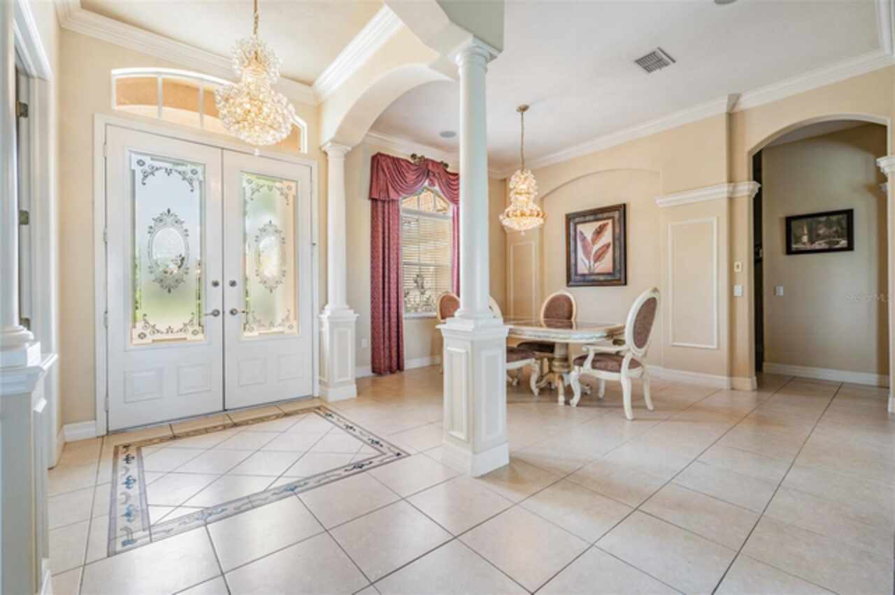 MOTIVATED SELLER in LAKE JOVITA GOLF & COUNTRY CLUB in the Rolling HILLS of East Pasco IS the place to BE! Behind the lushly landscaped, Security Guard GATED entrance, you will find Private winding streets around sparkling ponds and championship Golf course views, making this established community, the BEST KEPT SECRET! Here is your chance to live the DREAM situated on a STUNNING GOLF COURSE, in a custom 4-bedroom, 3-bath home with bonus flex space, perfectly positioned on a premium lot with breathtaking views. From the moment you enter through the double etched-glass doors into the tile foyer, you’ll notice the craftsmanship... columns, arches, niches, crown molding and detailed woodwork throughout. The open living and dining room offers a light, airy feel, with French doors that lead directly to the pool and lanai. A private office/den with double doors and large window overlooks the lush front landscaping. The spacious kitchen and family room combination is ideal for entertaining, featuring Silestone counters, wood cabinetry, center island, breakfast bar, stainless appliances including double ovens and French-door refrigerator plus a sunny breakfast nook with views of the pool and golf course. Step outside to your private oasis with a sparkling pool and spillover spa, perfect for relaxing as you watch golfers in the distance with 2 seating areas. The three-way split bedroom plan ensures privacy. The owner’s retreat boasts a tray ceiling, bay window seating area with pool access, and features a luxurious spa-like bath with dual vanities, Silestone counters, Columns framing the Roman soaking tub, and an oversized walk-in shower. Guest quarters at the rear of the home include a bonus flex room with plantation shutters... ideal for an in-law suite, home gym, or media room—plus a 4th bedroom, full bath, separate entrance, and pool access. The two additional bedrooms share a private wing with a full bath and laundry room. Recent updates include: Water Heater (2025), Bosch dishwasher, custom closet organizers and freshly landscaped backyard. New CARPET in front office. Some photos show rooms that were previously staged. Living in Lake Jovita Golf & Country Club IS a special lifestyle with low quarterly HOA (no CDD fees) that covers well-maintained common areas and a private neighborhood park with tennis, pickleball, basketball, walking trails, playground, dog parks, and open green space. Optional memberships give access to the clubhouse with two championship golf courses, clay tennis courts, fitness center, social events, dining options and jr olympic size pool. Located just minutes from a newer Publix Supermarket, the new Lagoon communities, Wiregrass Mall, Tampa Premium Outlets, The Grove at Wesley Chapel, Krate dining & entertainment and major highways... this home offers the perfect balance of tranquility and convenience—close to Tampa, but without the traffic! Priced thousands below appraisal due to Owner transfer...Don’t MISS this rare opportunity to LIVE the Lake Jovita Golf & Country Club lifestyle! CALL TODAY!