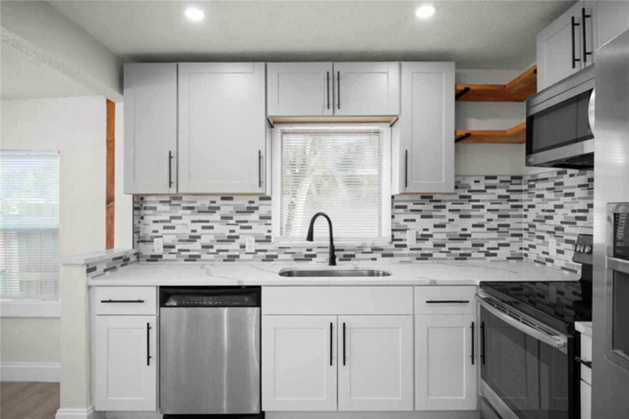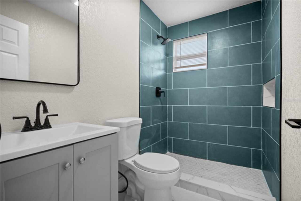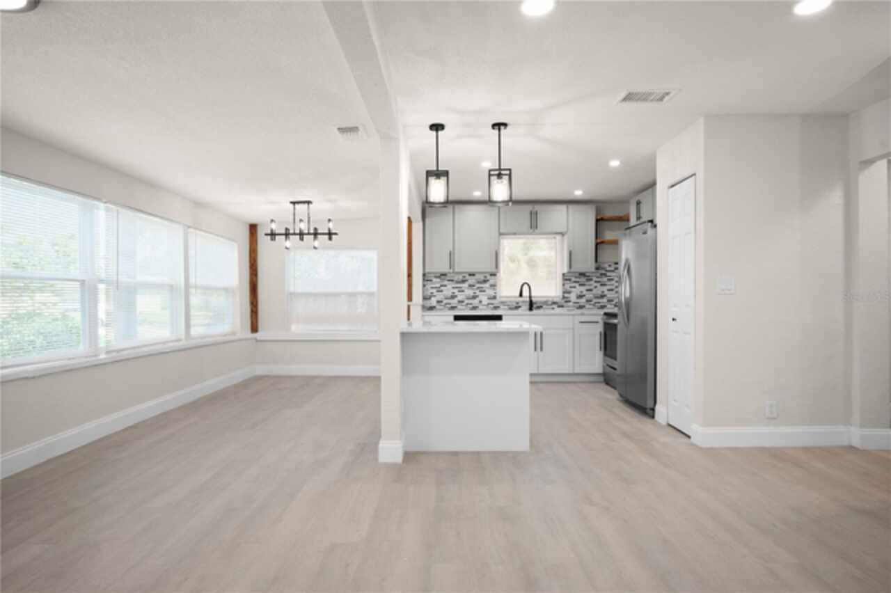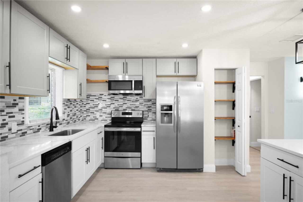 ST. PETE CHARM FEATURED WITH THIS BEAUTIFUL HOME - NO FLOODING & NON FLOOD ZONE PROPERTY - Sitting on an over 6000 sqft lot, with private access. Beautifully designed throughout, upon entry, you will find plenty of beautiful sunlight pouring through the NEW WINDOWS - to your right is the living room with beautiful accents and features, past the living is the kitchen featuring new cabinets, quartz countertops, stainless steel appliances, new fixtures throughout & a perfectly sized bar - perfect for working from home or a quick meal - and past the kitchen is perfect dining area, also featuring a new light fixture. Past the living room, you will find to your right the first bedroom, perfectly sized and with double 24" closets - and past this bedroom is the hallway full bath, featuring new tile, commode, vanity, and fixtures throughout. Down the hallway to your left is the 2nd perfectly sized bedroom, featuring double 24" closets as well. At the end of the hallway is the ensuite master bedroom - featuring a full ensuite bathroom, also finished with new tile throughout, a new vanity, commode, and plumbing/light fixtures. The third bedroom features a separate entry, perfect for an owners-suite/in-law suite/rental unit (there is a laundry hookup in the hallway, and outside as well if you want to make this a rental.) This home has an amazing back yard, with a storage shed, and plenty of space, perfect for those fall nights to relax and enjoy with family and friends! This home has an only 8 year old roof, as well as a newer AC, and new windows throughout!! Come see this beautiful home today!