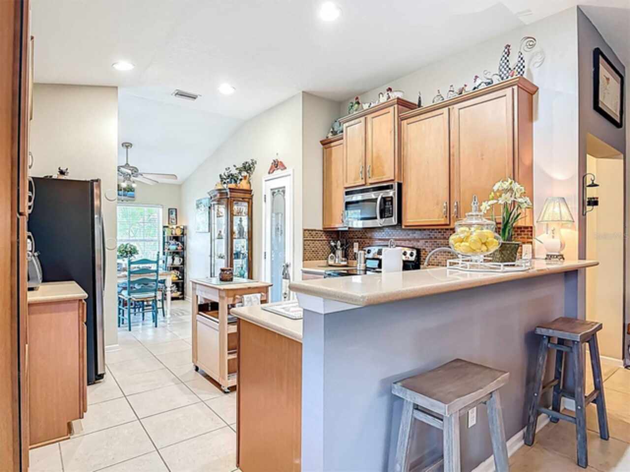 Welcome to your dream home in the desirable Savona South community of Venetian Bay! This charming 3-bedroom, 2-bathroom single-story home offers comfort, style, and modern conveniences, all set on a spacious 6, 600 sq ft lot in beautiful New Smyrna Beach. Built in 2011, this residence boasts an open-concept layout with soaring ceilings that create a bright, airy atmosphere throughout the living spaces. The well-appointed kitchen features solid wood cabinets and flows seamlessly into the family room—perfect for entertaining and everyday living. Additional highlights include a dedicated laundry room with washer and dryer, a 5-year warranty on the refrigerator, and a 10-year warranty on the AC, which is serviced every six months for your peace of mind. Relax outdoors on the large wraparound front porch or enjoy quiet evenings in the screened lanai overlooking lush, mature landscaping. The property is adorned with fruit trees, including mango, avocado, lemon, and grapefruit, adding a touch of nature to your backyard oasis. Practical exterior features include hurricane shutters, rain gutters, a full irrigation system, fenced yard and a convenient rear-entry garage accessed via a private service road. Inside, you’ll find thoughtful details such as high ceilings, window treatments, ceiling fans, and a kitchen/family room combo designed for function and flow. The spacious master suite is located on the main floor for convenience. Located in the sought-after Venetian Bay community, this home combines modern living with Florida charm and access to incredible neighborhood amenities. Enjoy golf, walking trails, and more—all just minutes from the beach, shopping, and dining. Grand opening - new Tiki Bar and Pool for $55 a month! Experience Florida living at its finest in this charming Venetian Bay home, where comfort, convenience, and community come together.