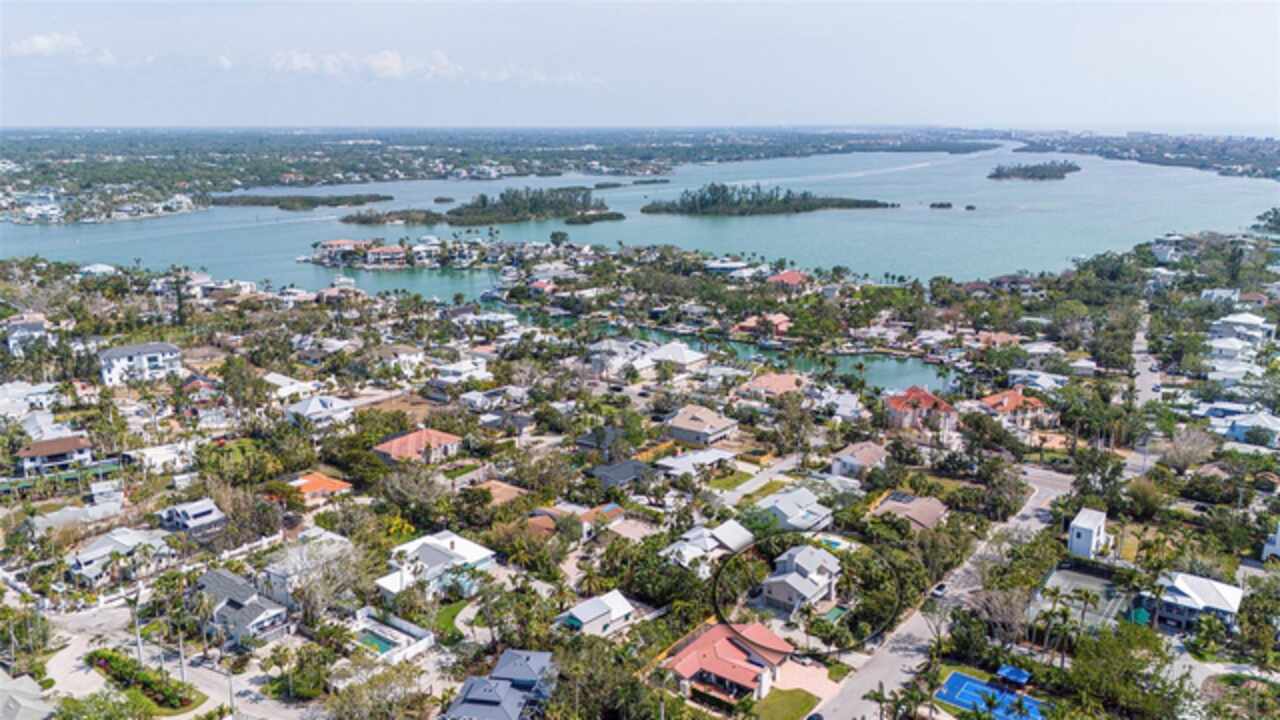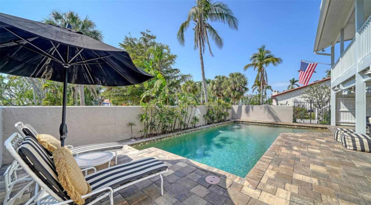 Welcome to Flamingo Avenue, one of Sarasota's most coveted streets. Set on Bay Island, this classic Sarasota home presents an excellent opportunity to own on a street accompanied by iconic estates. You'll feel the ocean breeze at this location, and even enjoy partial water views from balconies! This Key West style home offers an elevated living area with features such as wood floors, fireplace, plantation shutters and much more! From the moment you arrive at this property, you'll notice the walled-in pool and patio area which creates a private island oasis with covered seating area. The first level of the home features a two-car garage and abundant storage. The main living level is on the second story and features a generously-sized living area, dining room, kitchen and two bedrooms with access to the hall bath. The primary bedroom is on the third level and features its own west facing balcony for incredible sunset viewing. This spacious suite offers plenty of room, an oversized walk-in closet, and spacious bathroom. This home has a metal roof and two brand new HVAC units for low maintenance peace of mind. This small and private dead-end street is unique to Bay Island and presents a fine opportunity to own in one of Sarasota's best neighborhoods. Easy access off the north bridge to downtown Sarasota is yours, and as well as just a short distance to amazing Gulf beaches. Schedule your private showing today!